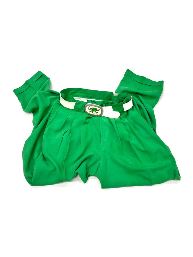 c90's GIANNI VERSACE Vivid_Green Silk 4_Tuck Slacks