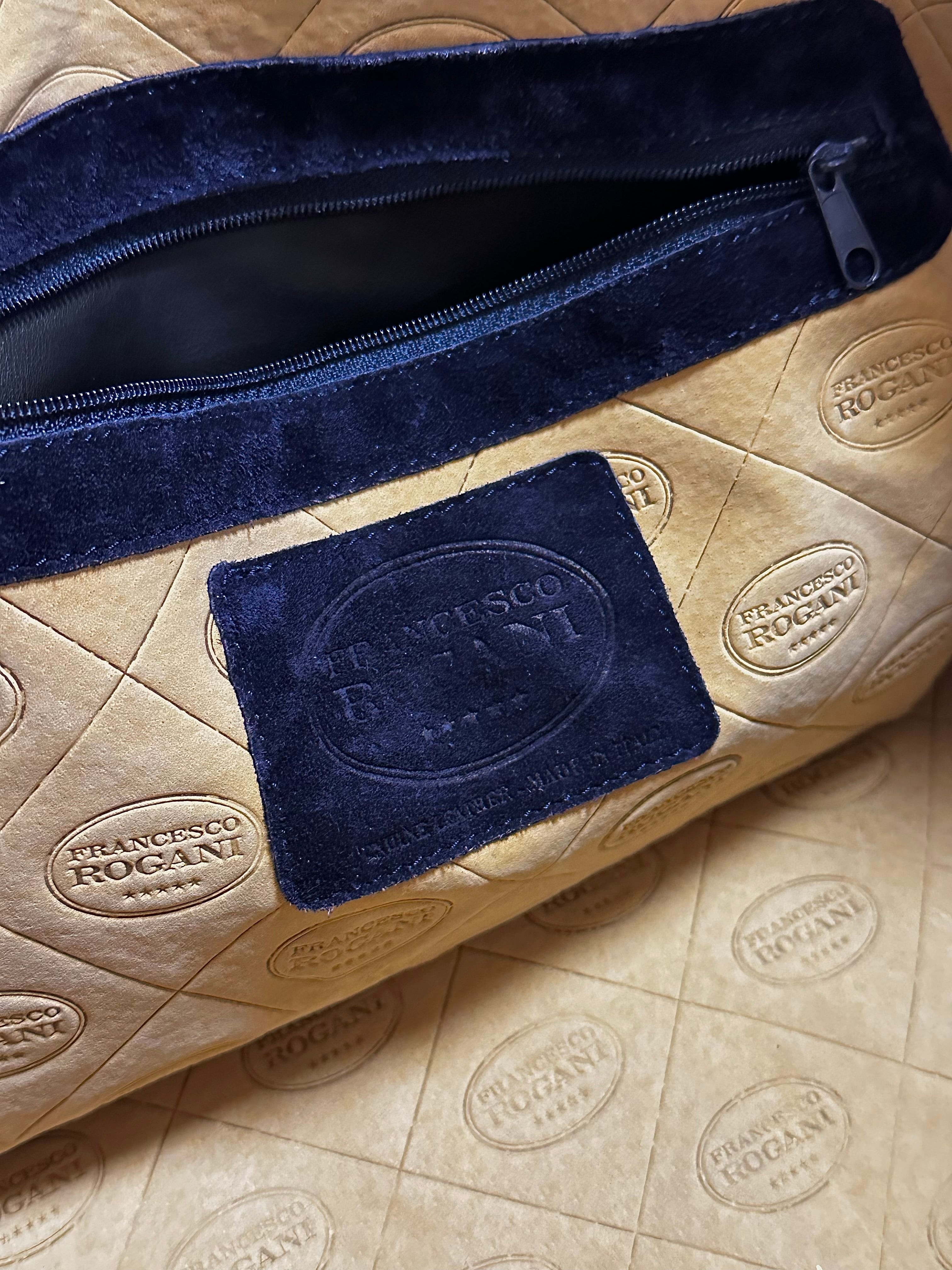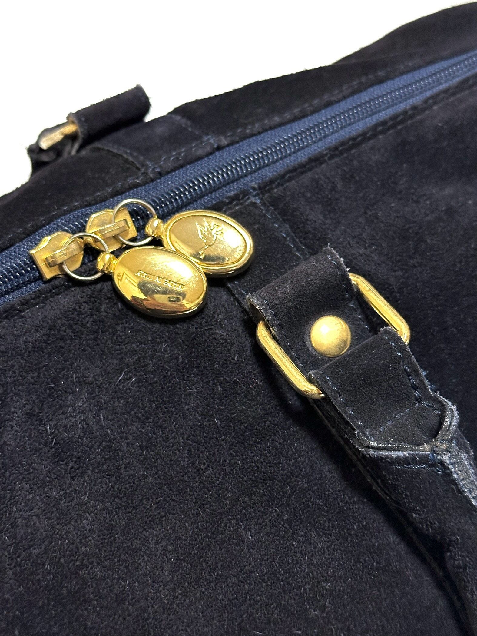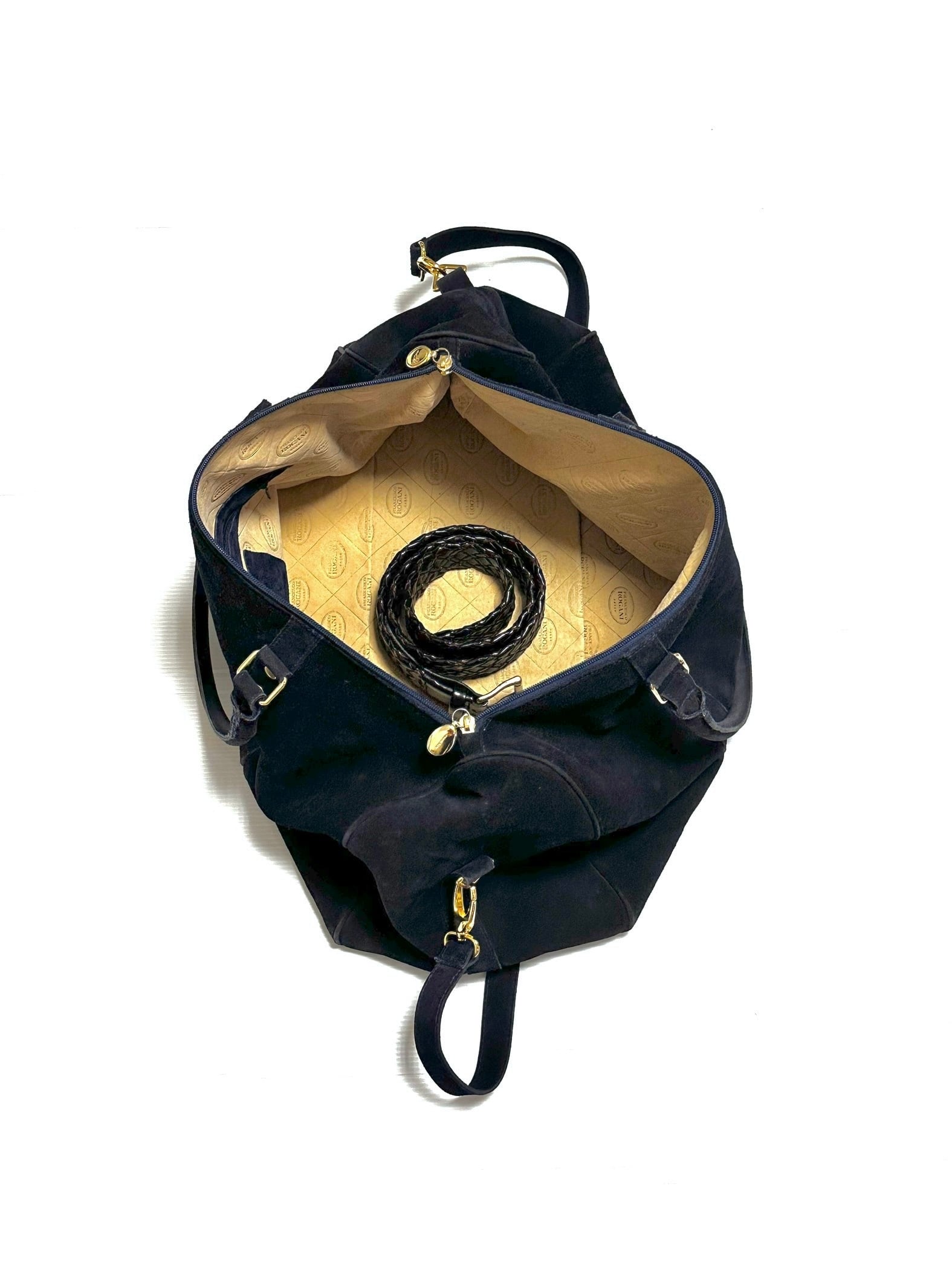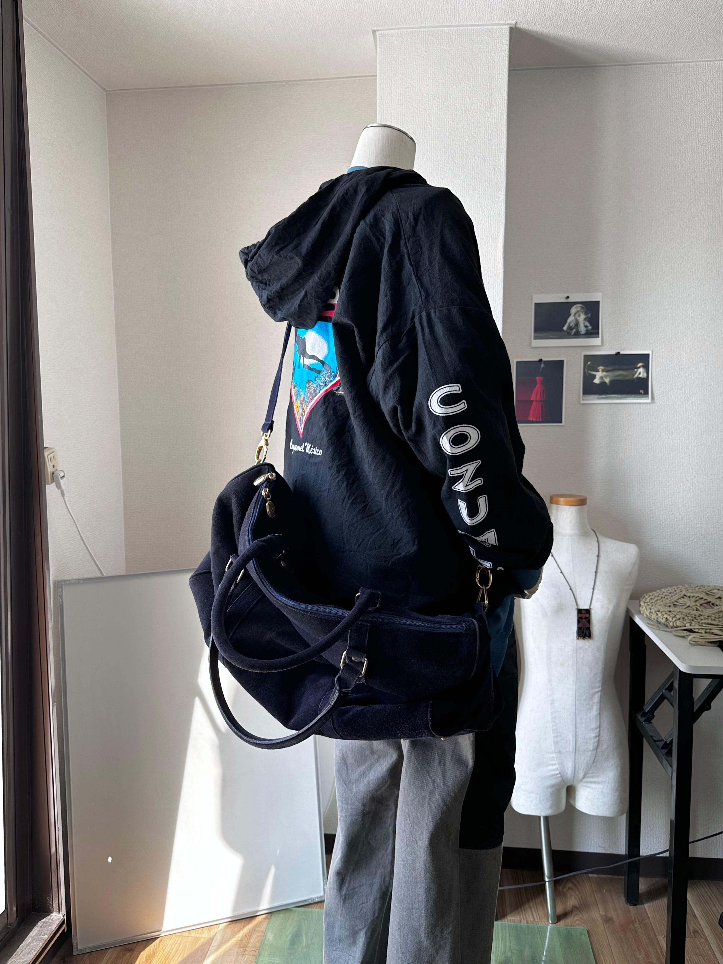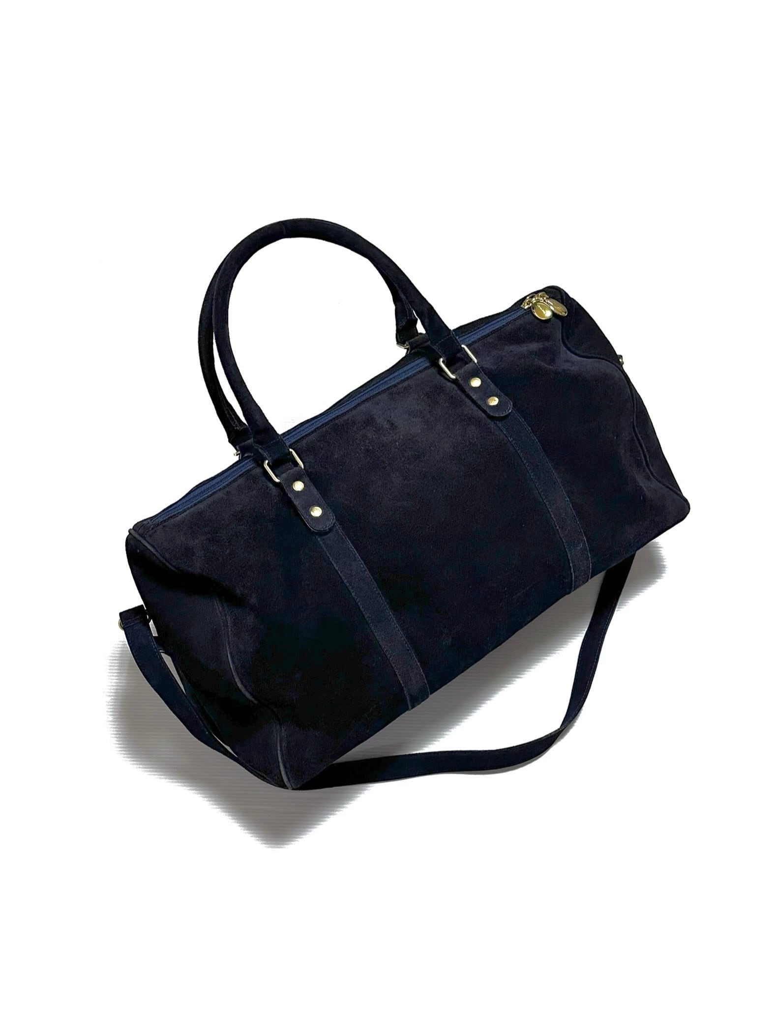 イタリア製、ダークネイビーのレザーボストンバッグ。