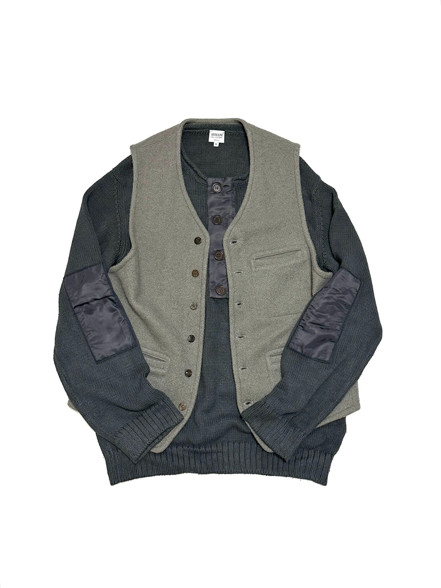今で見れば、これと全く同じ色味のジーンズ、贅沢を言えばニットパンツが欲しいけど、そうか当時のアルマーニはあくまでミリタリーのソフィスティケートとしてこれをデザインしたんだな。