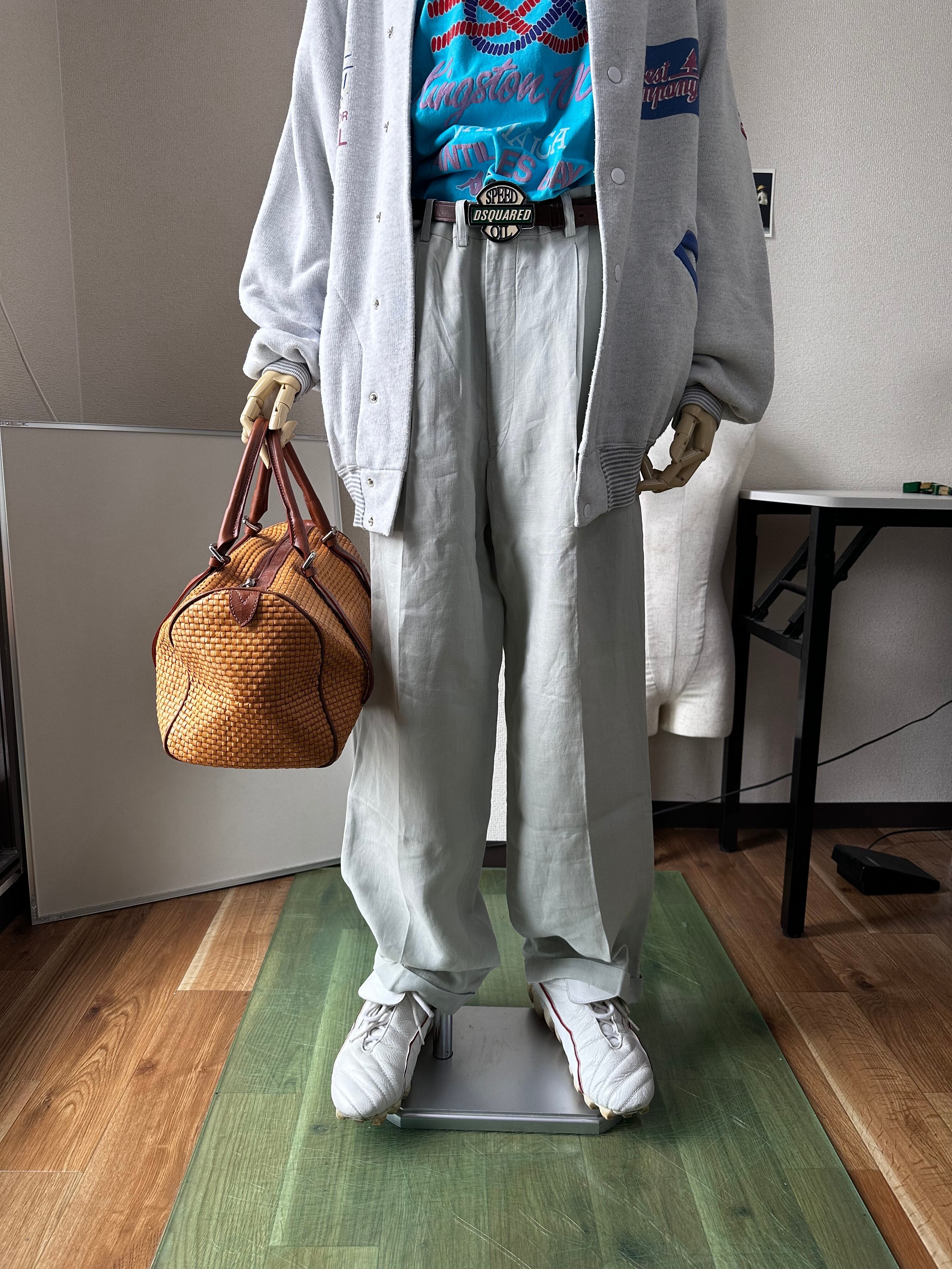 c80's UNKNOWN Pale-Grayish-Blue Linen Wide PT