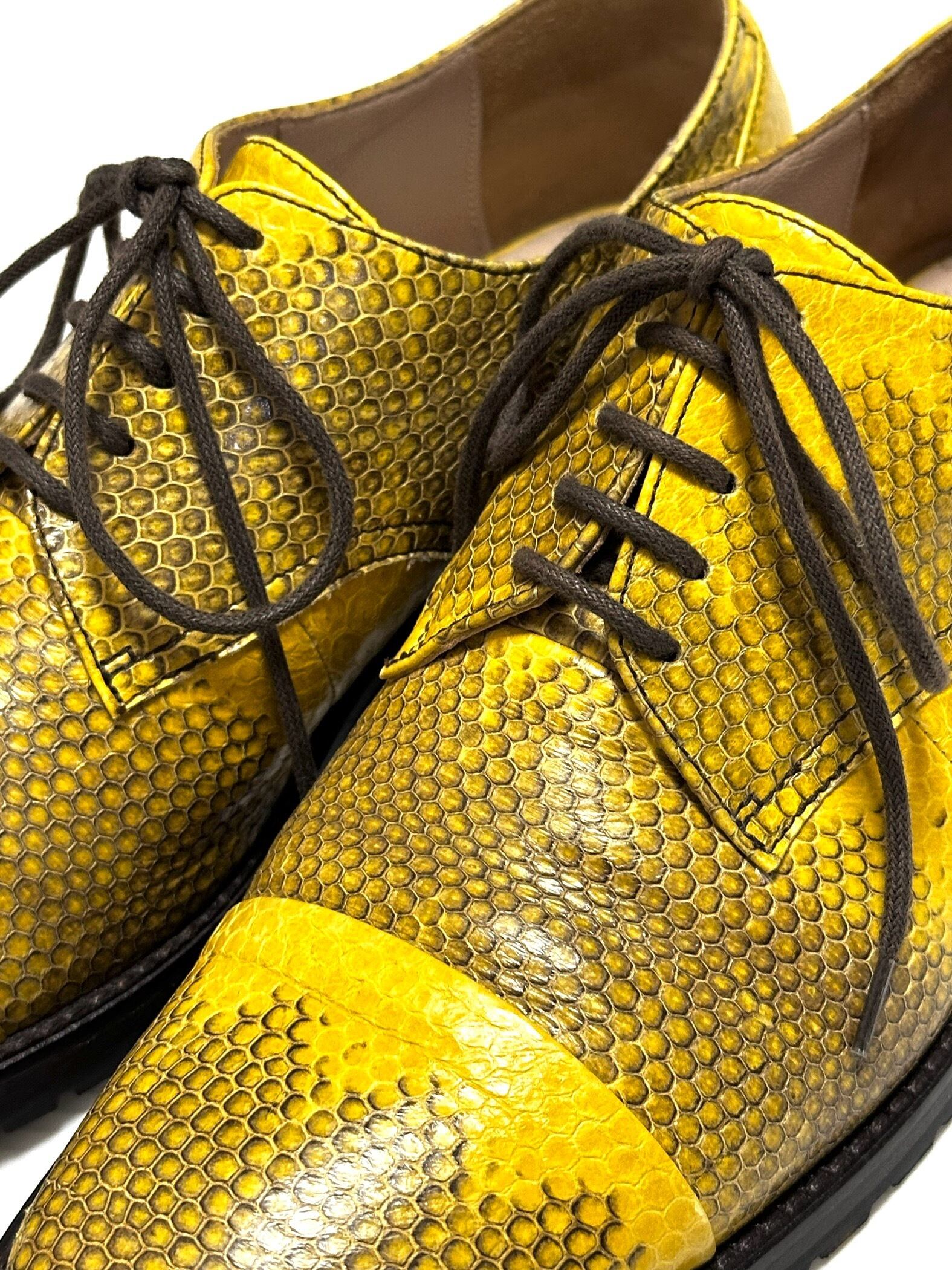 パイソンスケールをプリントした小綺麗なレザーシューズ。