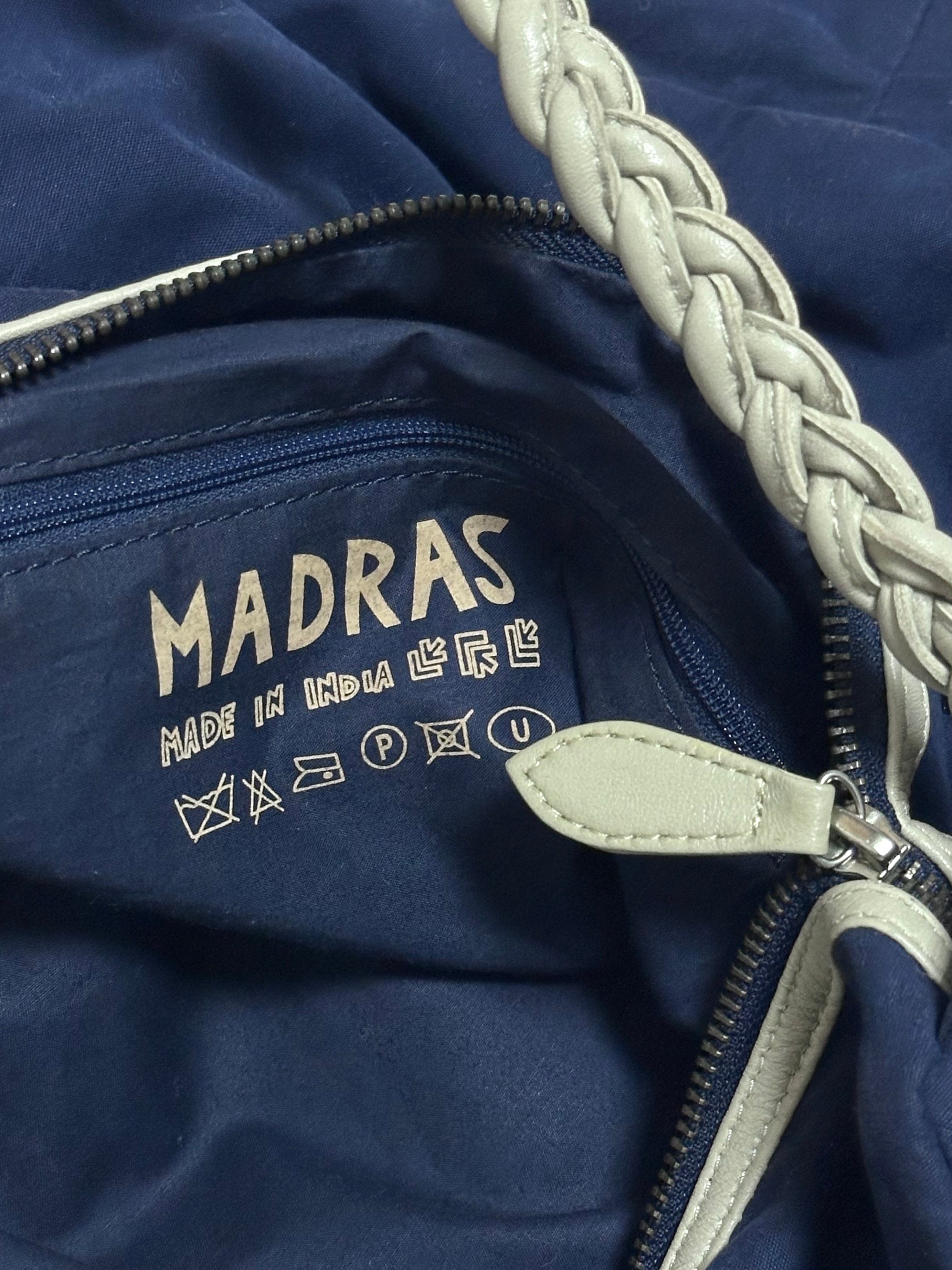 Jean Touitou & Jessica Ogden によるコラボレーションラインMADRASより、コットン仕立てのショルダーバッグ。