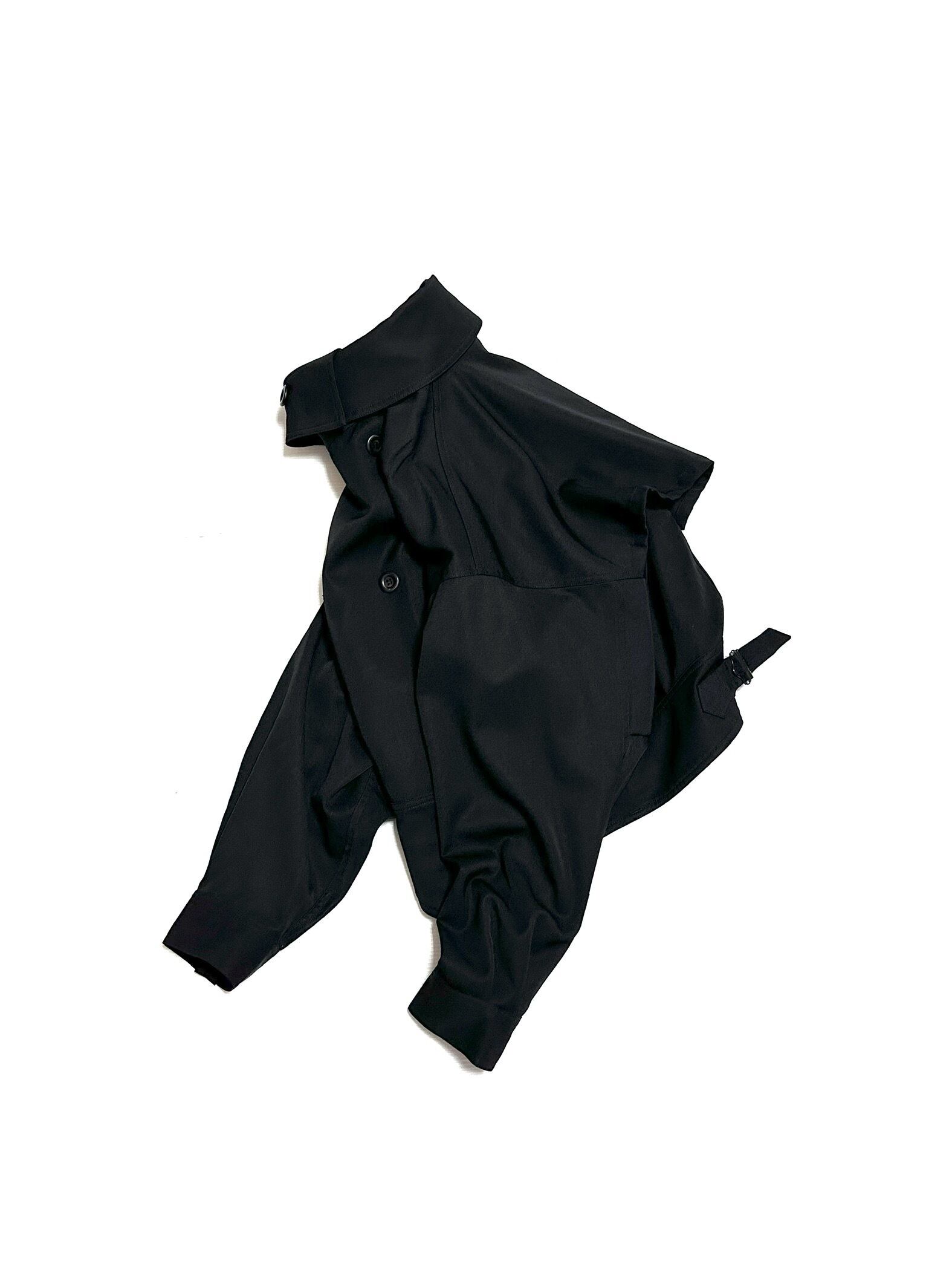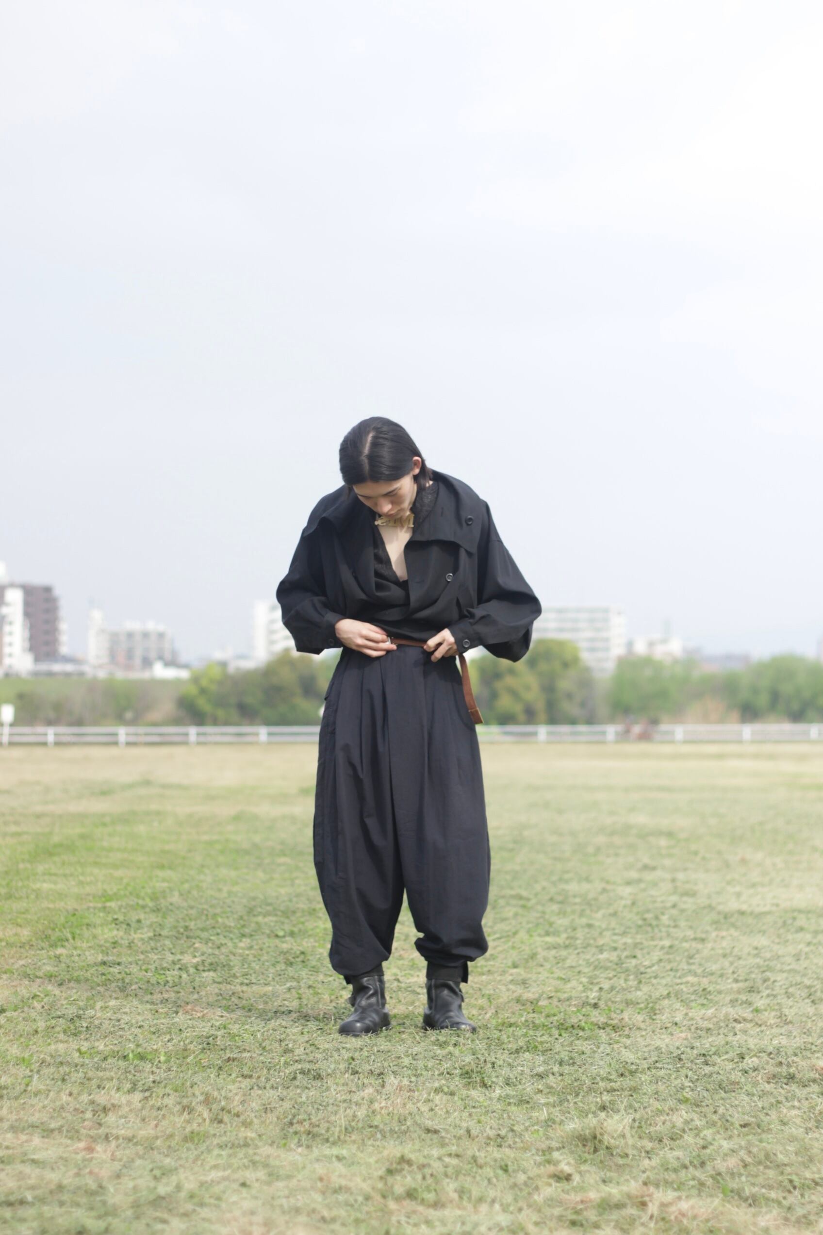 それら強烈なドレープに相性の良い真っ黒のウールギャバジン。