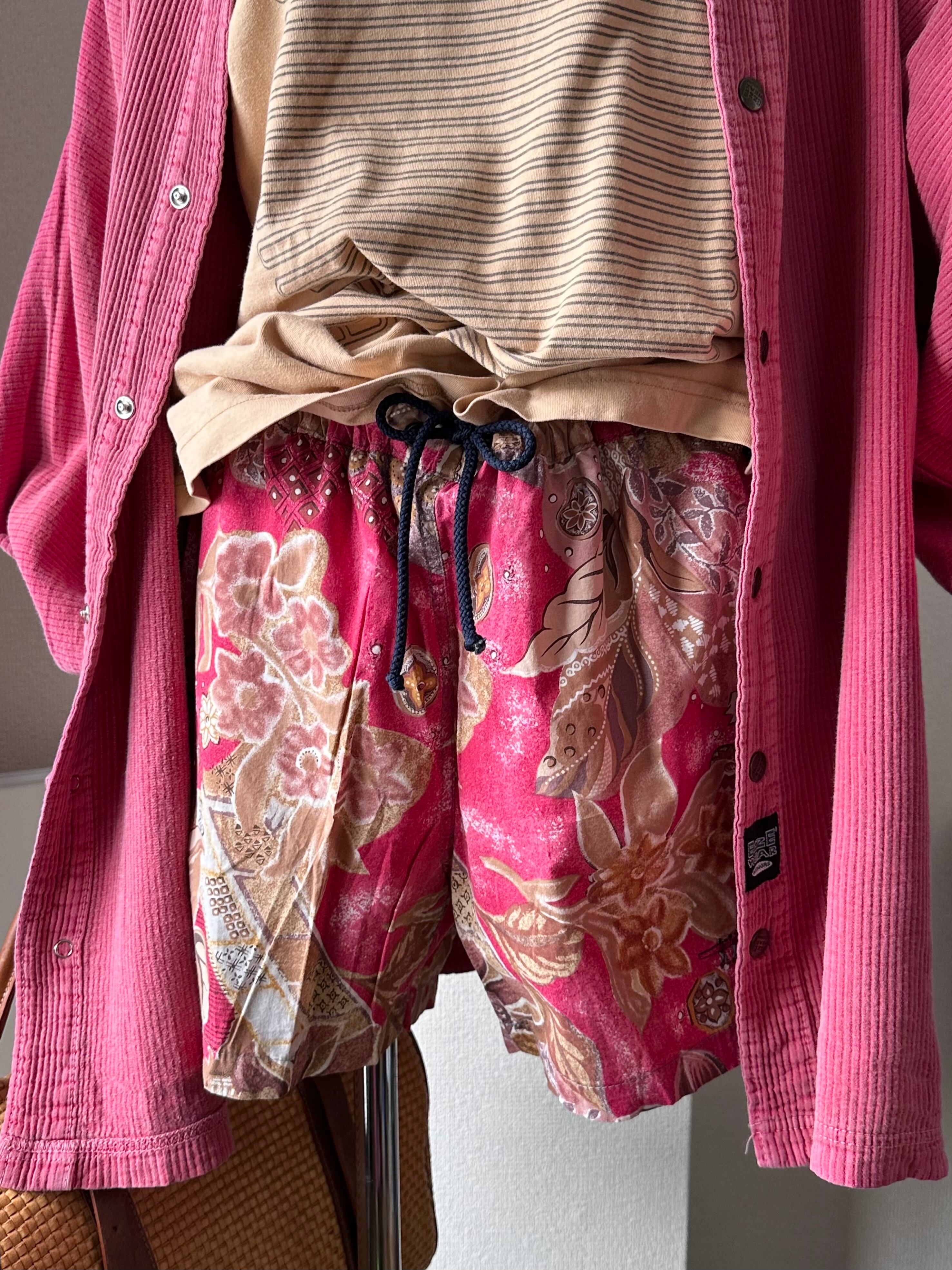 c80's HENRY COTTON'S Pink Botanical Pattern Swim Shorts