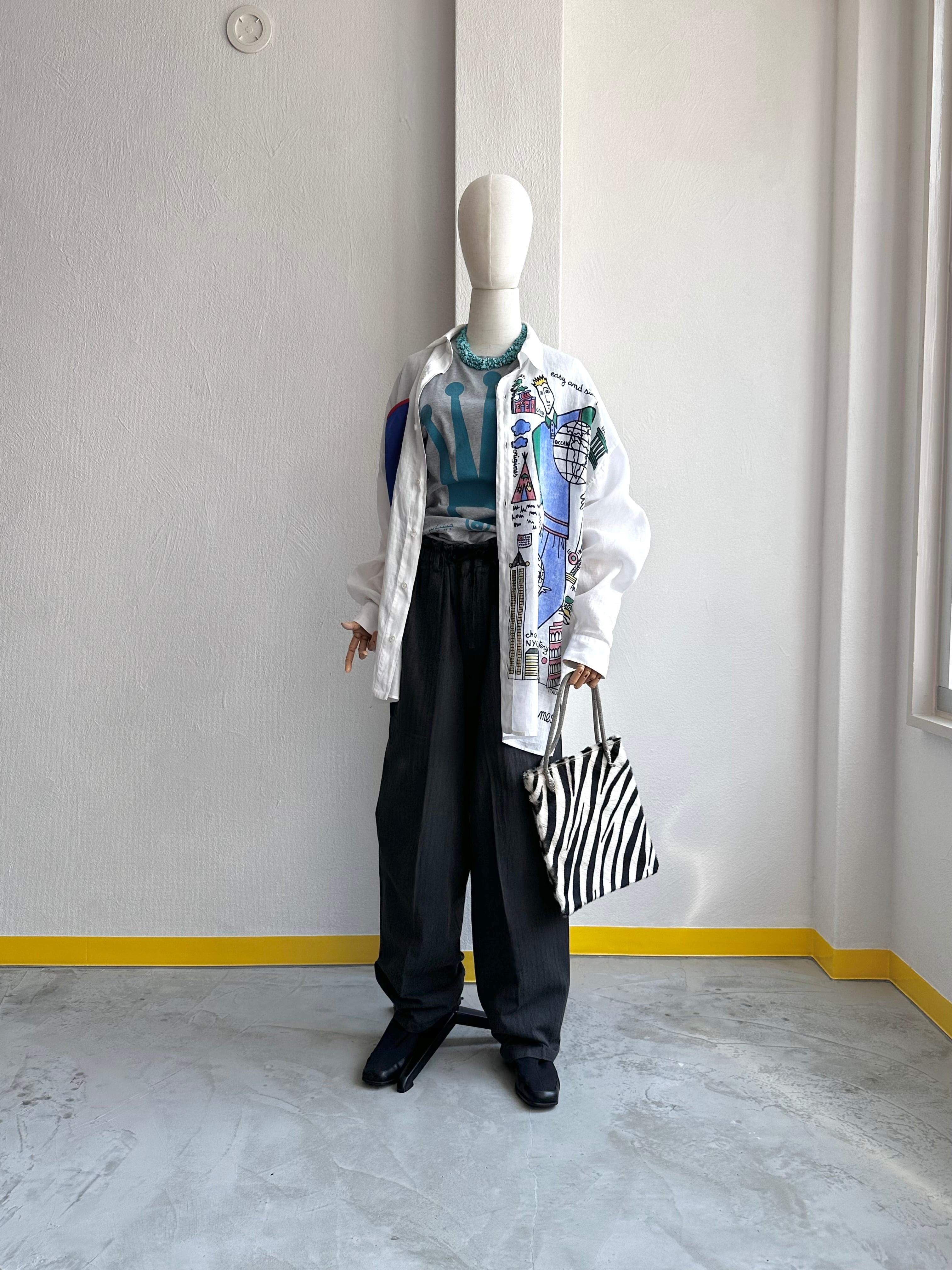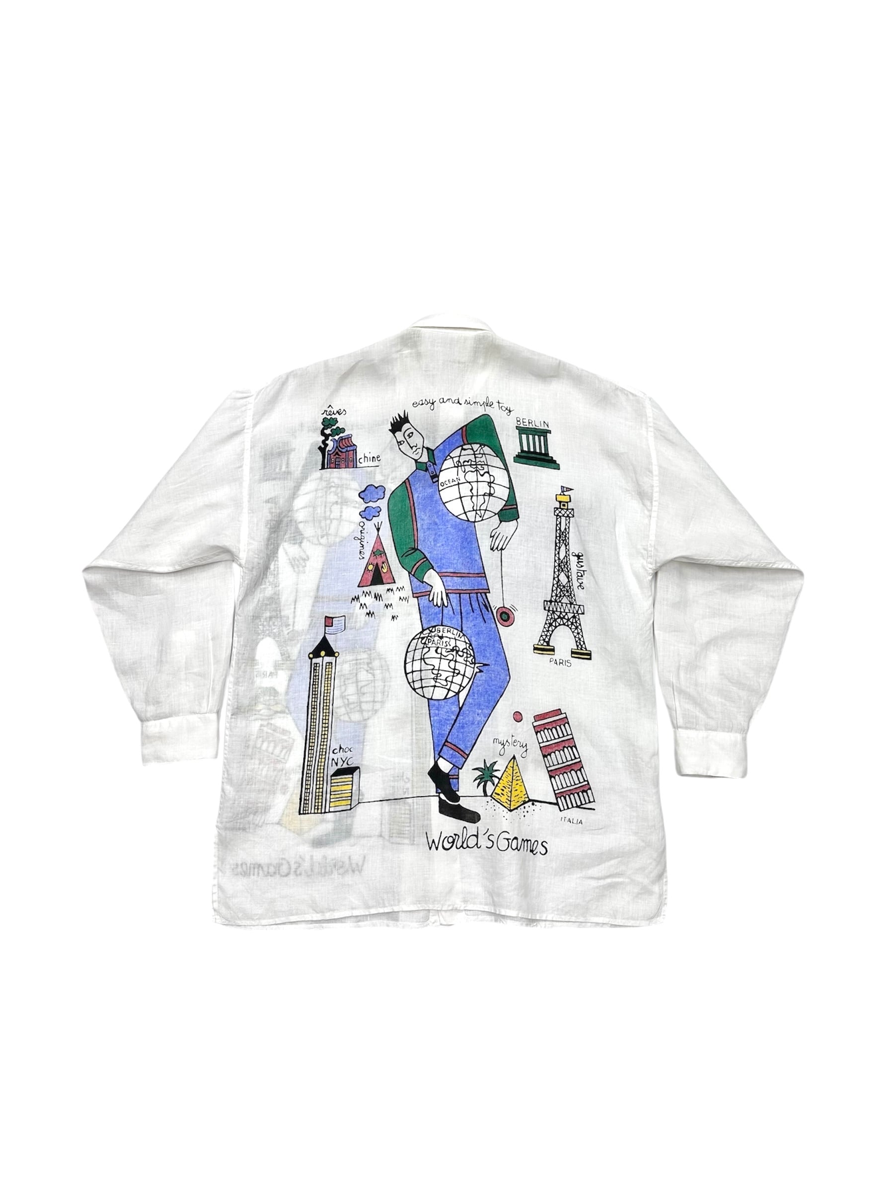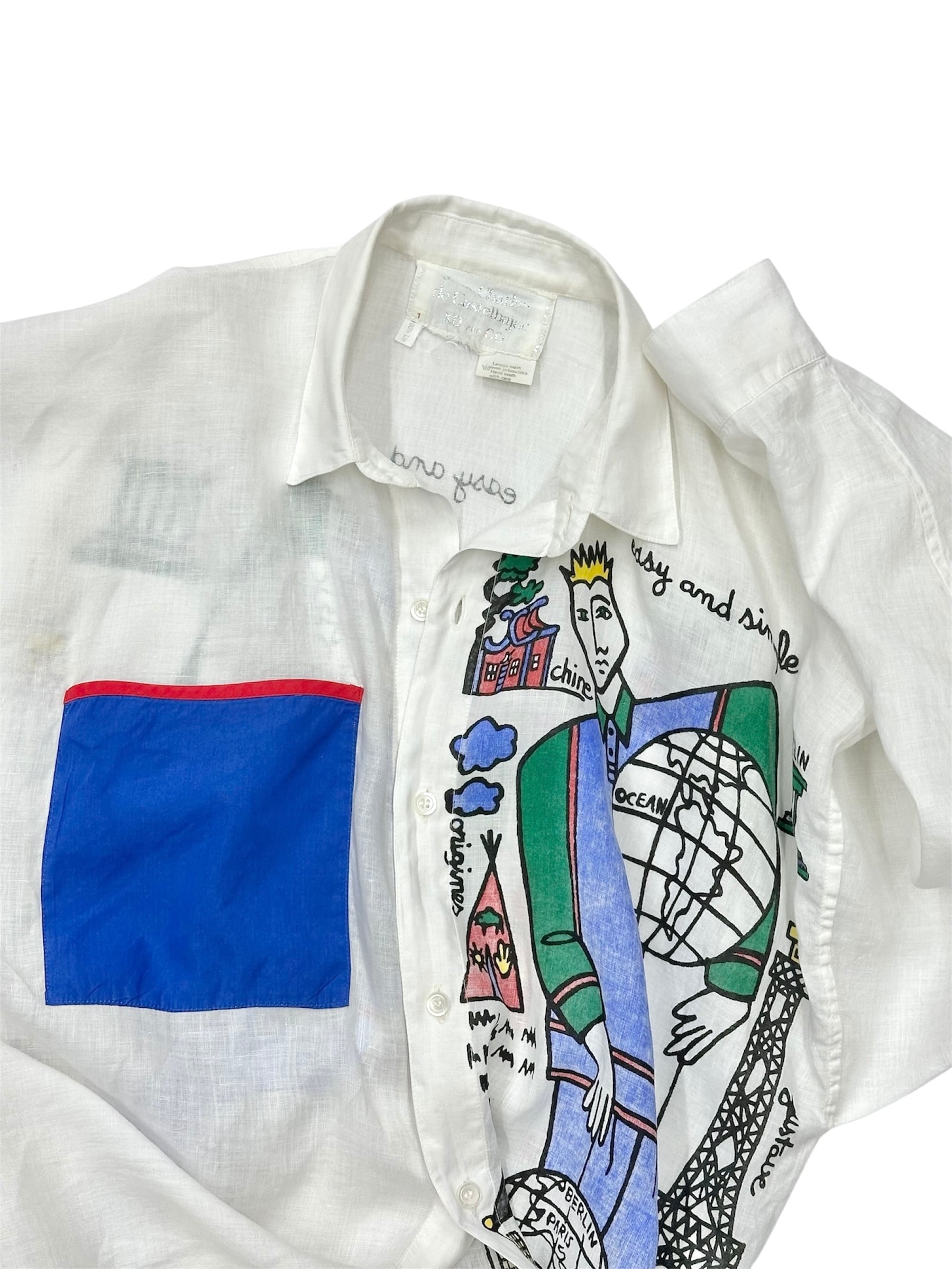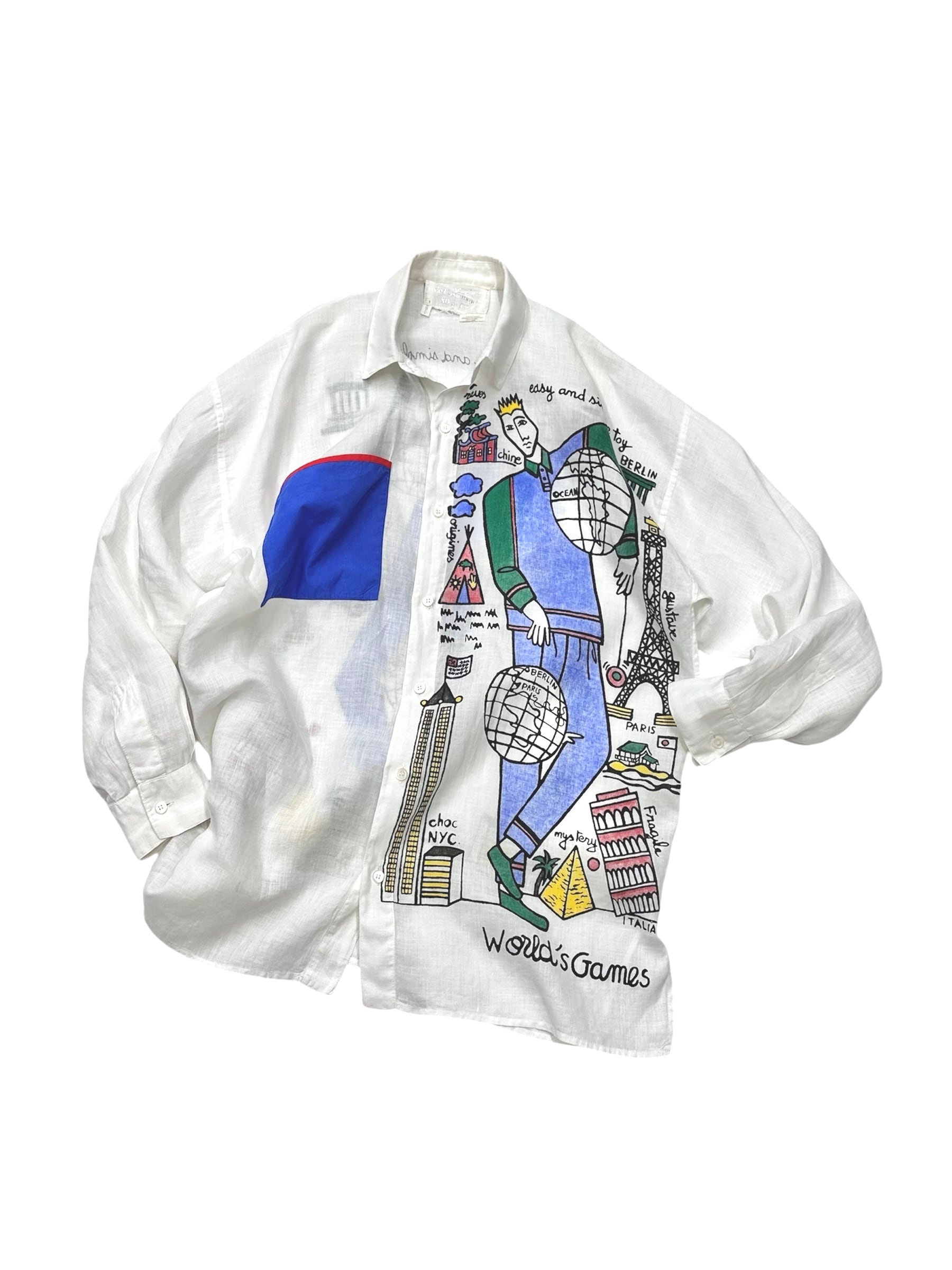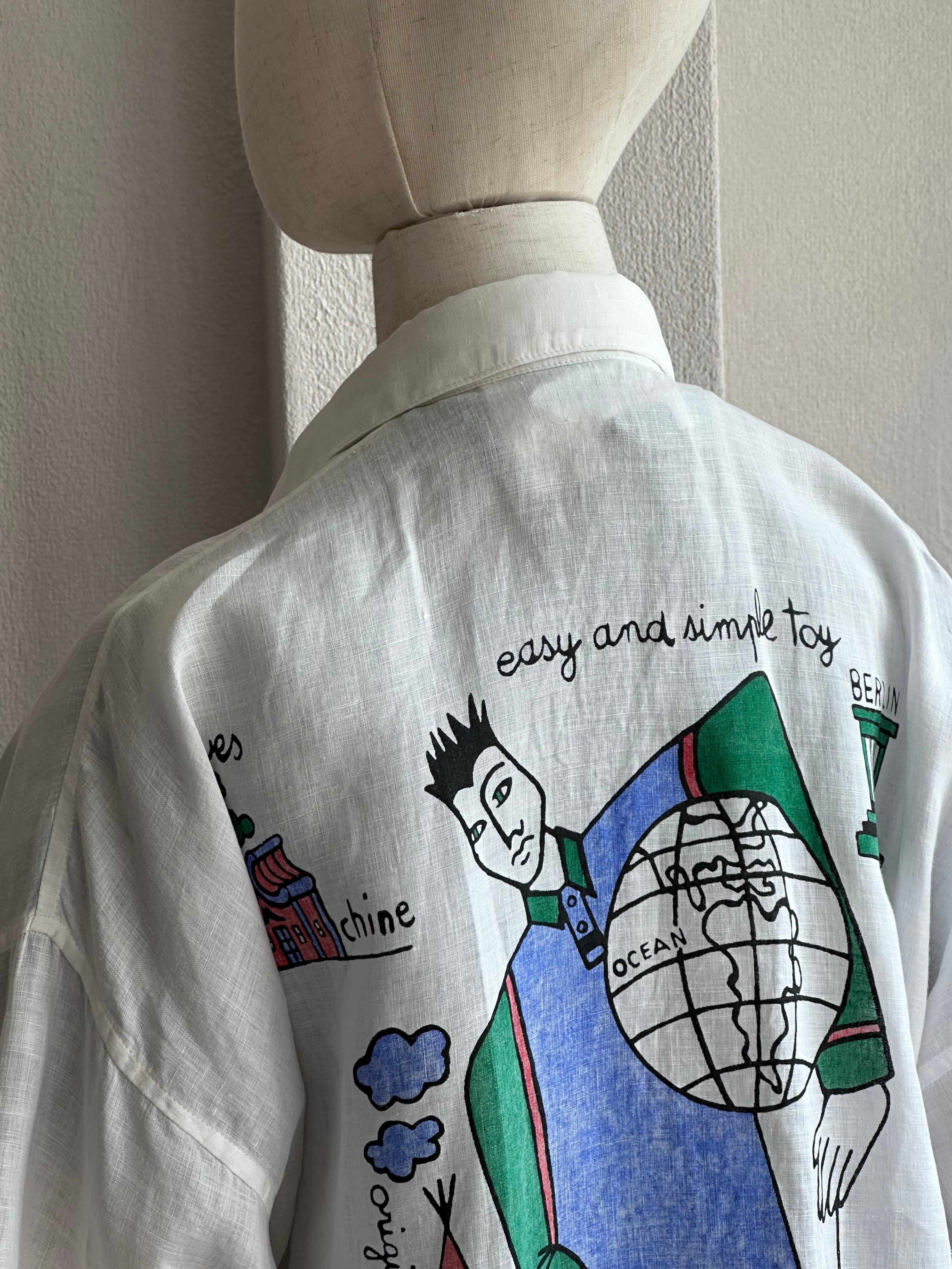 80's JEAN CHARELS DE CASTELBAJAC Comical Graphic Printed Oversized Linen SH