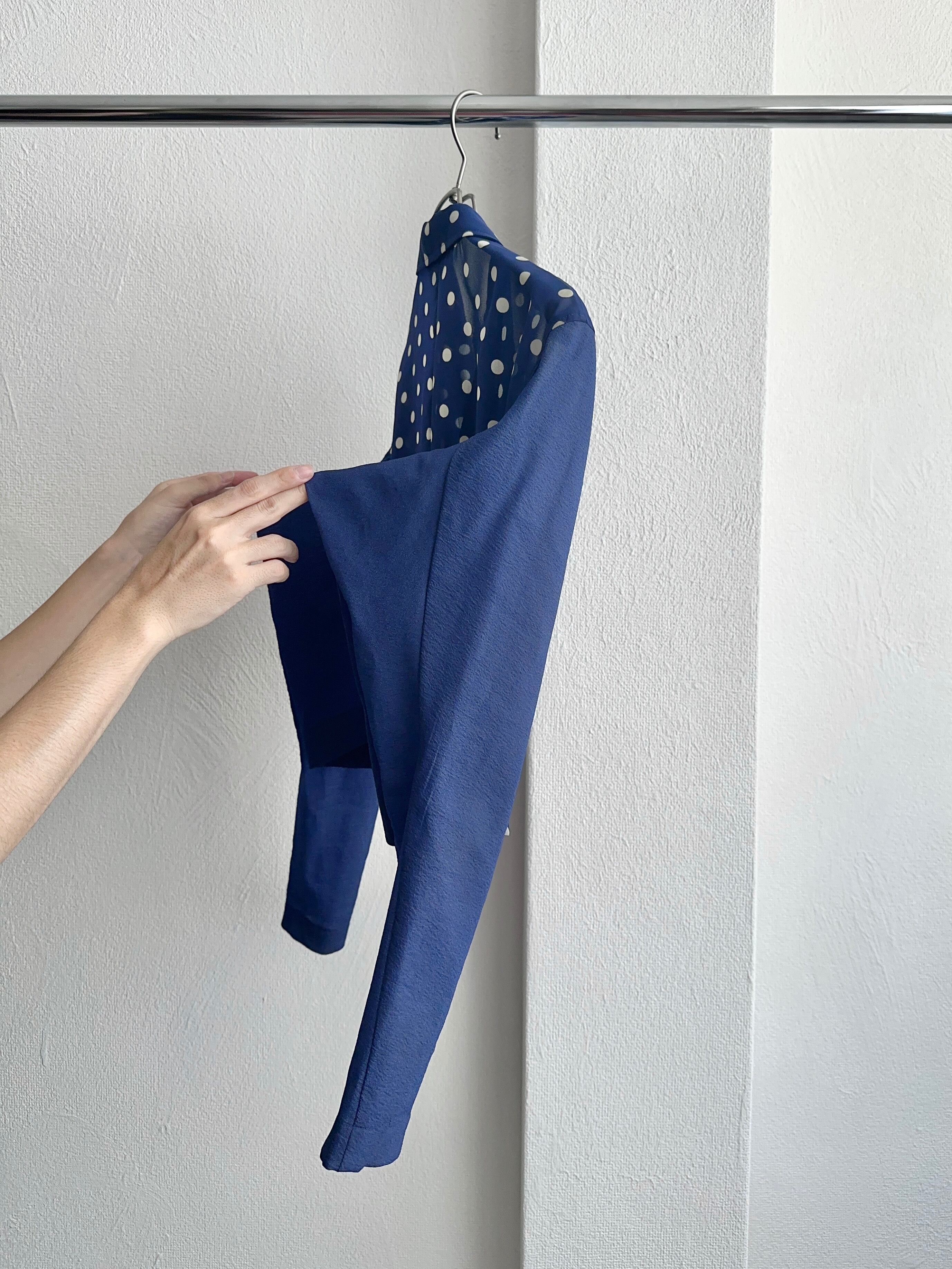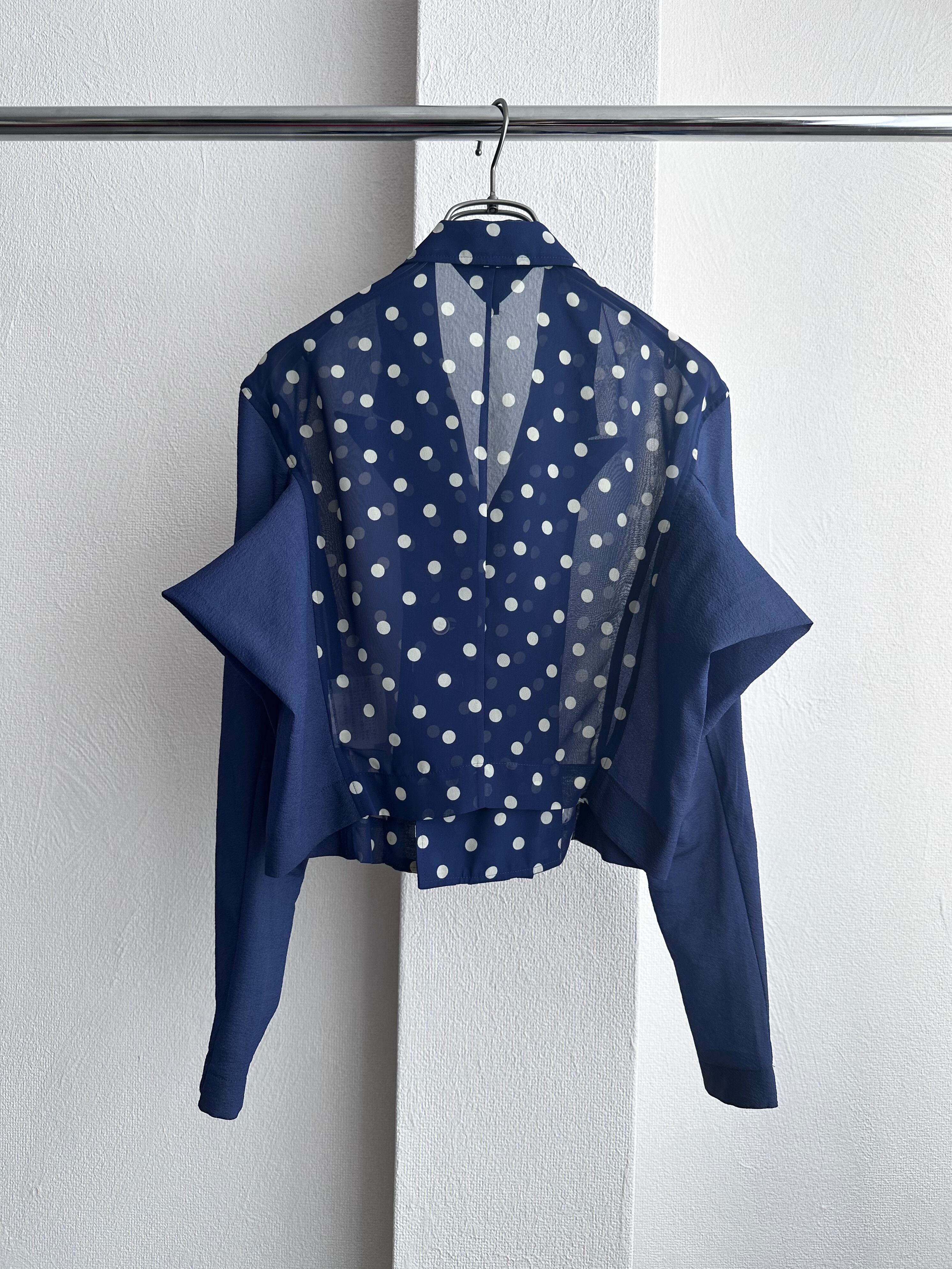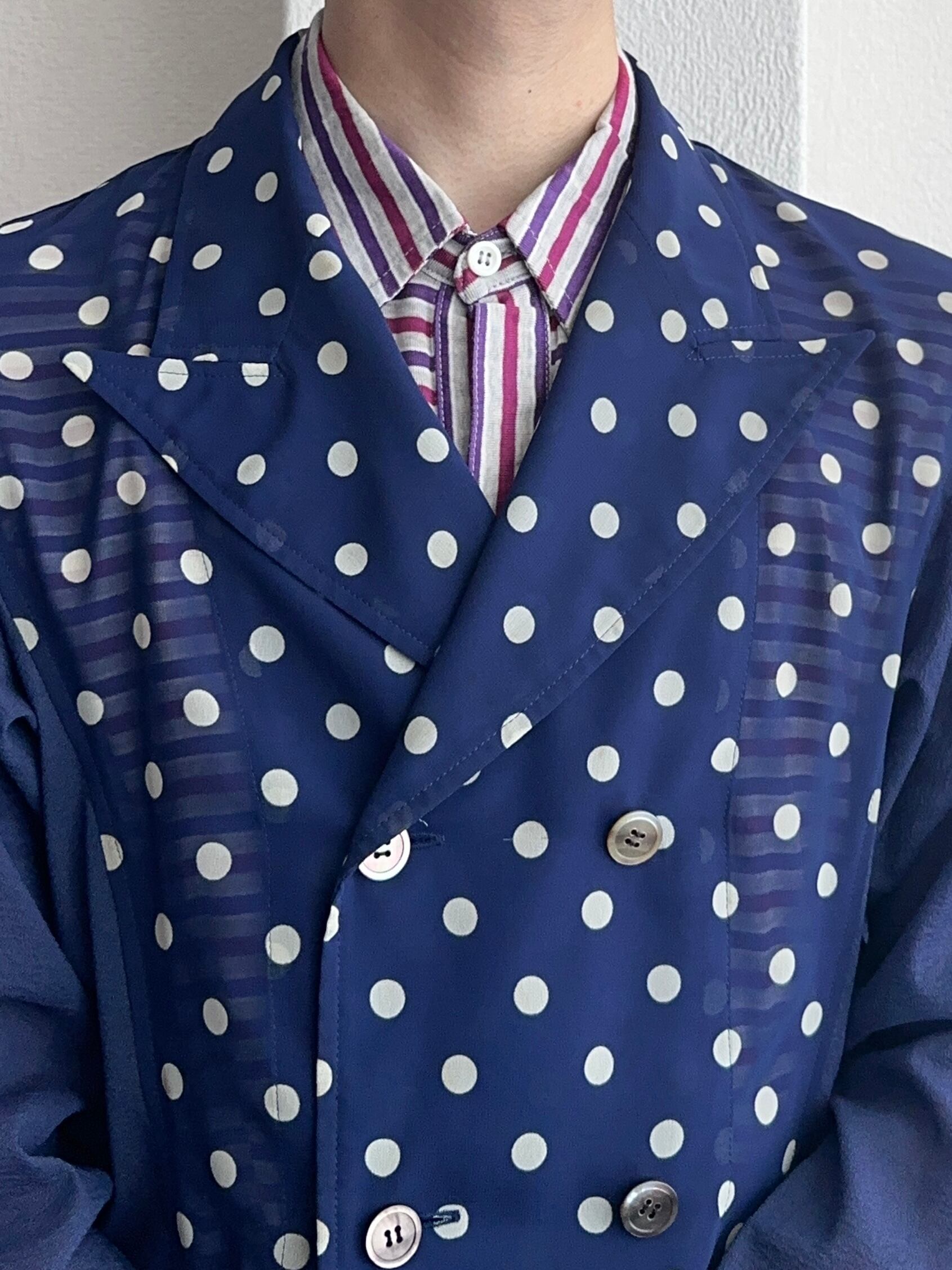 こちらはランウェイにも登場した、変則カットのシースルー・テーラード。