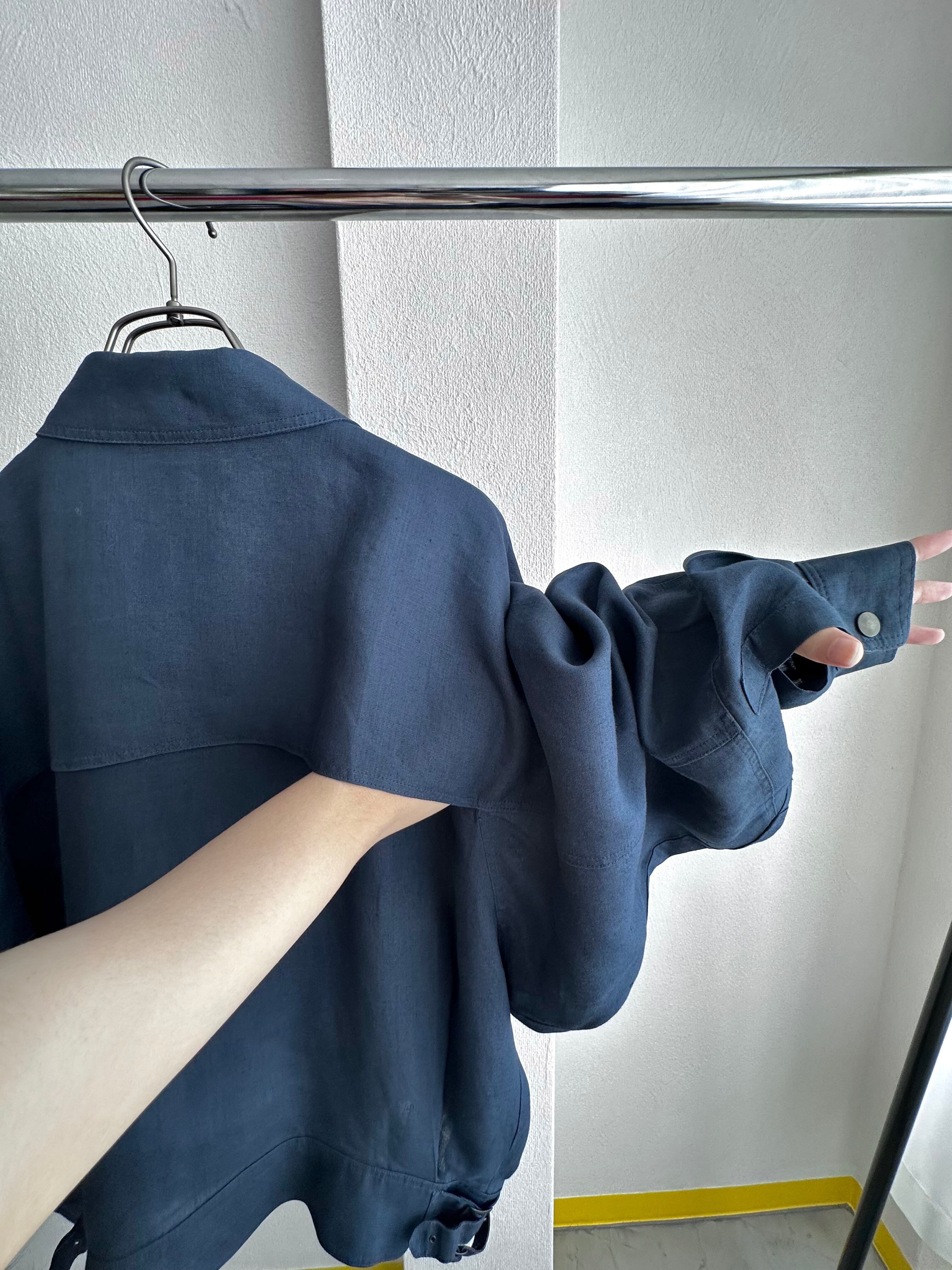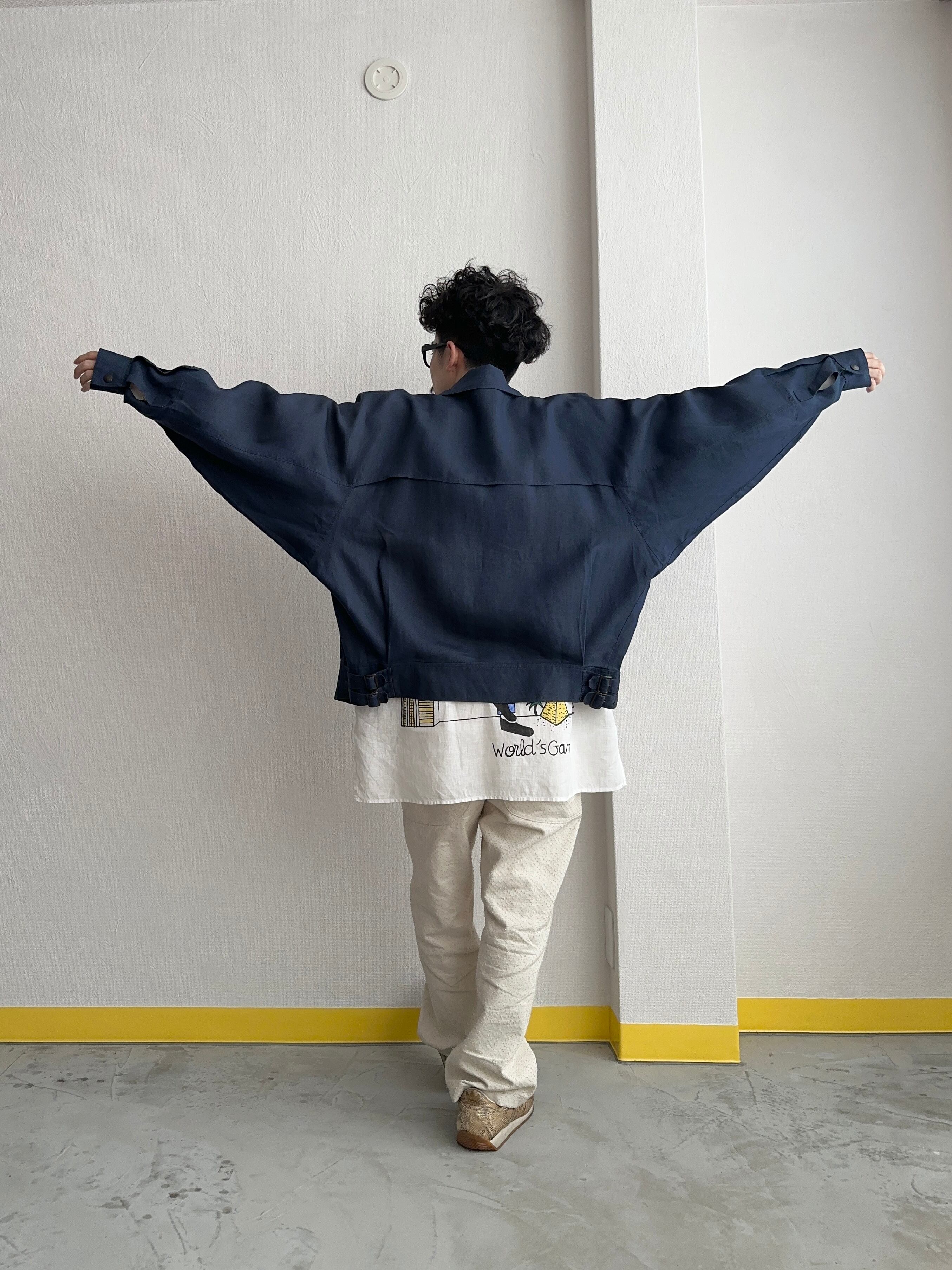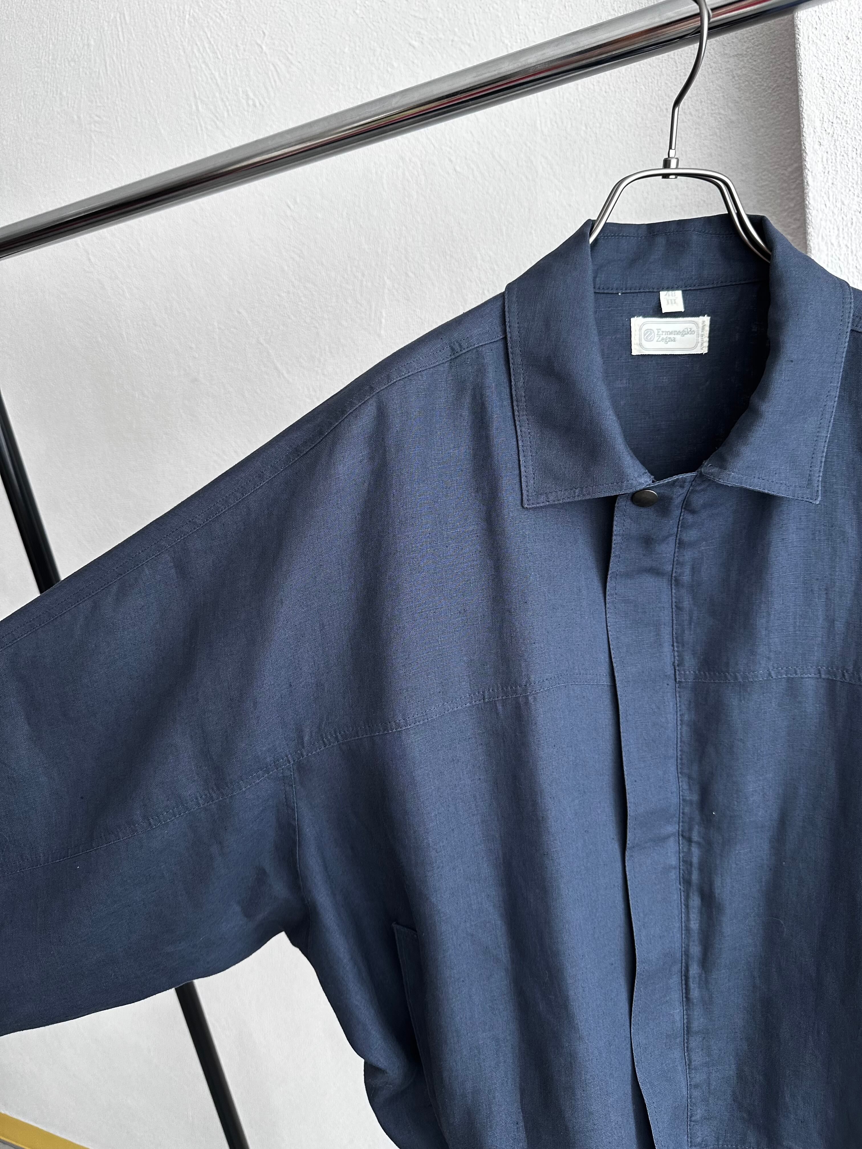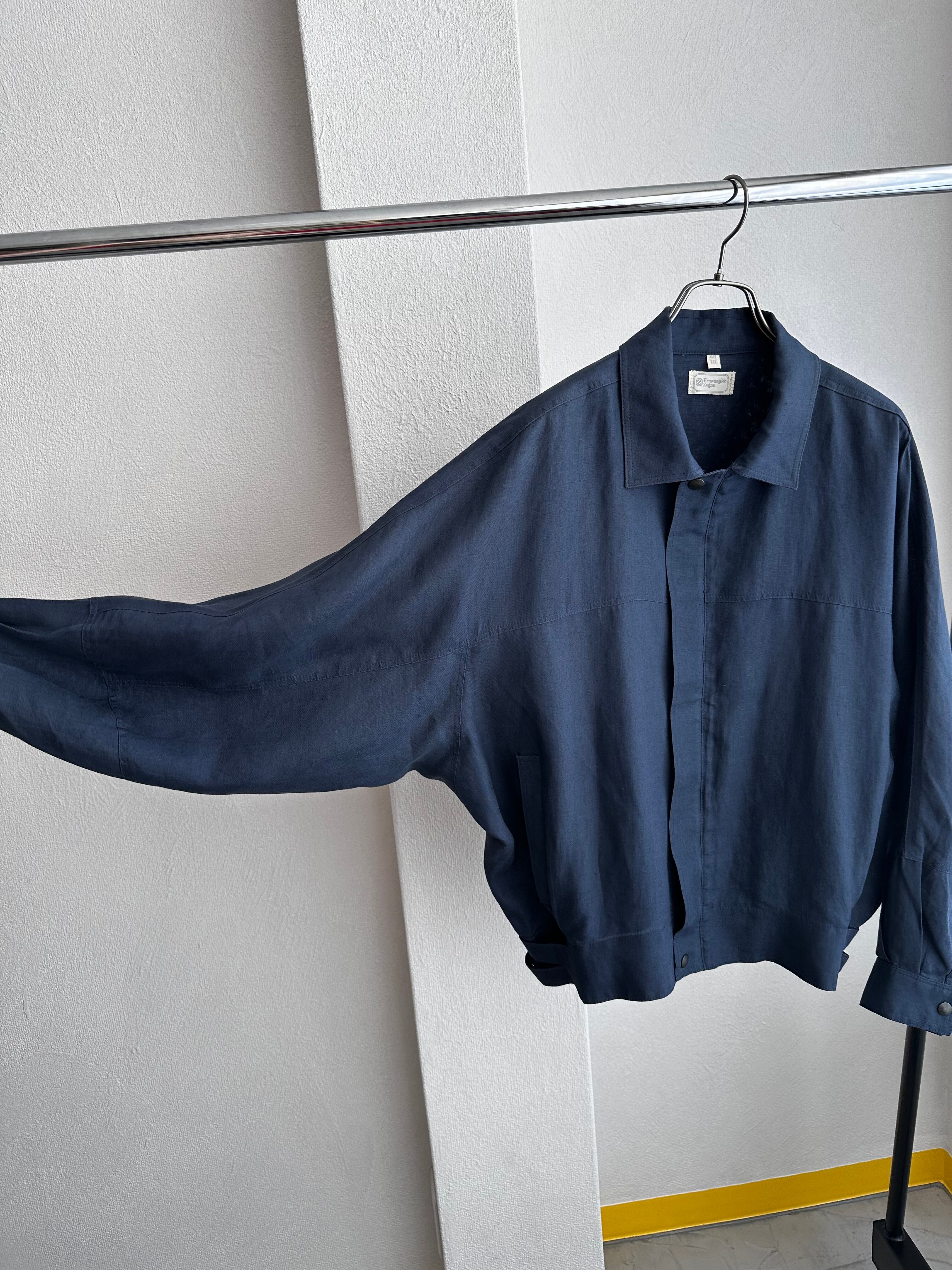 80's ERMENEGILDO ZEGNA Ex_Wide Body Indigo-Linen Blouson