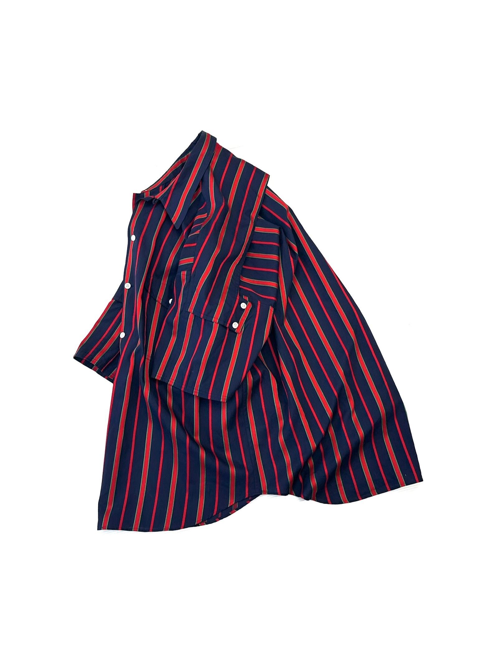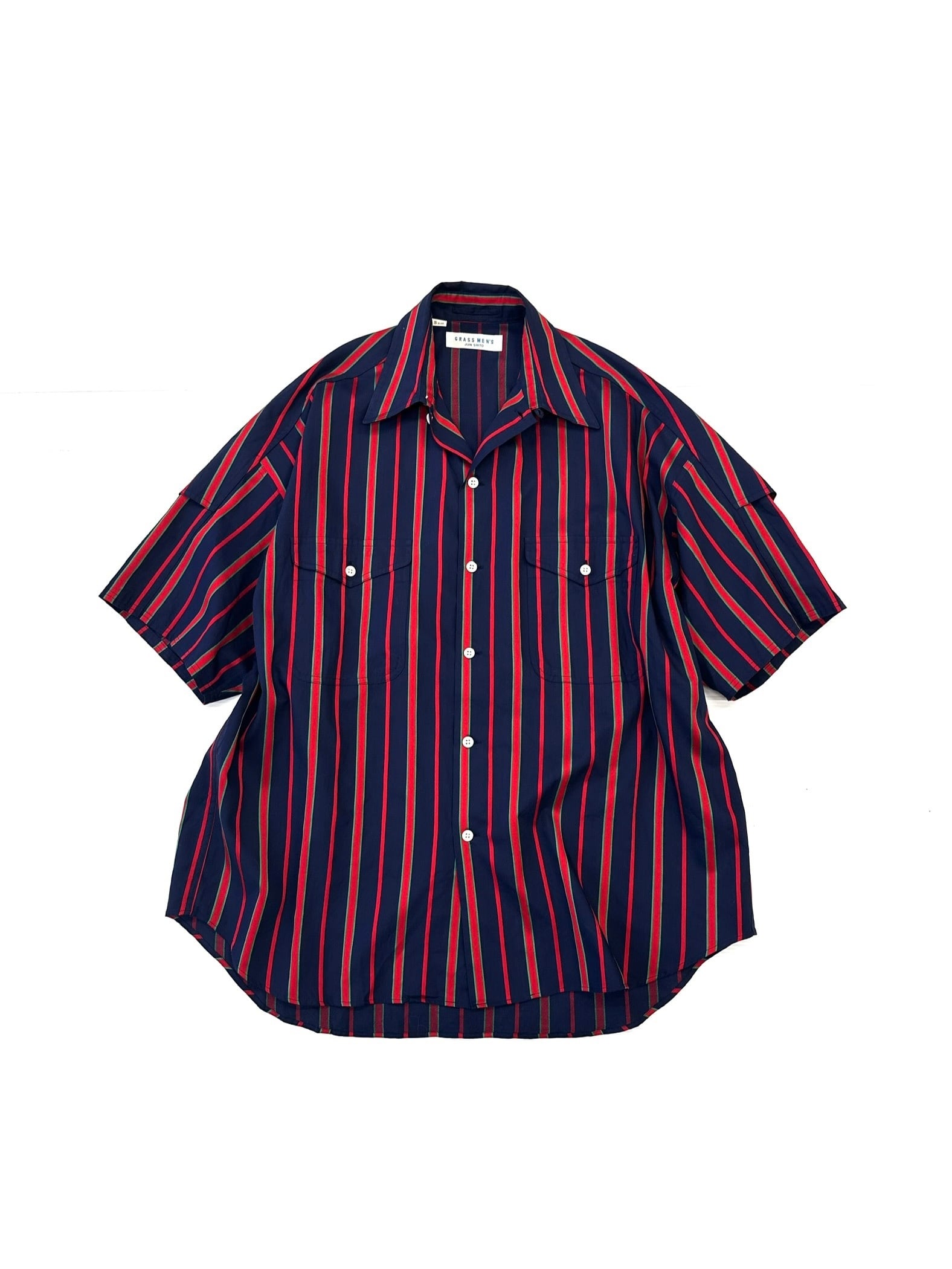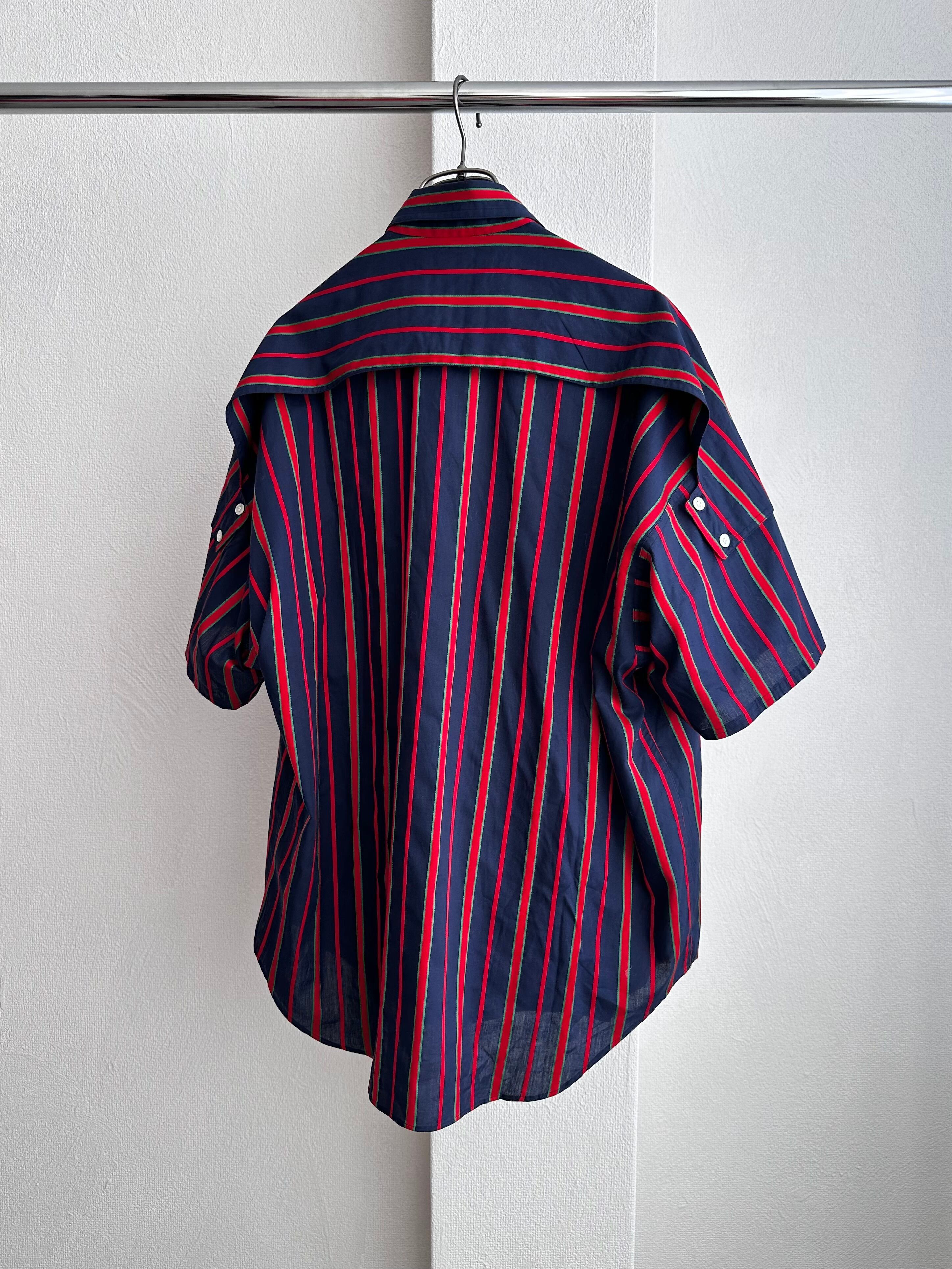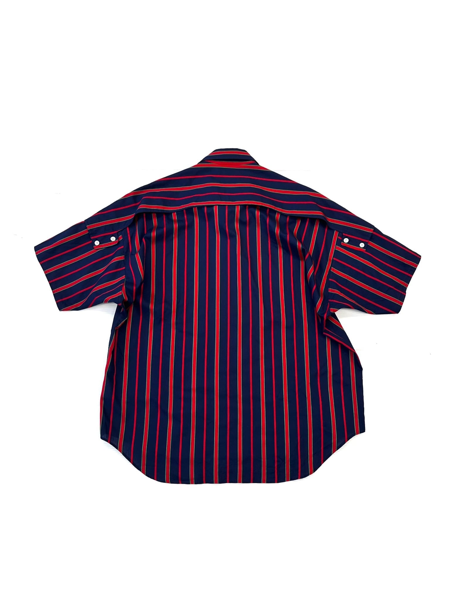 そこから辛うじて一枚羽織れる日差しの合間用、ここぞとばかりに構造遊びの楽しさを詰め込んだ半袖シャツ。