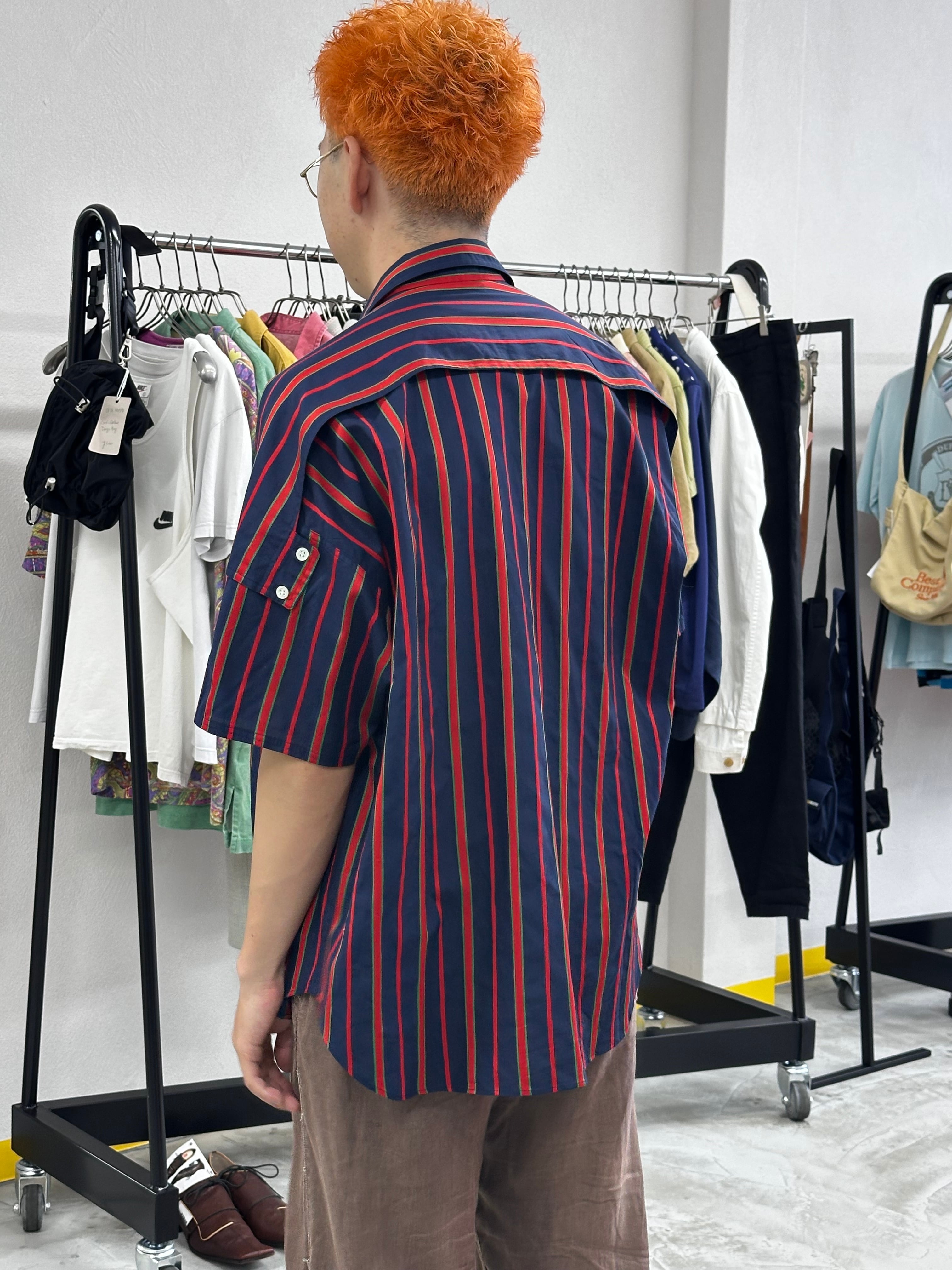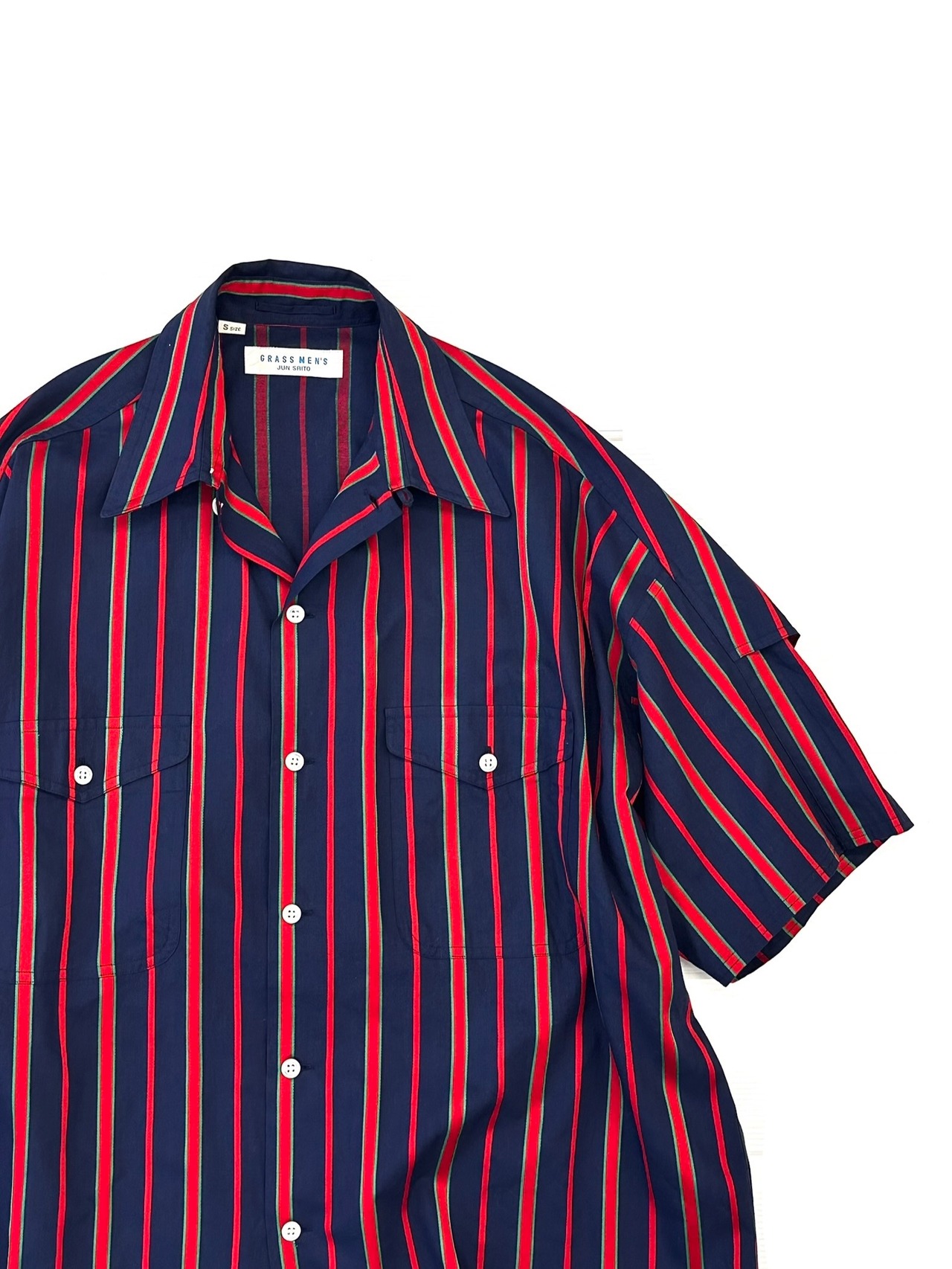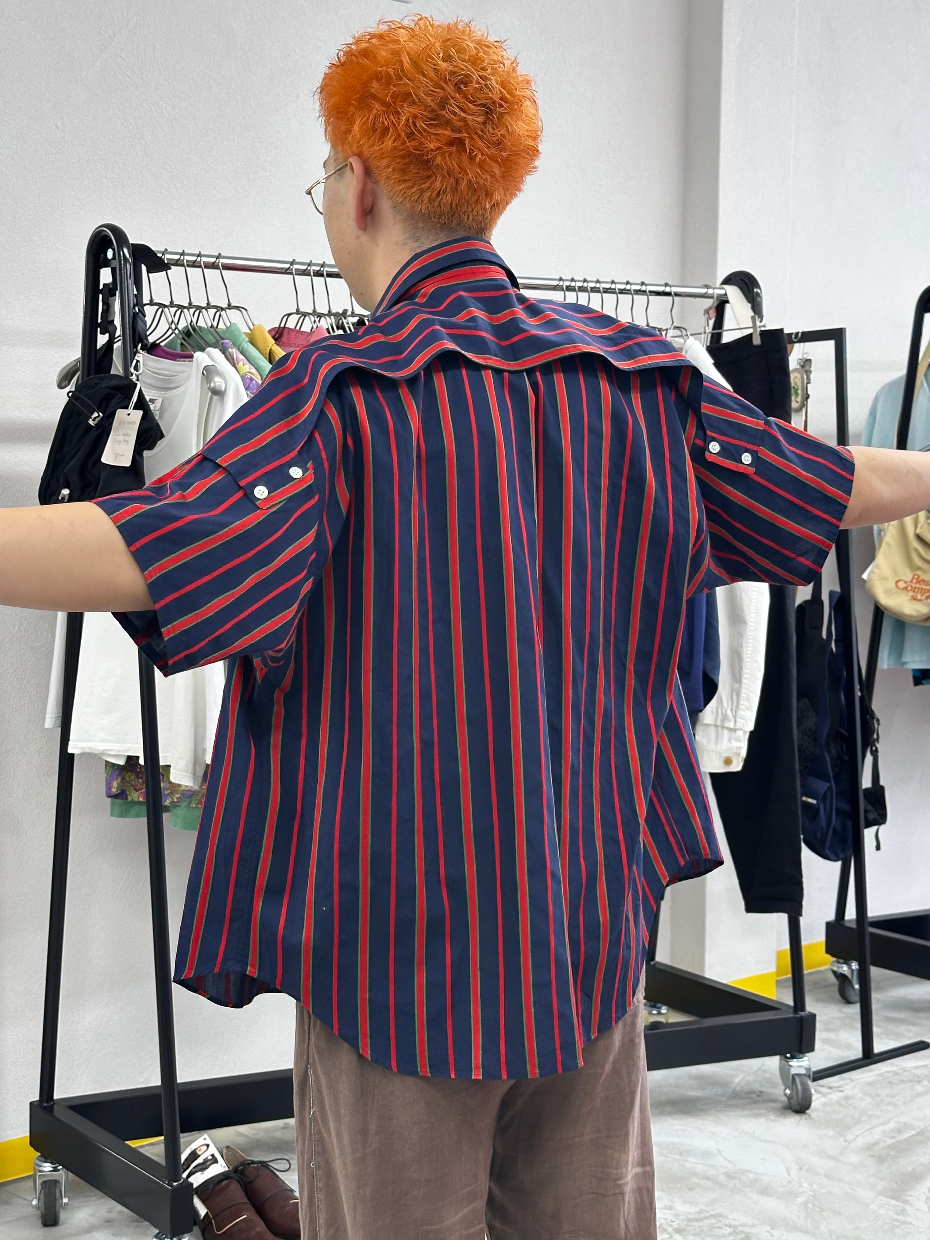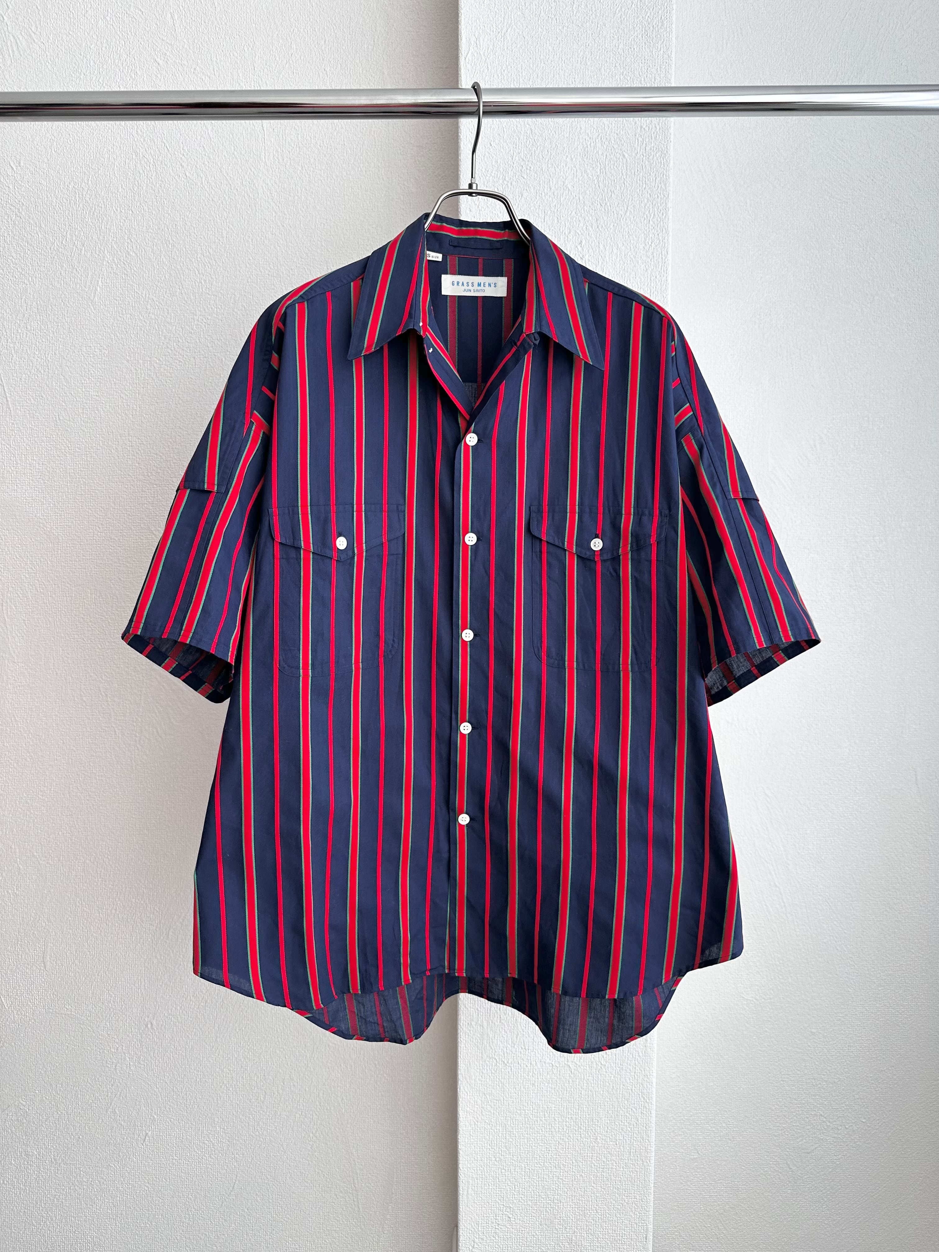 そこから辛うじて一枚羽織れる日差しの合間用、ここぞとばかりに構造遊びの楽しさを詰め込んだ半袖シャツ。