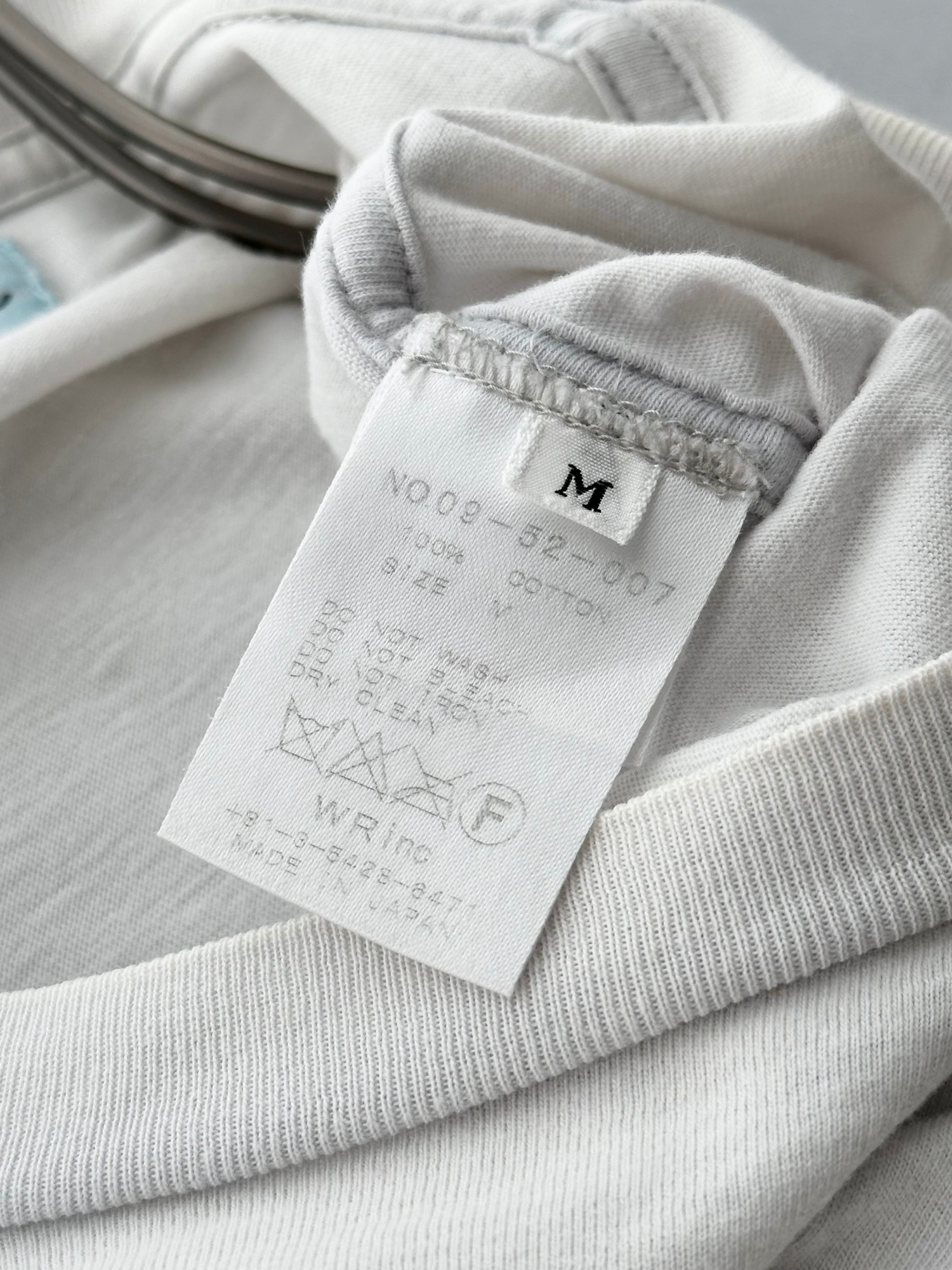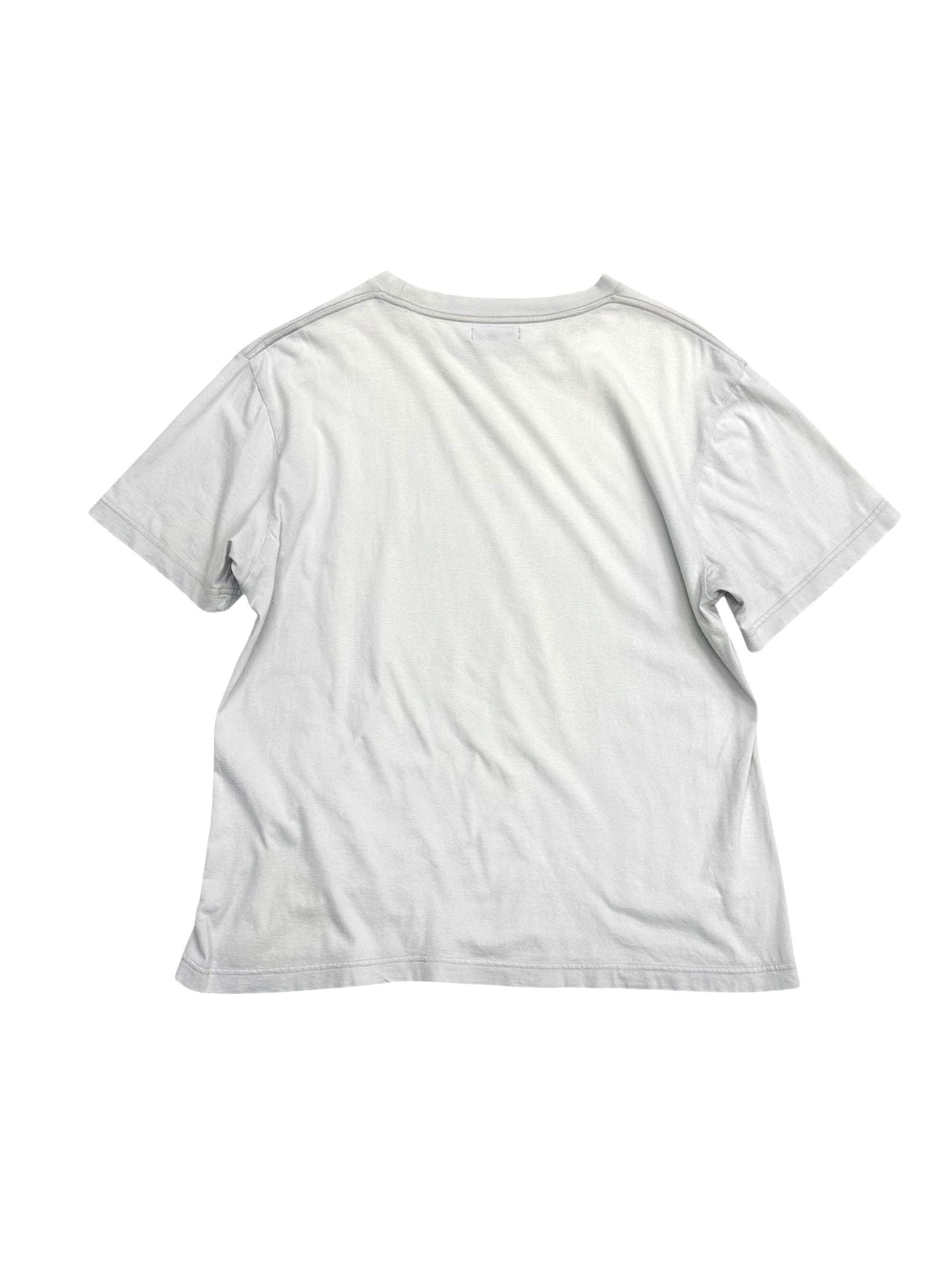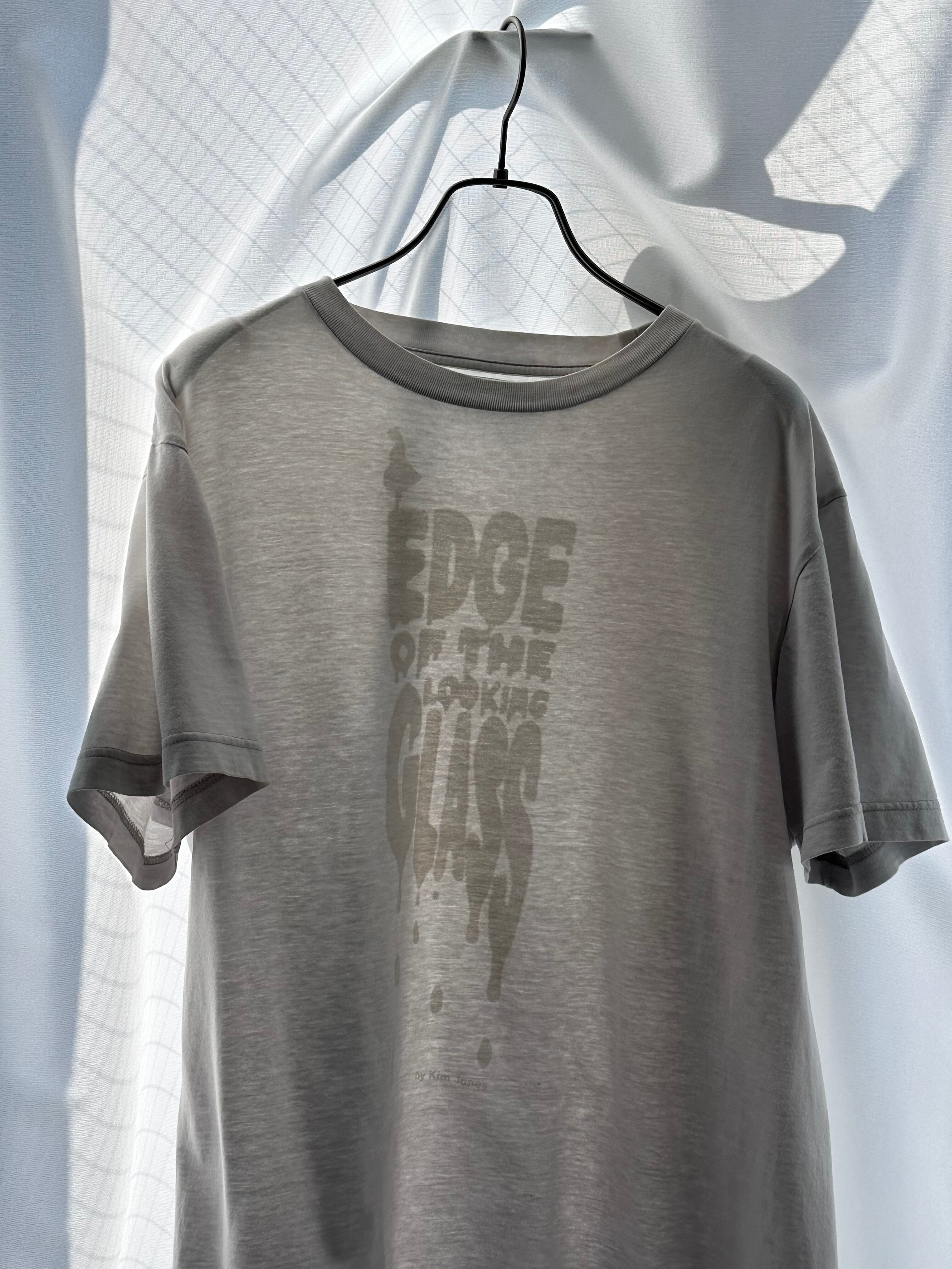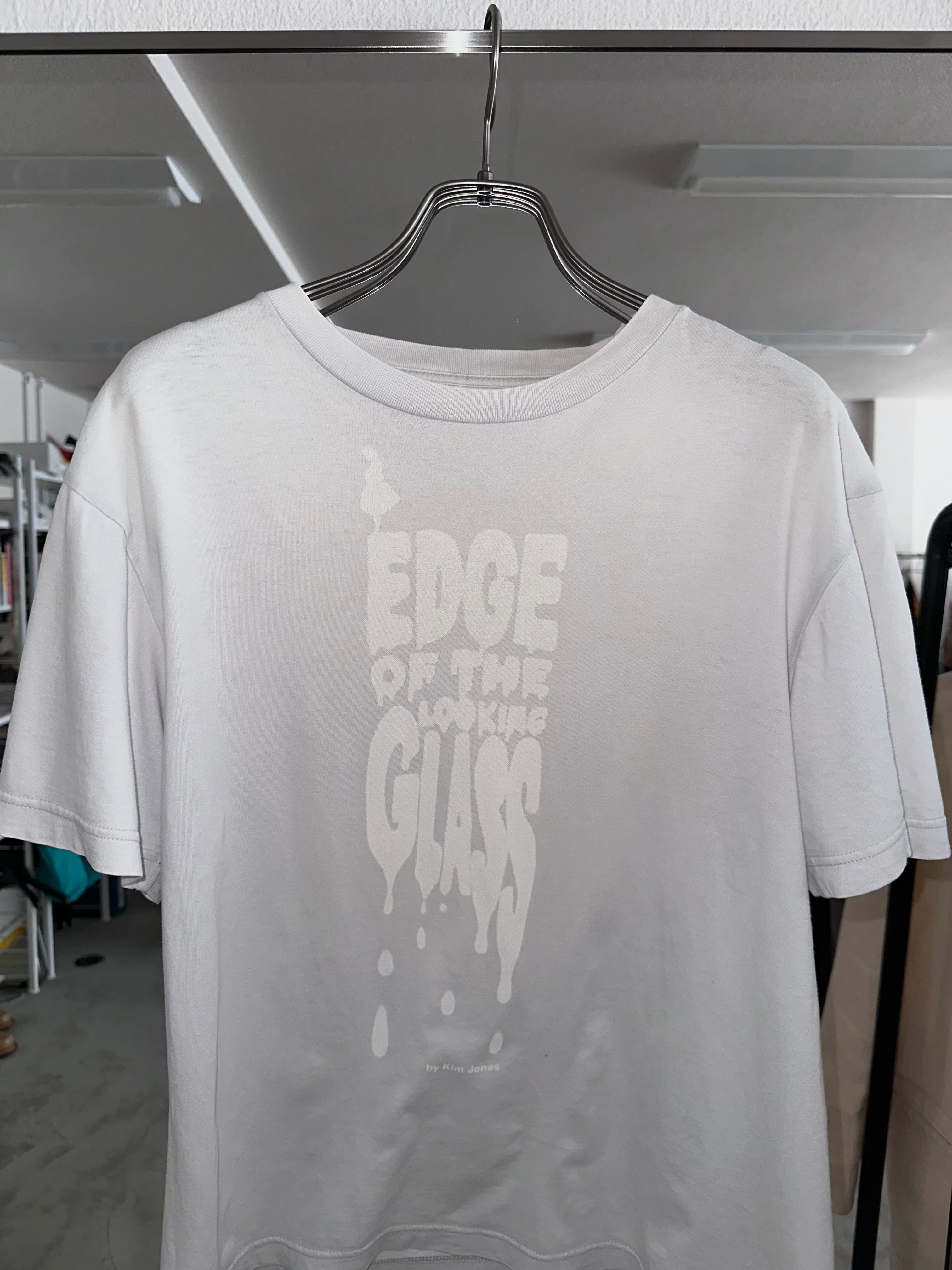 ホワイトとグレーの間みたいな、極めて朧げなソフトトーンのボディに、真っ白のインクでグラフィックプリント。