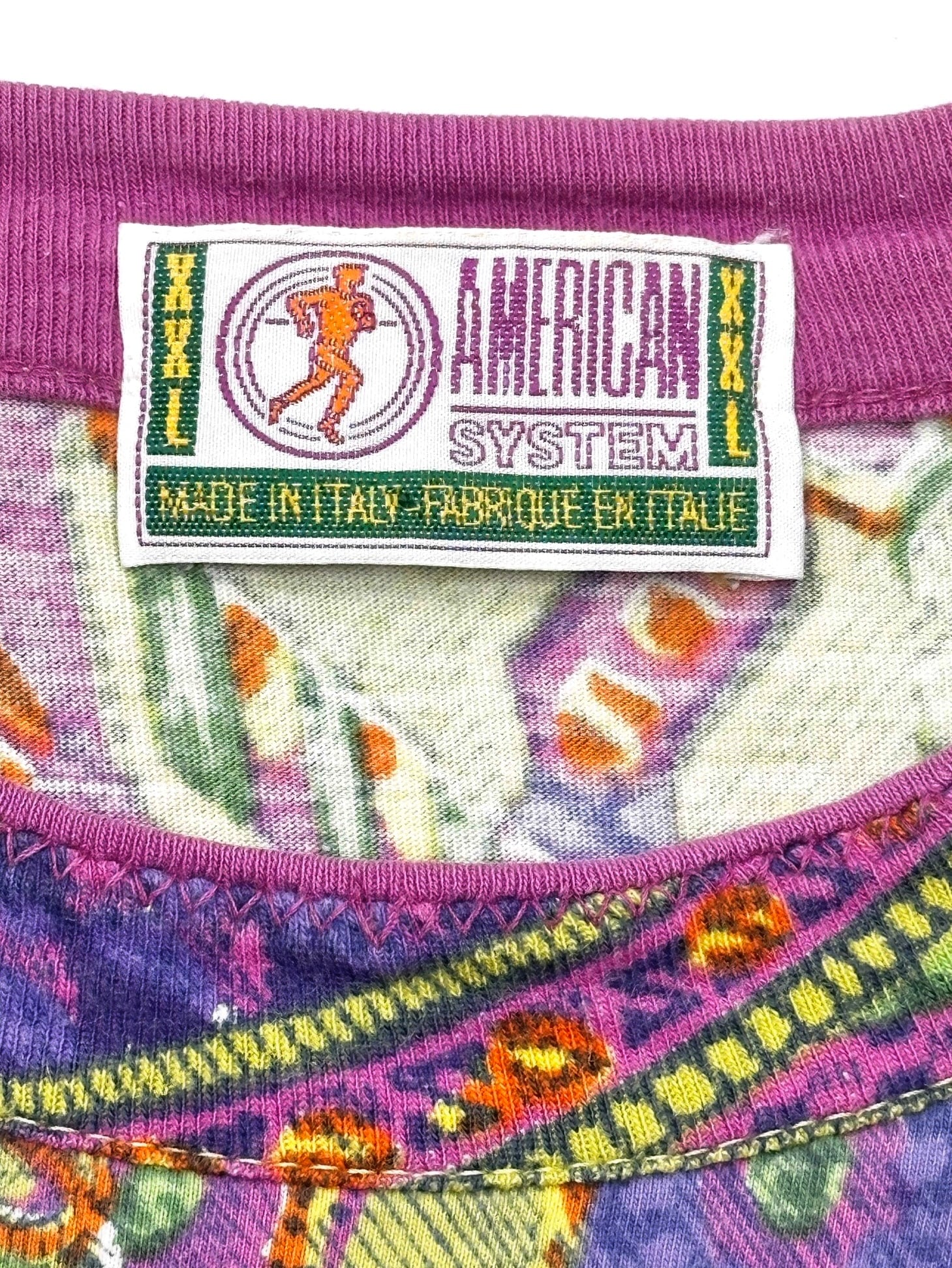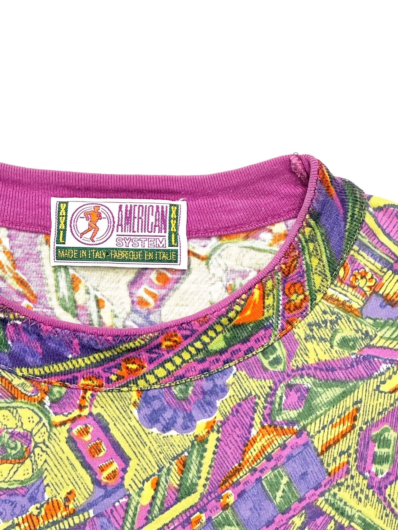 80's AMERICAN SYSTEM Psychedelic Full_Pattern Oversized Tee