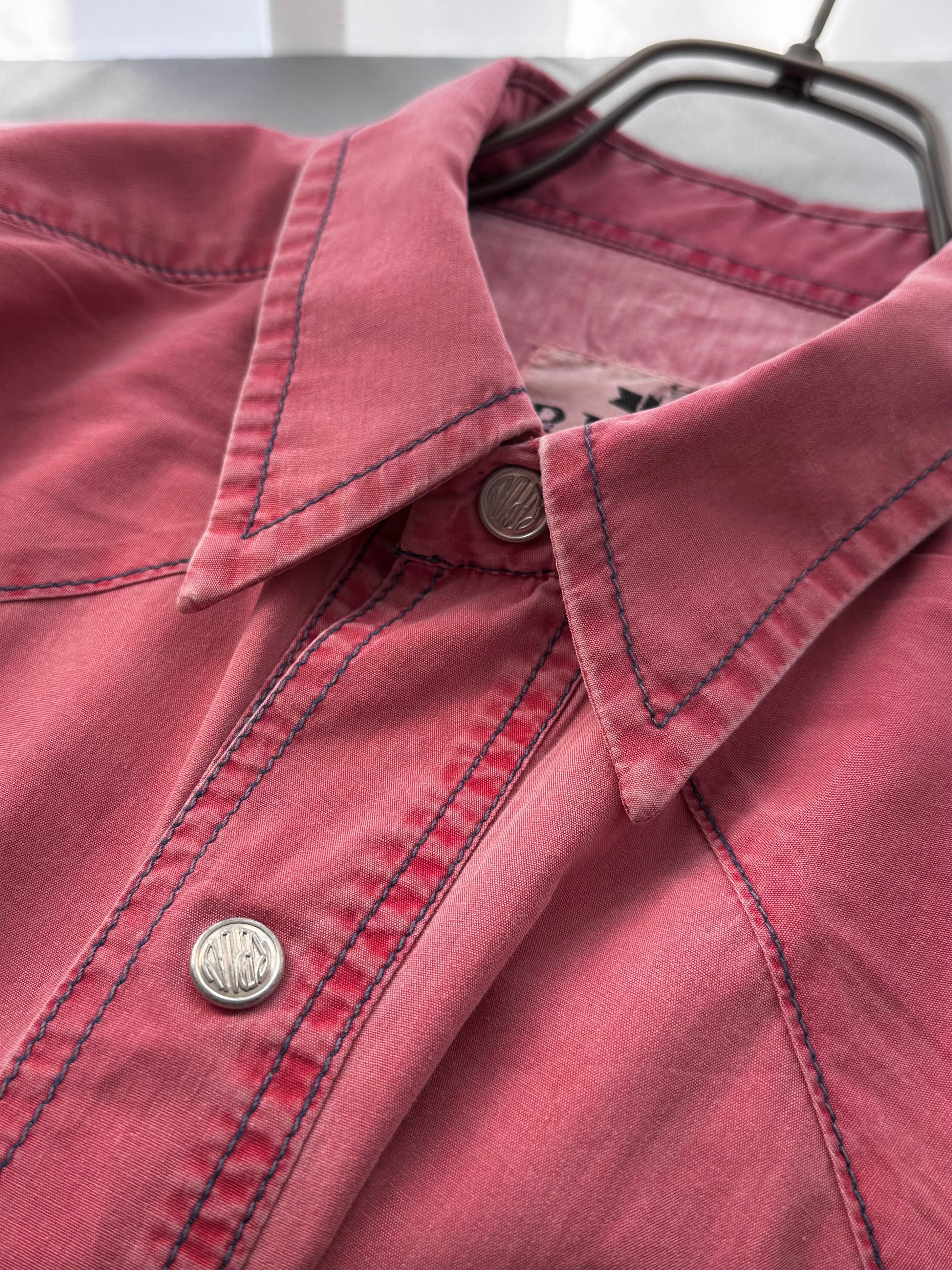 この色で仕立てられたウエスタンシャツ、これはアメリカでは作られそうにありませんが、まるでタフガイに着せたような着古し加工によって全く新しい美しさを獲得しています。