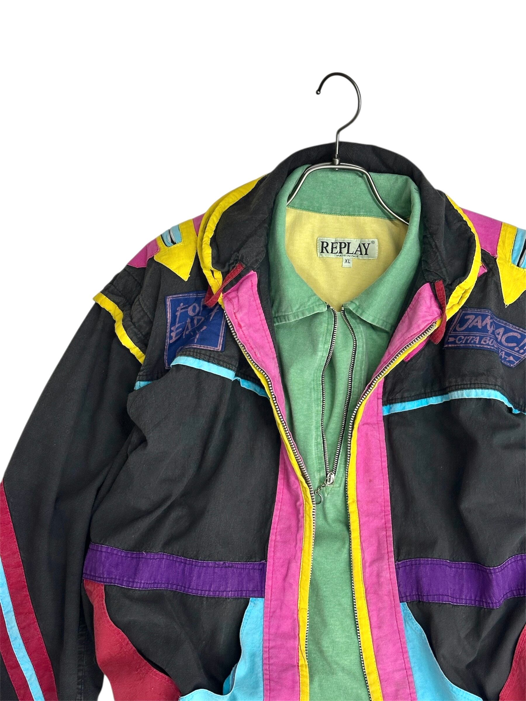 c1980's INDONESIA MADE Acid Colors All-Cotton Racing JKT