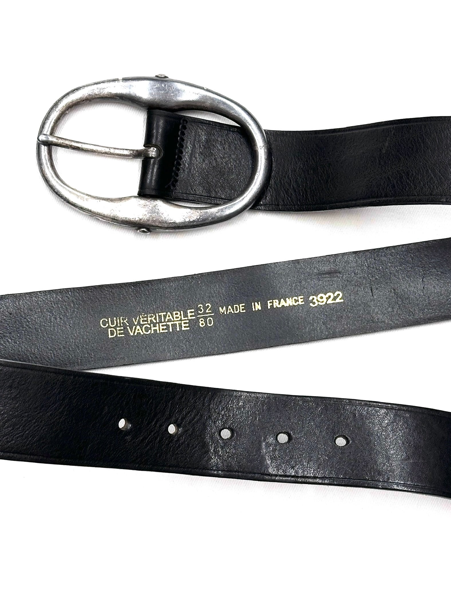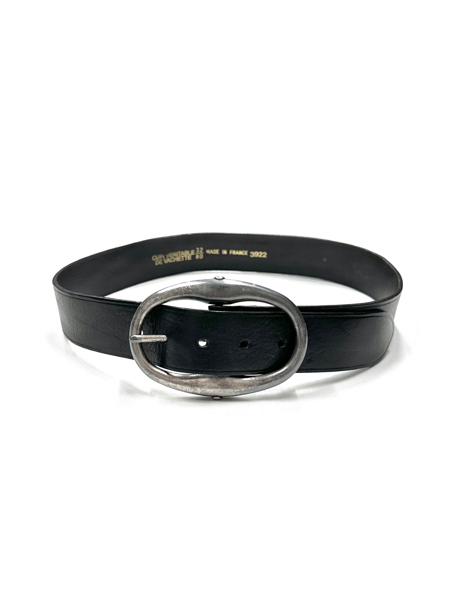 c90's FRANCE MADE Bold Body Black Leather Belt