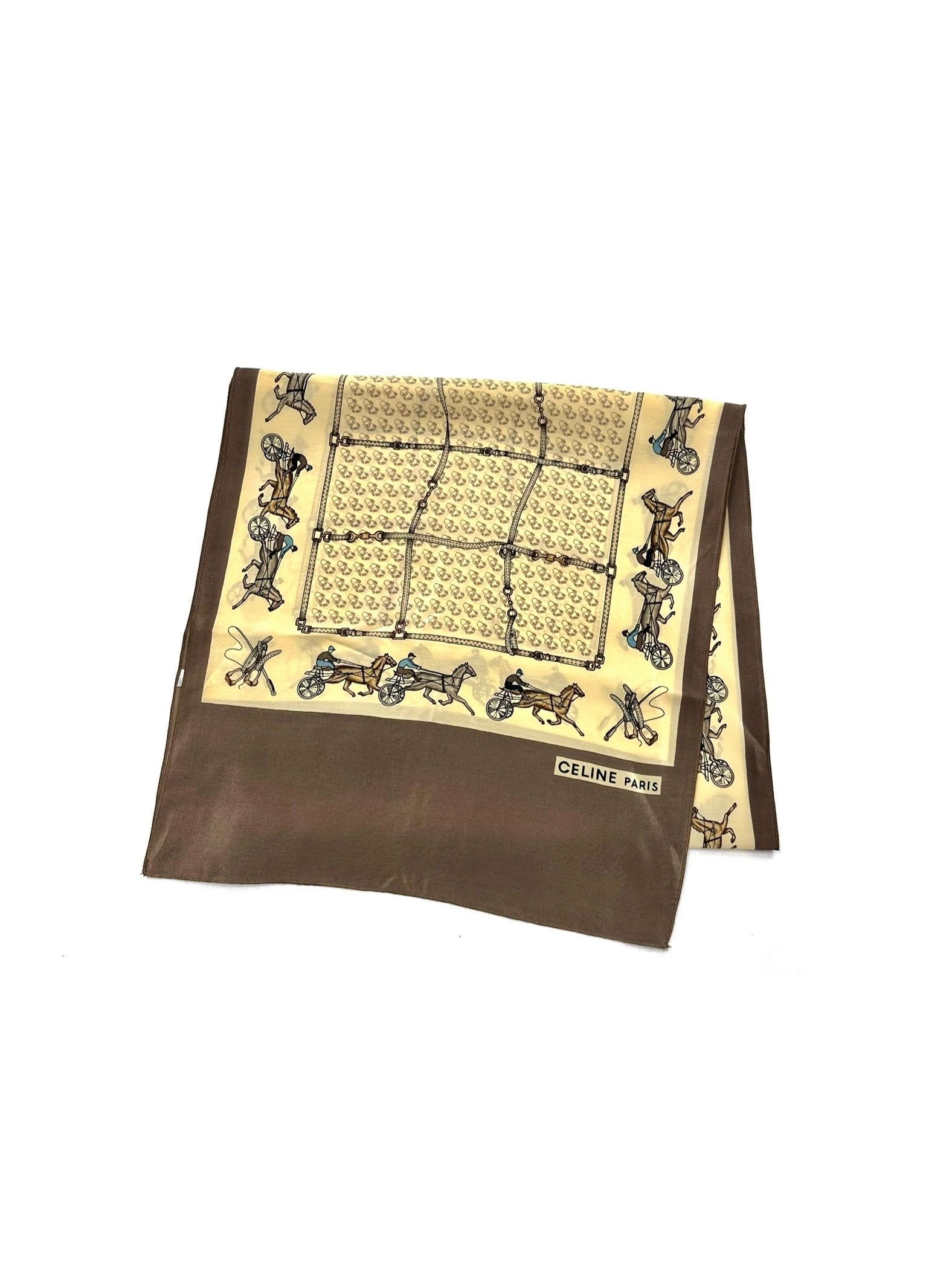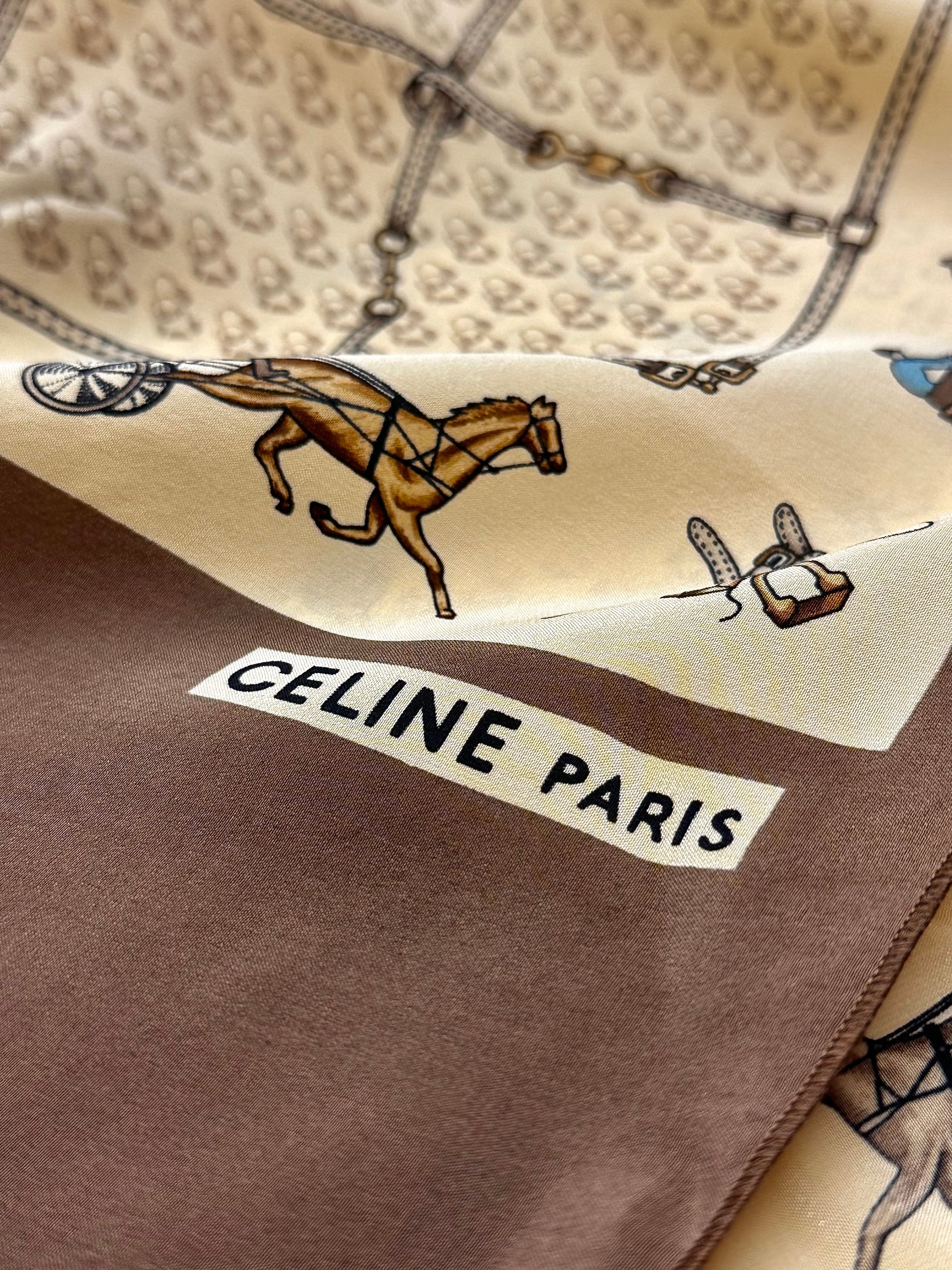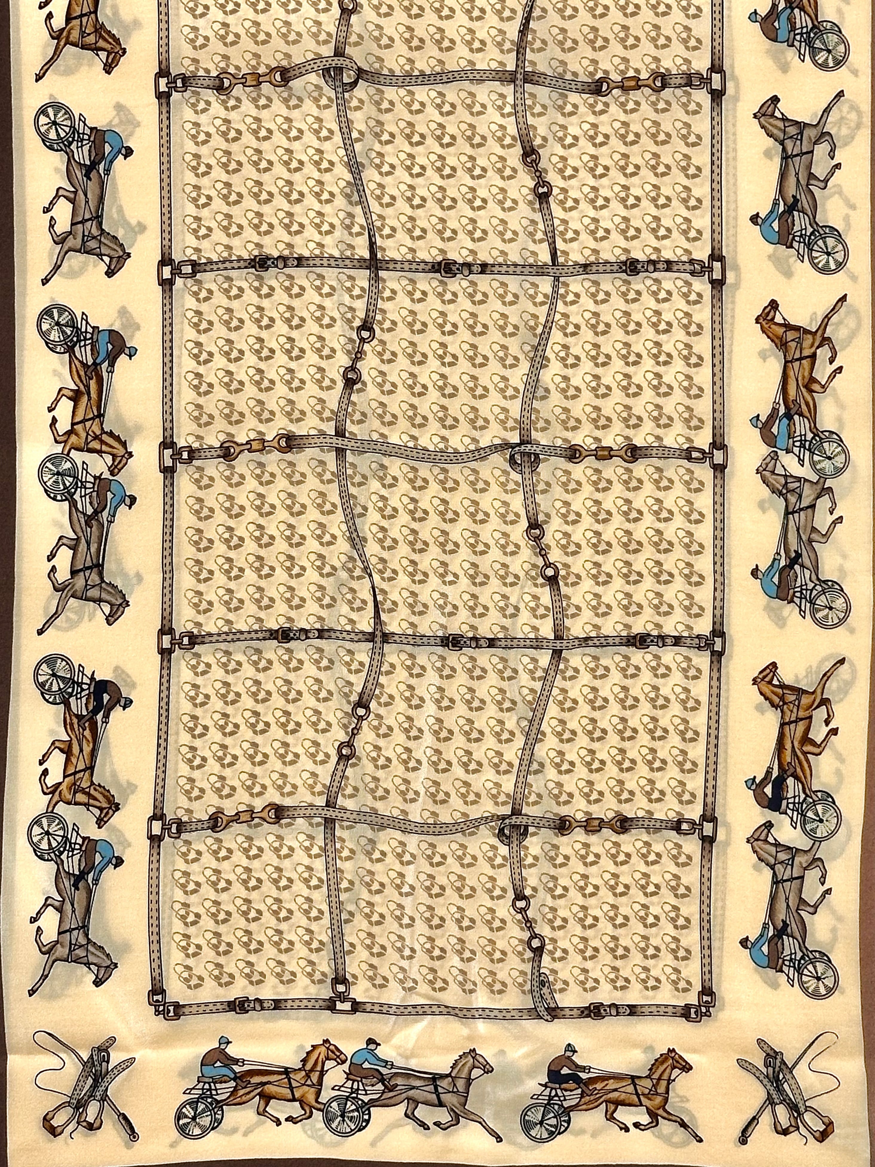 ベージュ×ブラウンのベースに乗馬や馬具のグラフィックを散りばめた構成り
