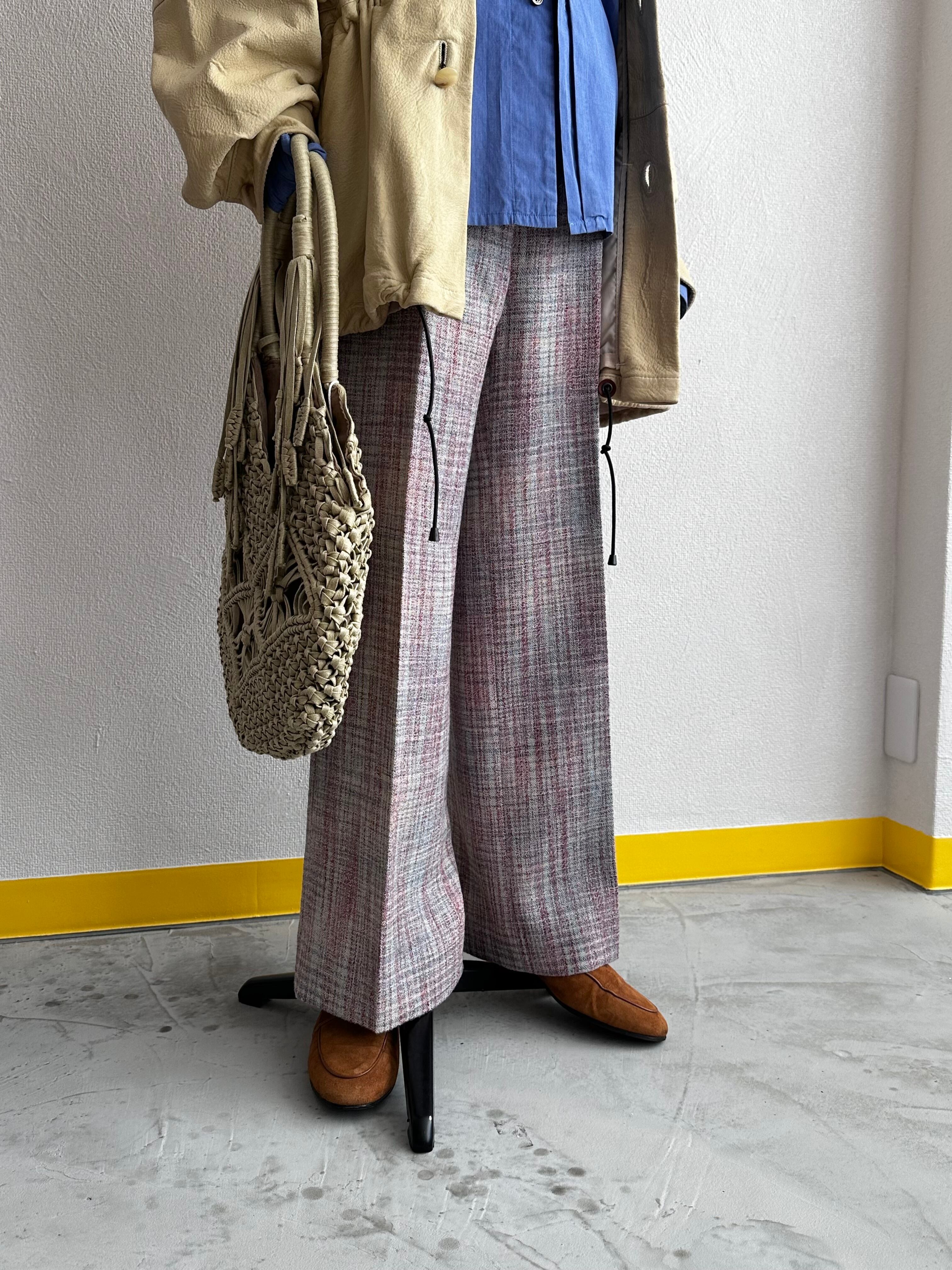 CELINE by P.PHILO Pink×Blue Airy Tweed Wide Flare Slacks