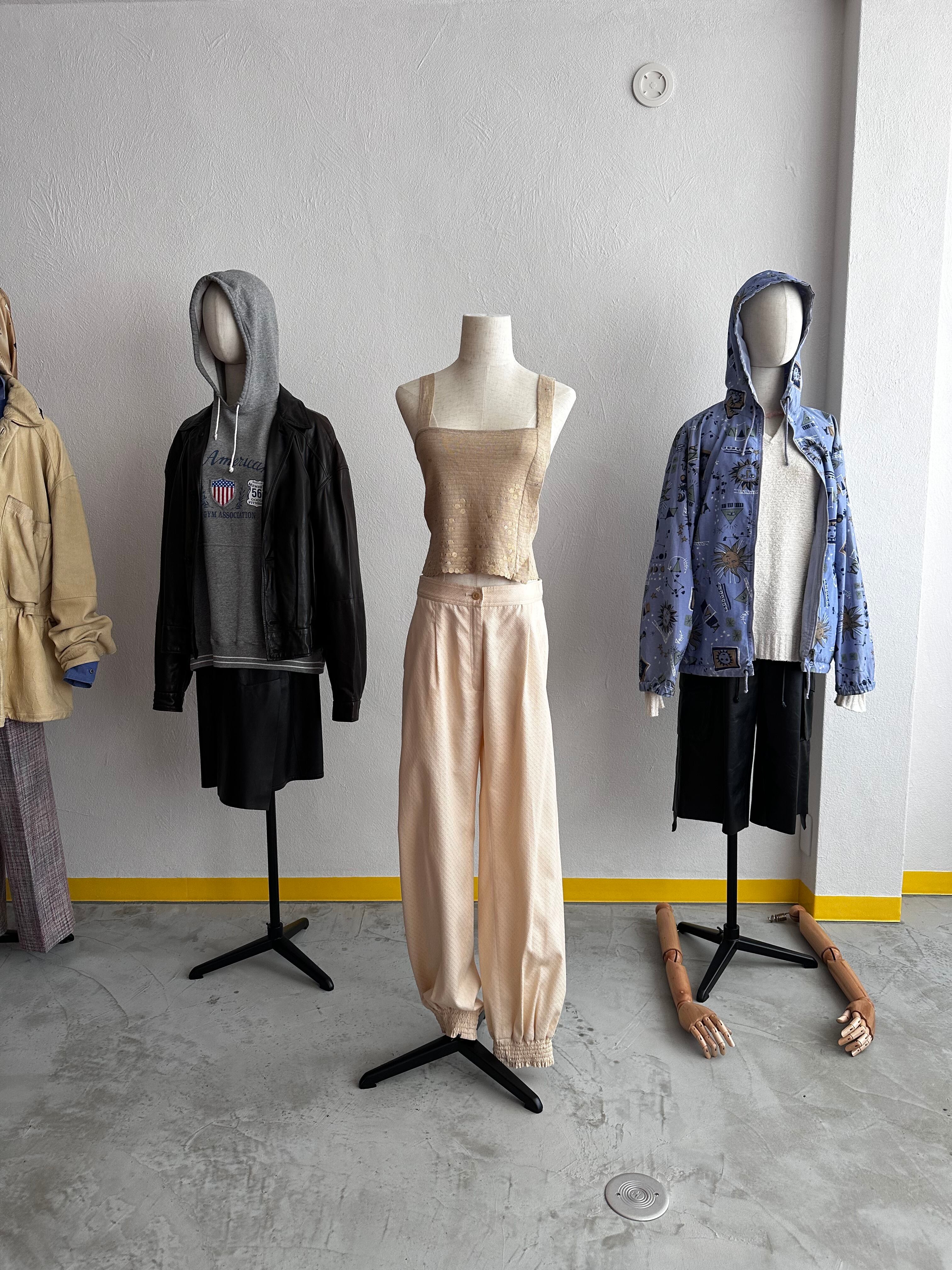 元のテキスタイルデザインが面白いだけに、それを邪魔しないミニマムなチョイス。