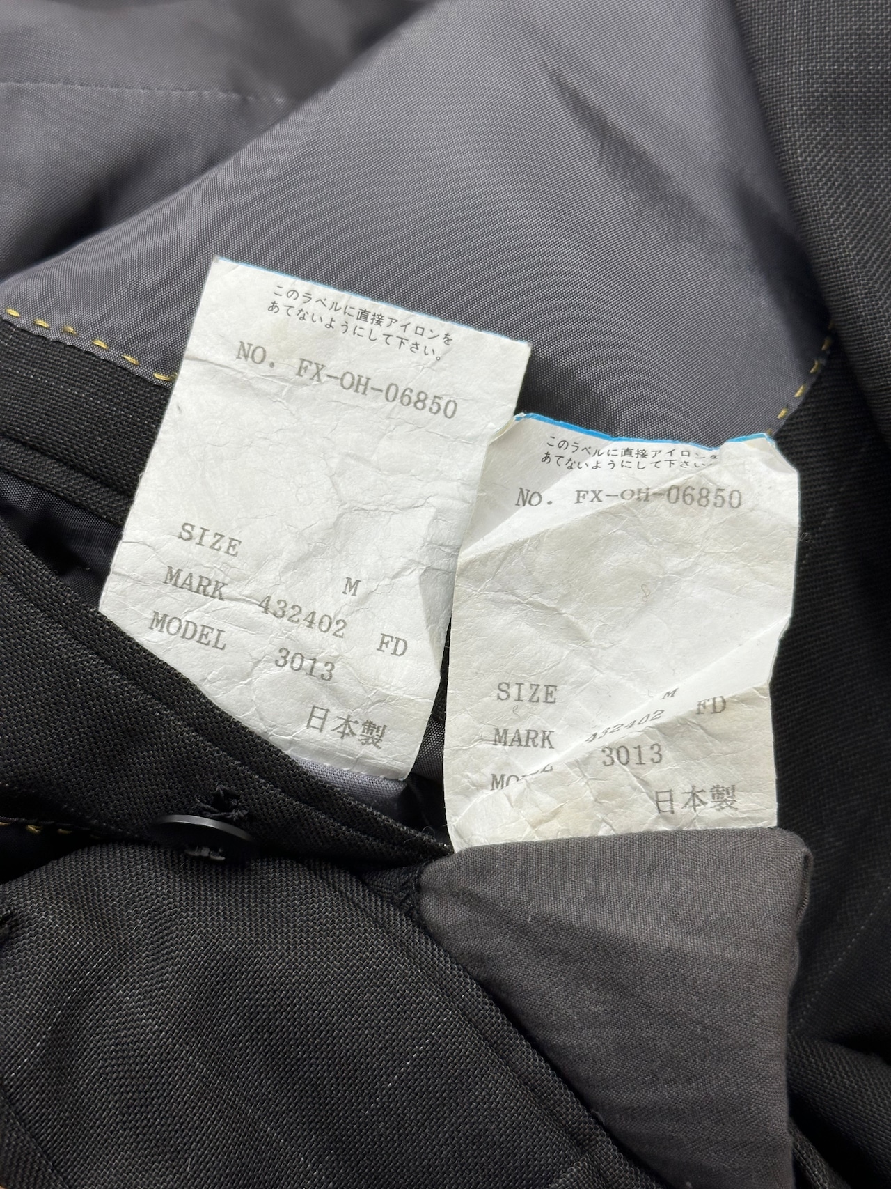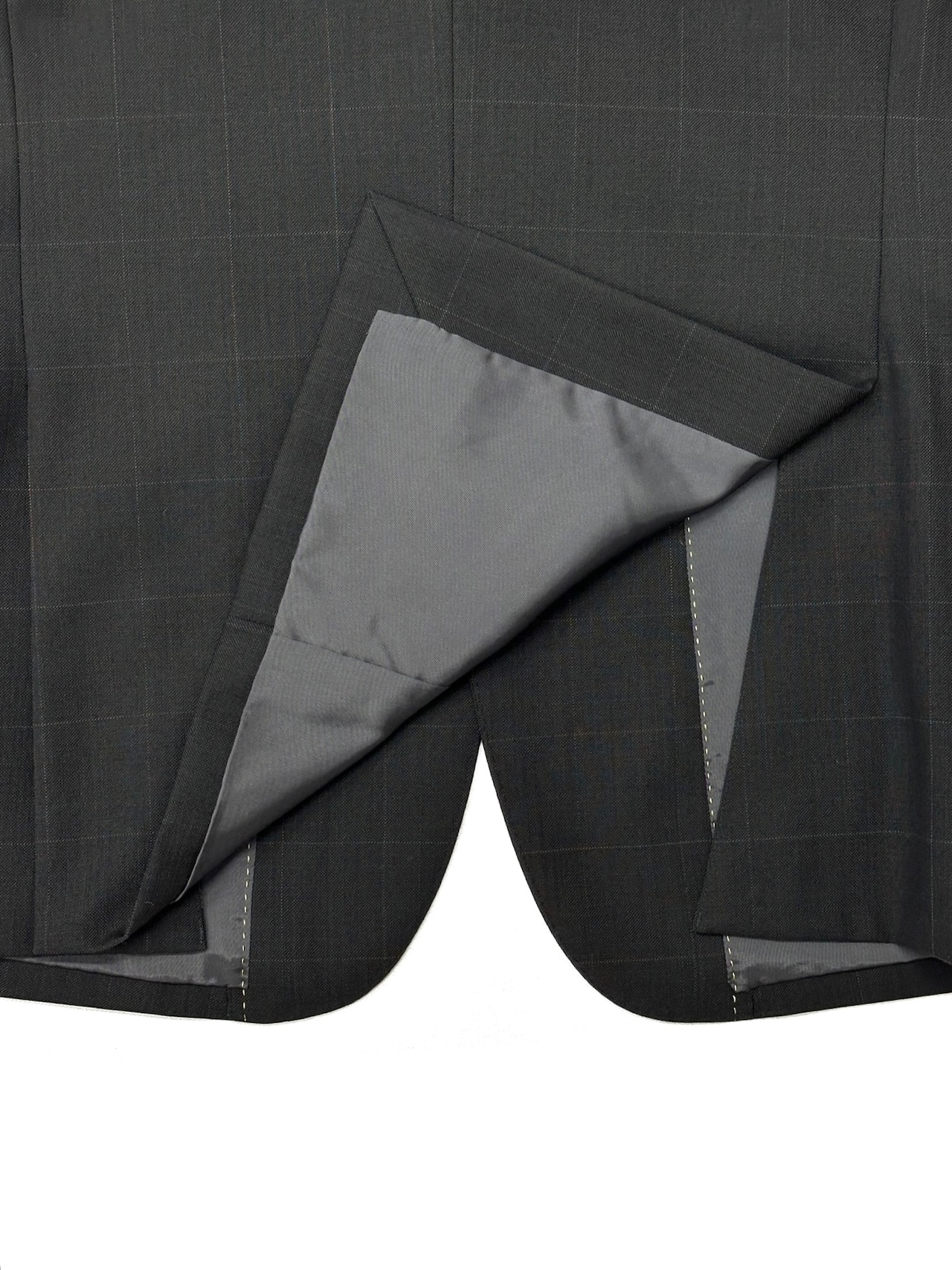 あとは裏面、見返しと裏地の境界線を彩るイエローステッチとか、サイドベンツを翻した時のカッティングの角度とか、丸みを消したソリッドな直角ポケットフラップとか、細かい所でニクいウィットを連打してます。