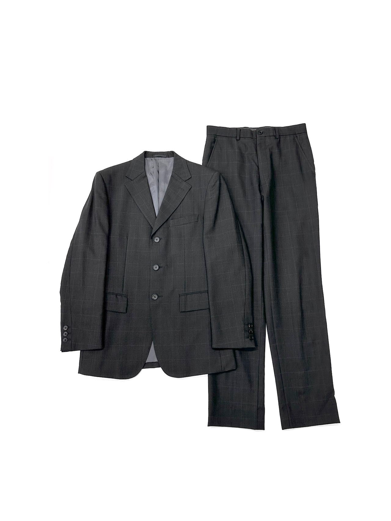 ニュートラルなミドルグレーに、か細いウインドウペンの織り柄。