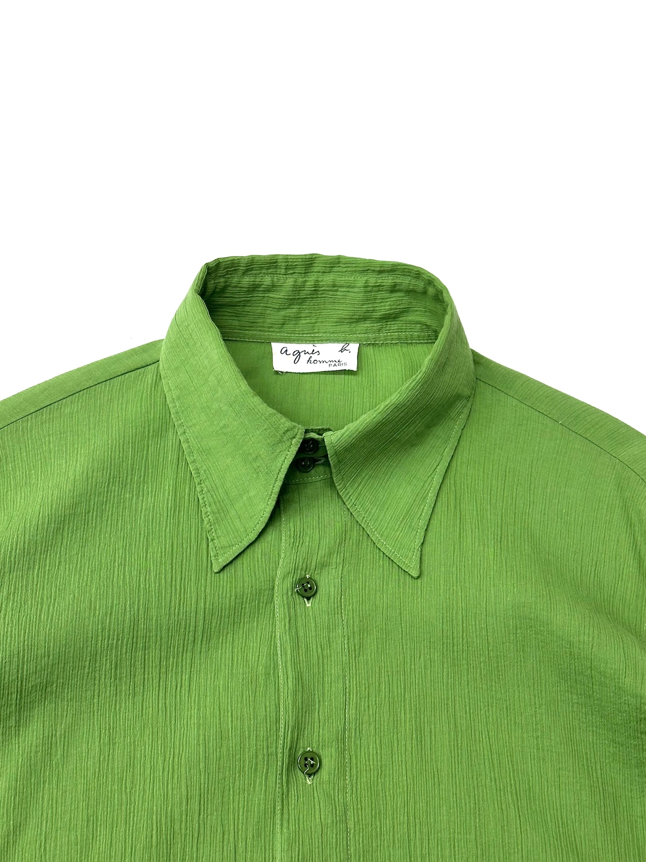 c90's AGNES B. HOMME Paris_Green Crape Slim_Fit SH