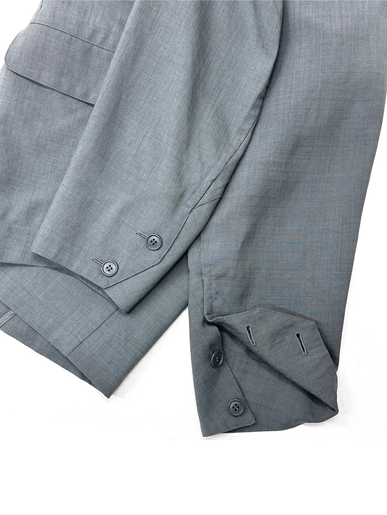 マッシモオスティの服なんかではよく引用されていました、2枚袖の内袖を先細りに縮小するウエスタンカットの構成と、その線の流れを汲みながら発展させたカフデザイン。