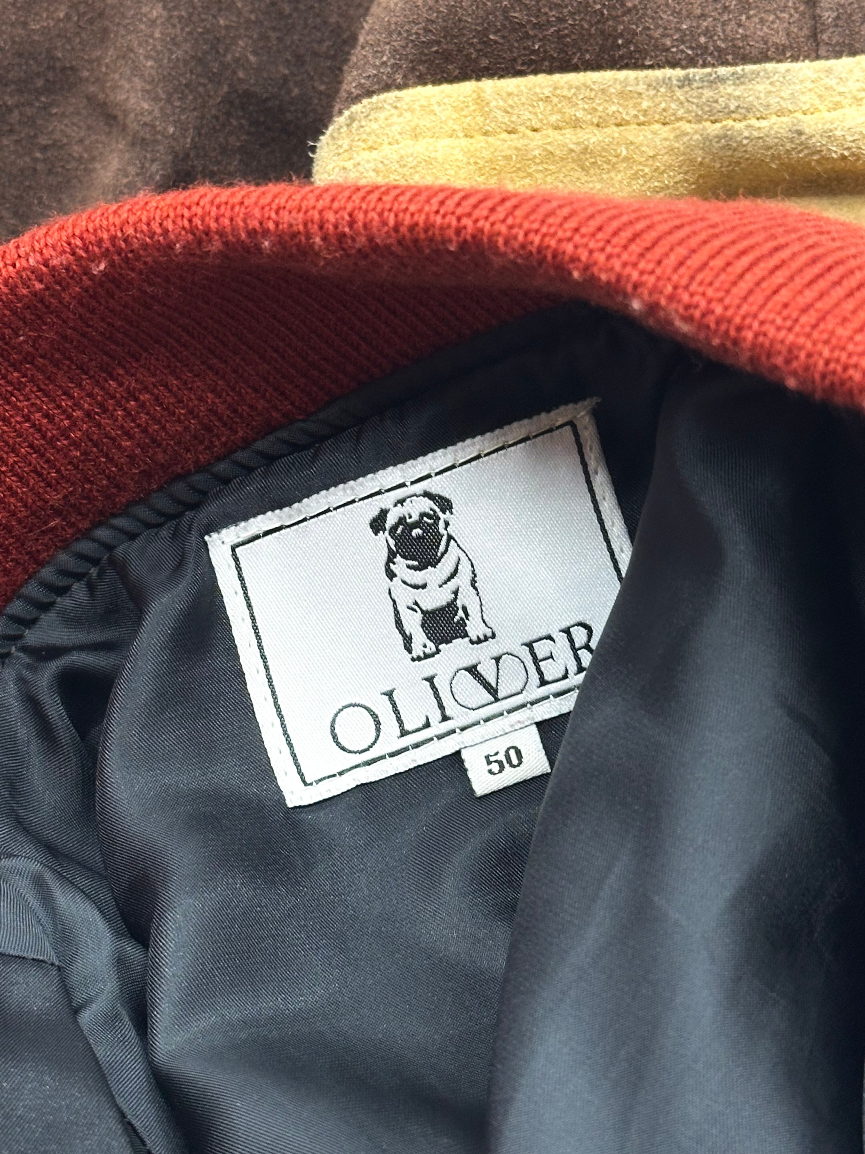 c80's OLIVER VALENTINO Color Switched Full_Leather Varsity JKT
