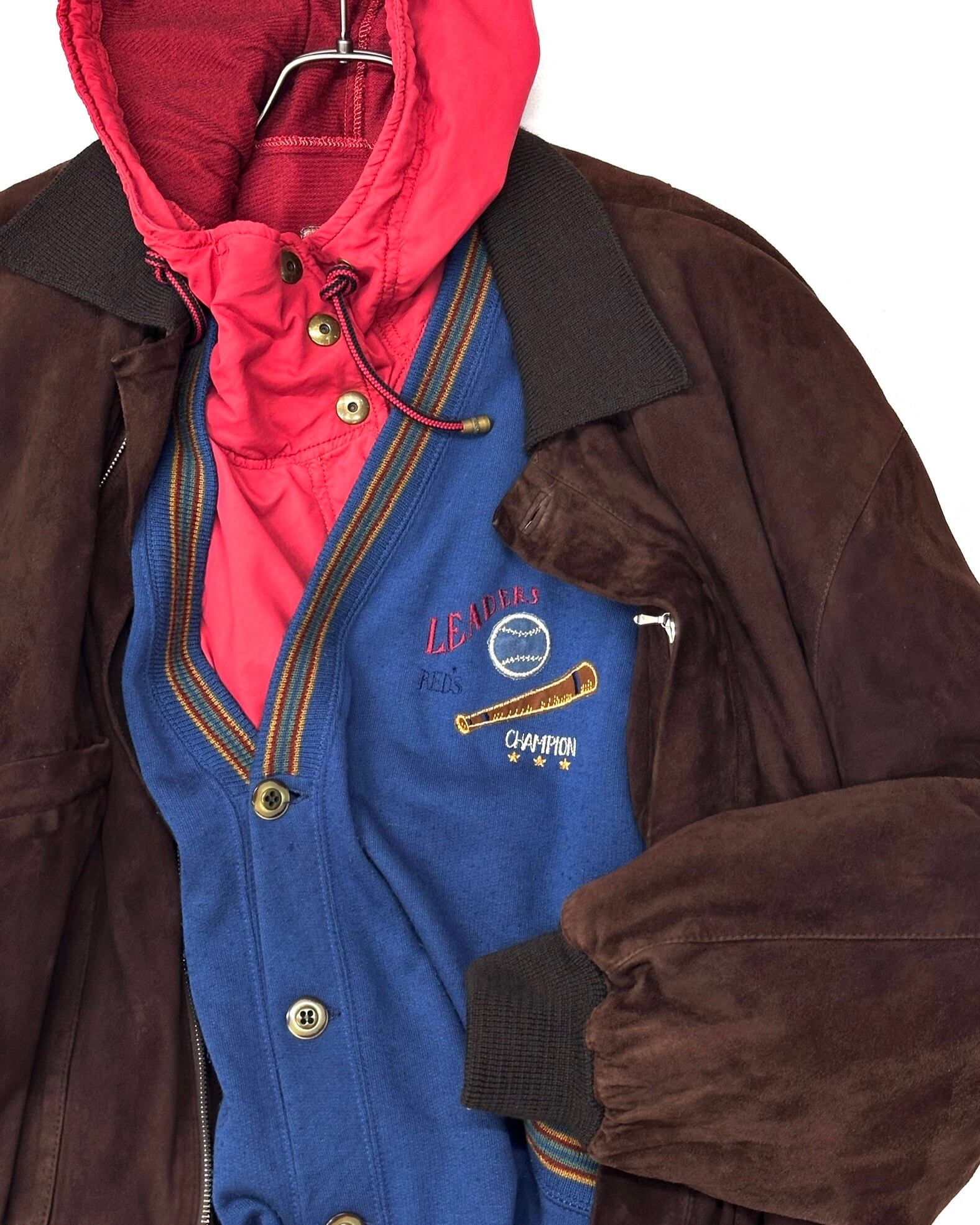 1980's DRIVER Baseball-Motif Milky-Navy Sw. Cardigan