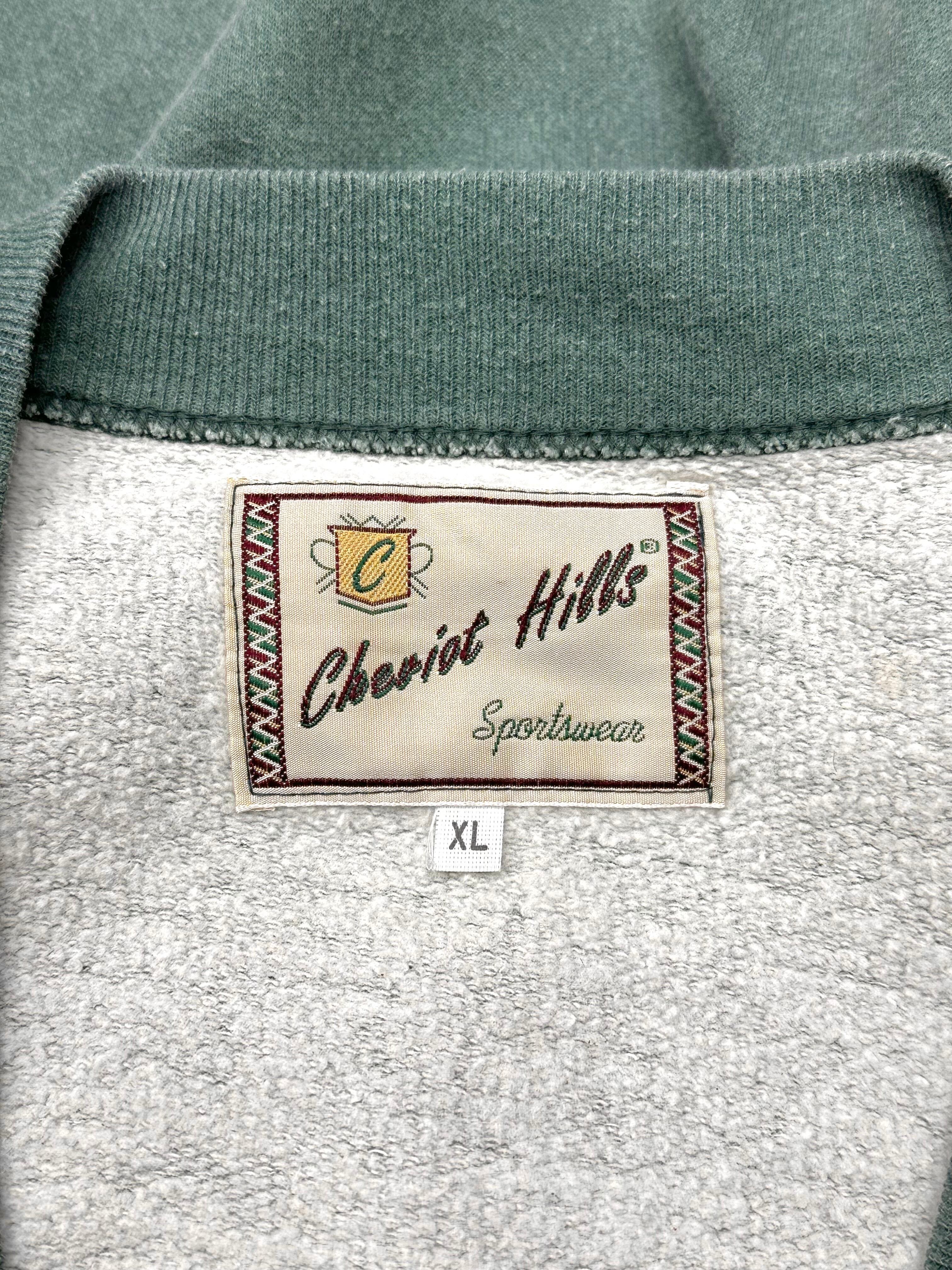 1980's CHEVIOT HILLS Pile_Embroidery Green Sweat Cardigan