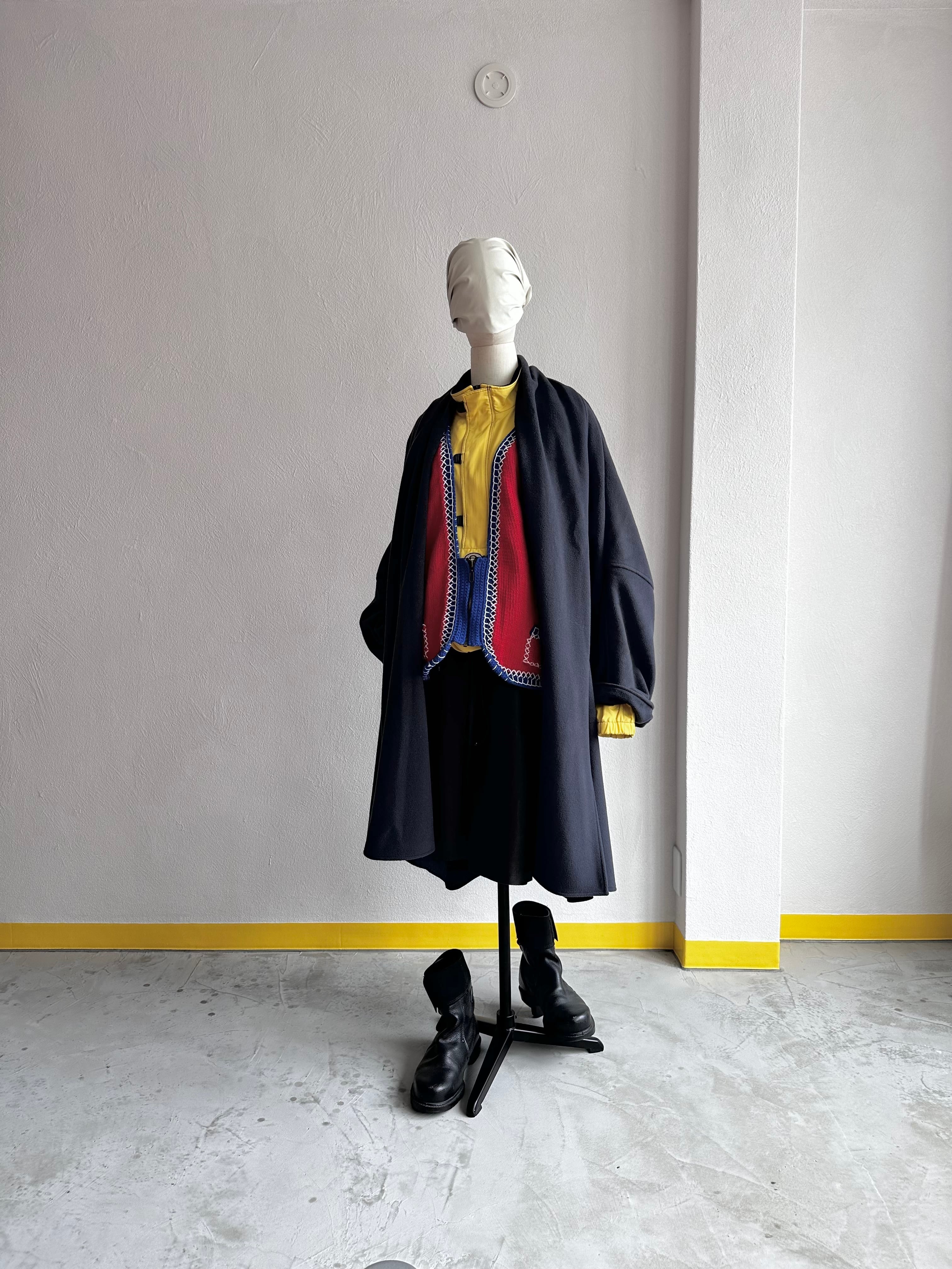 イタリアはボローニャの老舗ハイファッション・レーベル「Les Copains」より、この時代にしか生まれない変則デザインコート。