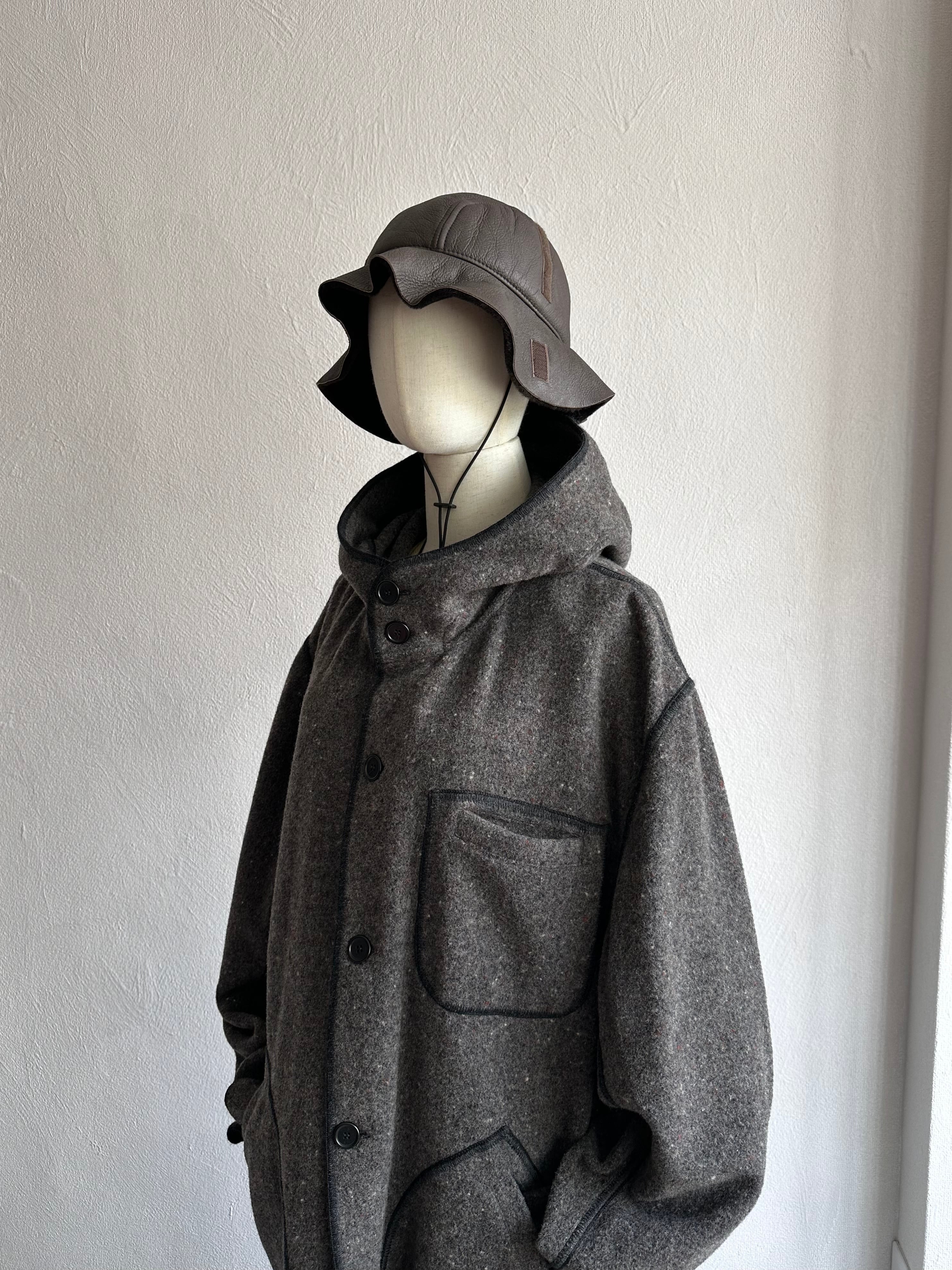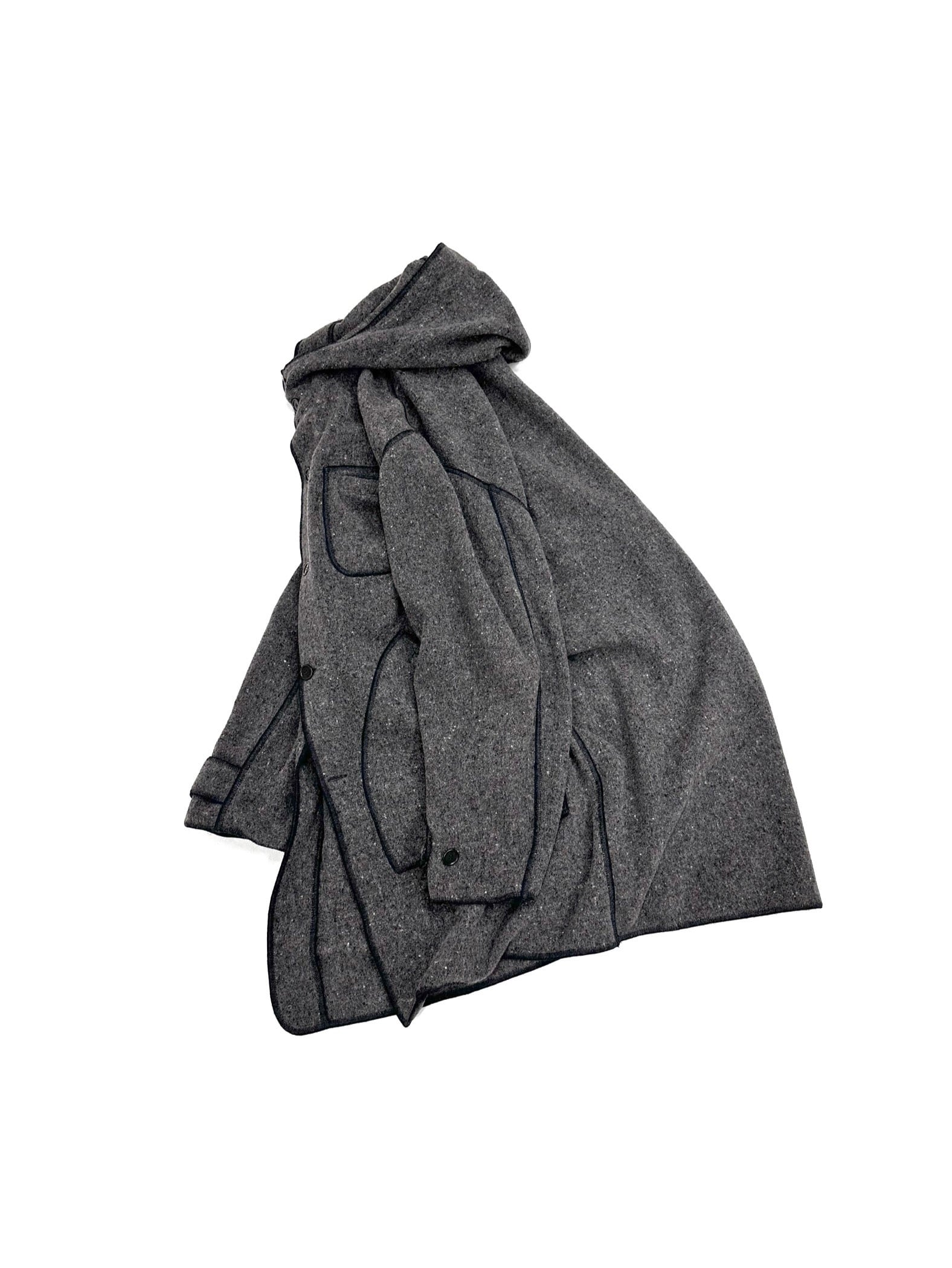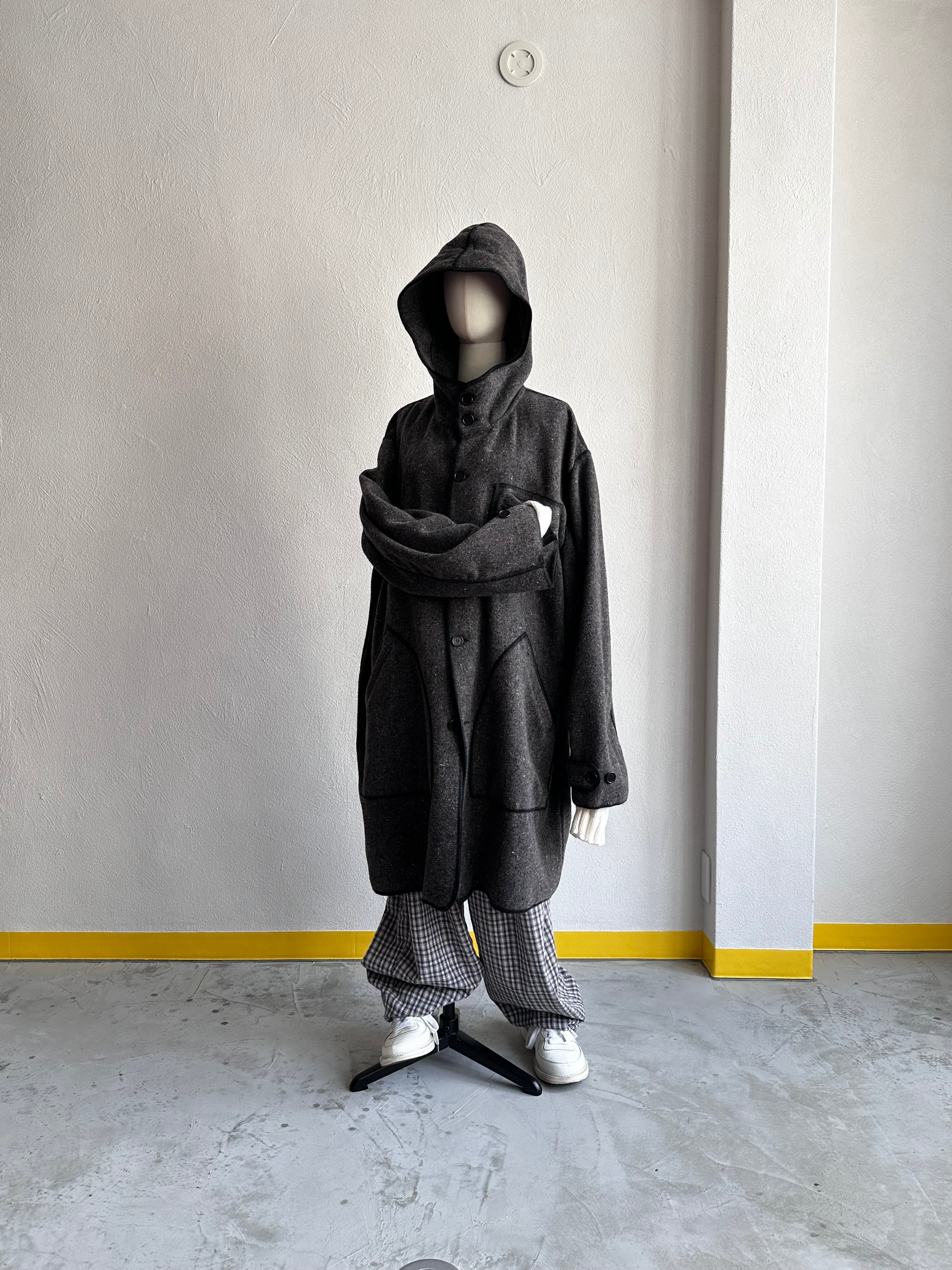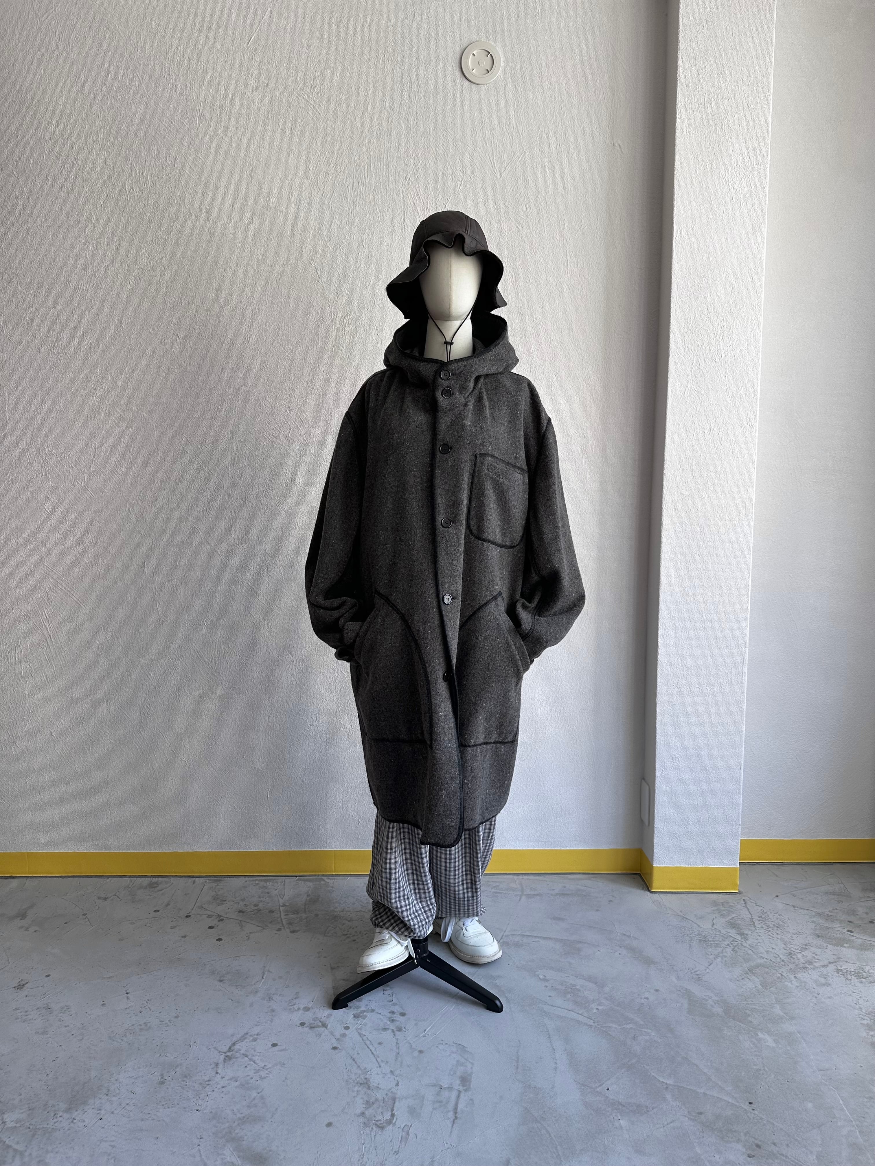 それをオーバーロックのみで、裏地を一切使わず仕立てたオーバーサイズのコート。
