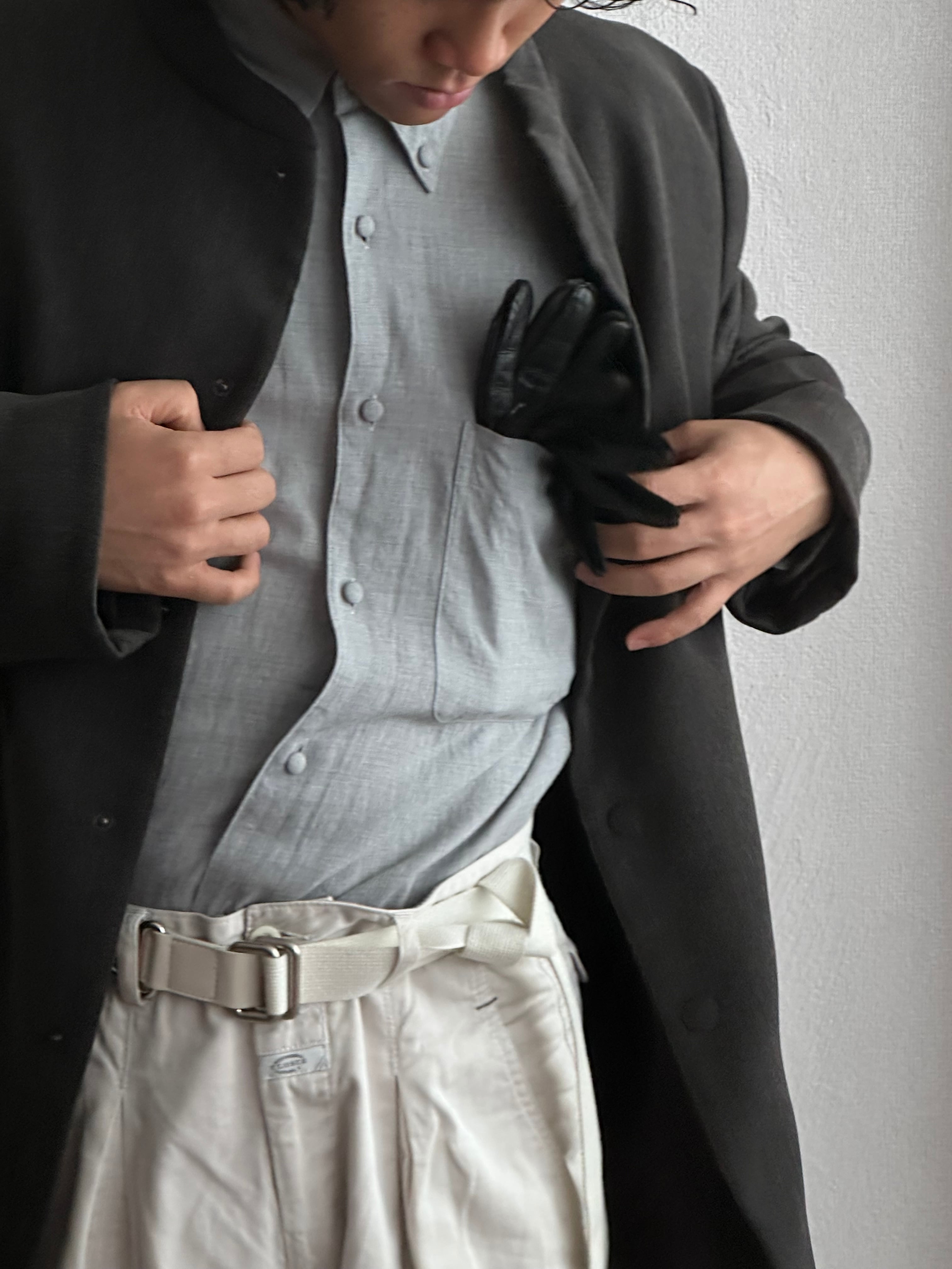 もう少しソリッドに振り切るとジルサンダーっぽさが出てくるのでしょうけれど、生地に宿っている情緒と絞り過ぎないボディバランスがアルマーニとしての色味を完全なものにしています。
