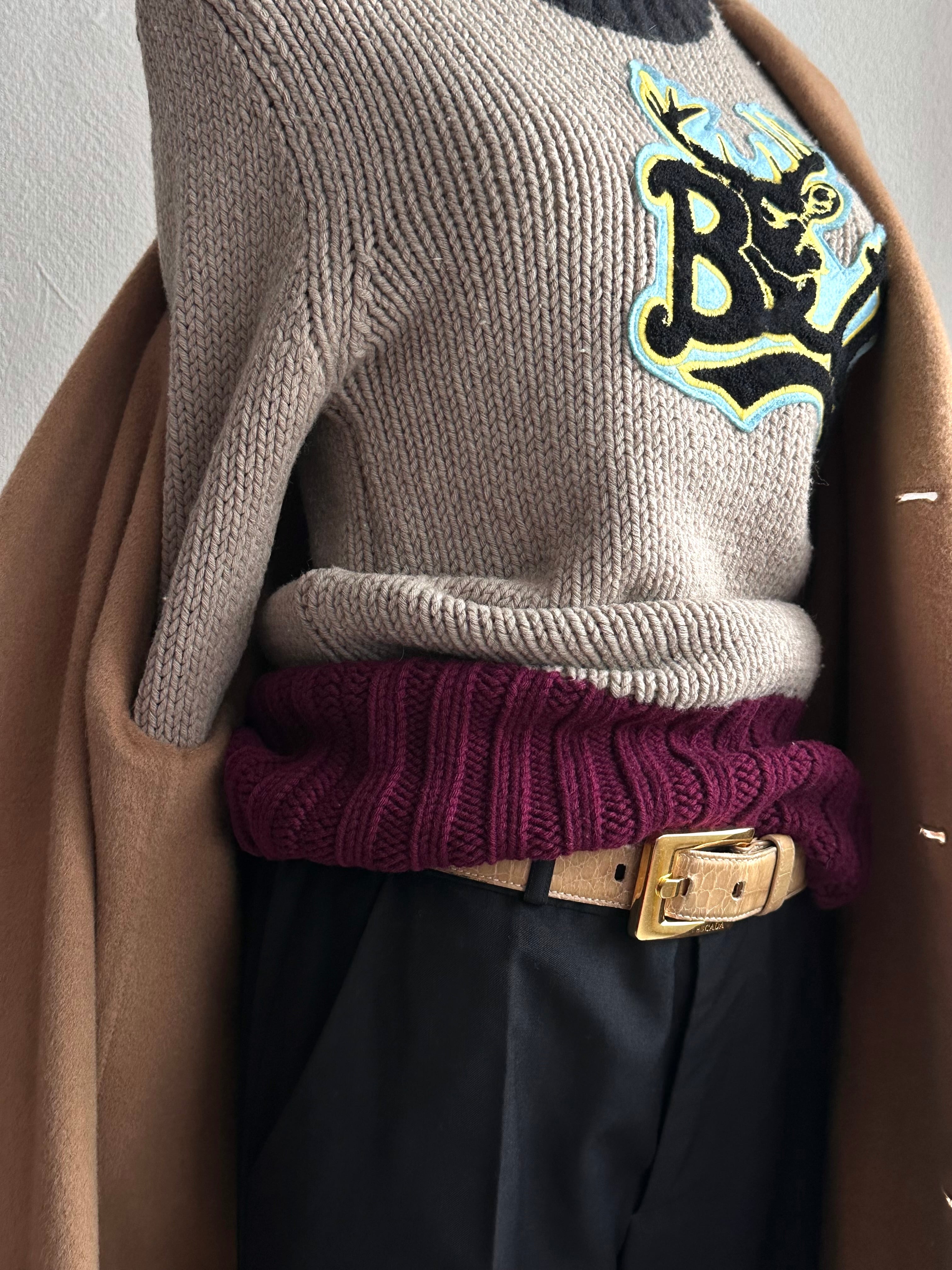 これらは元を辿ると、母のクローゼットから引っ張り出した質の良いセーターをリメイクして着るようなセンス。