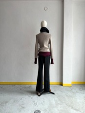 チャンキーニットをコンパクトに着る上で必ず直面する脇下のゴワ付き、これをテーラー出身のステラならではの感覚で取り払っています。