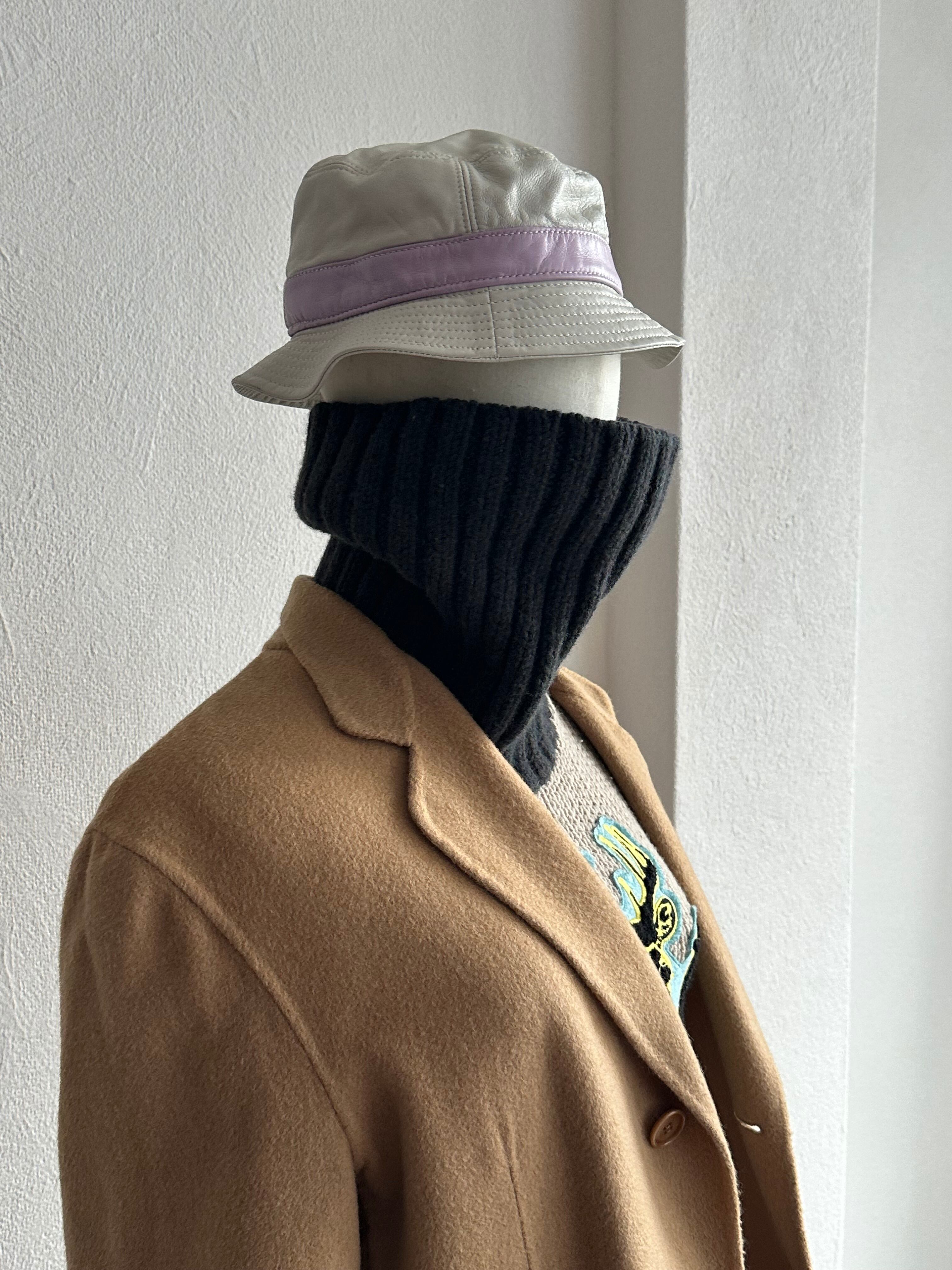 これはチャンキーニットを異様にコンパクトに編み立てて設計されたタートルネックニットです。