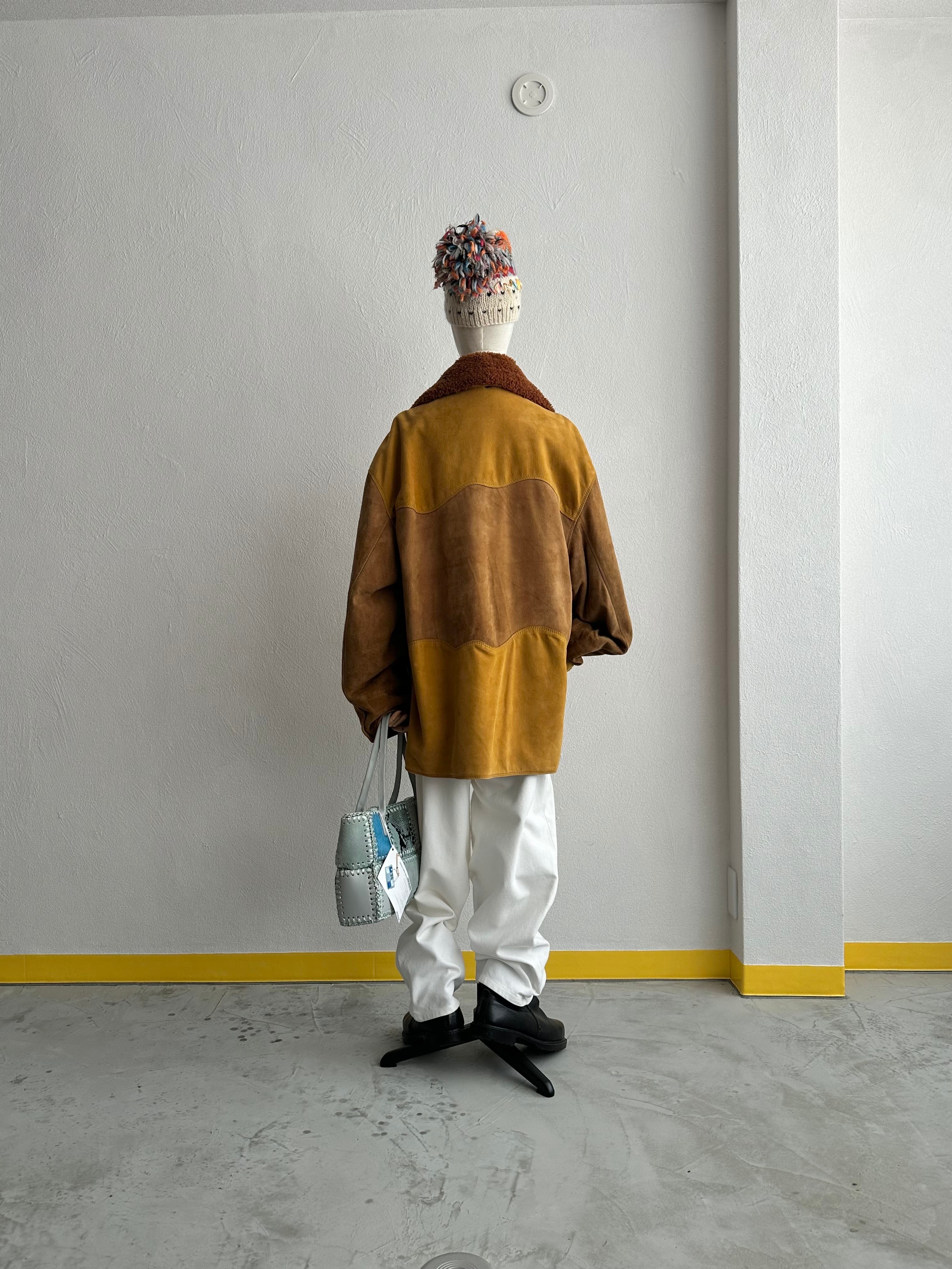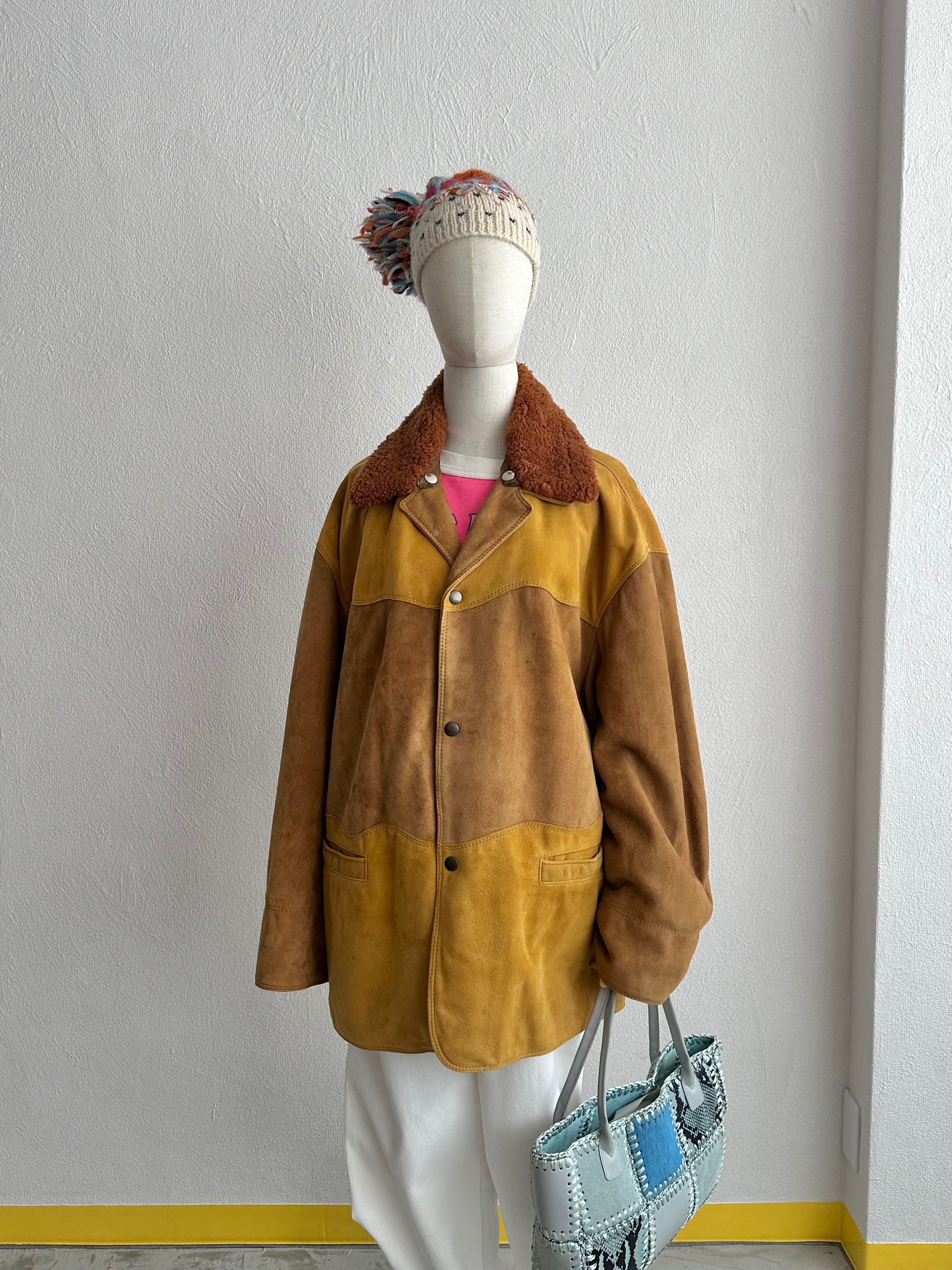 c80's EURO VINTAGE Yellow Switched Suede Leather JKT