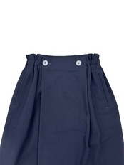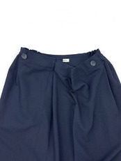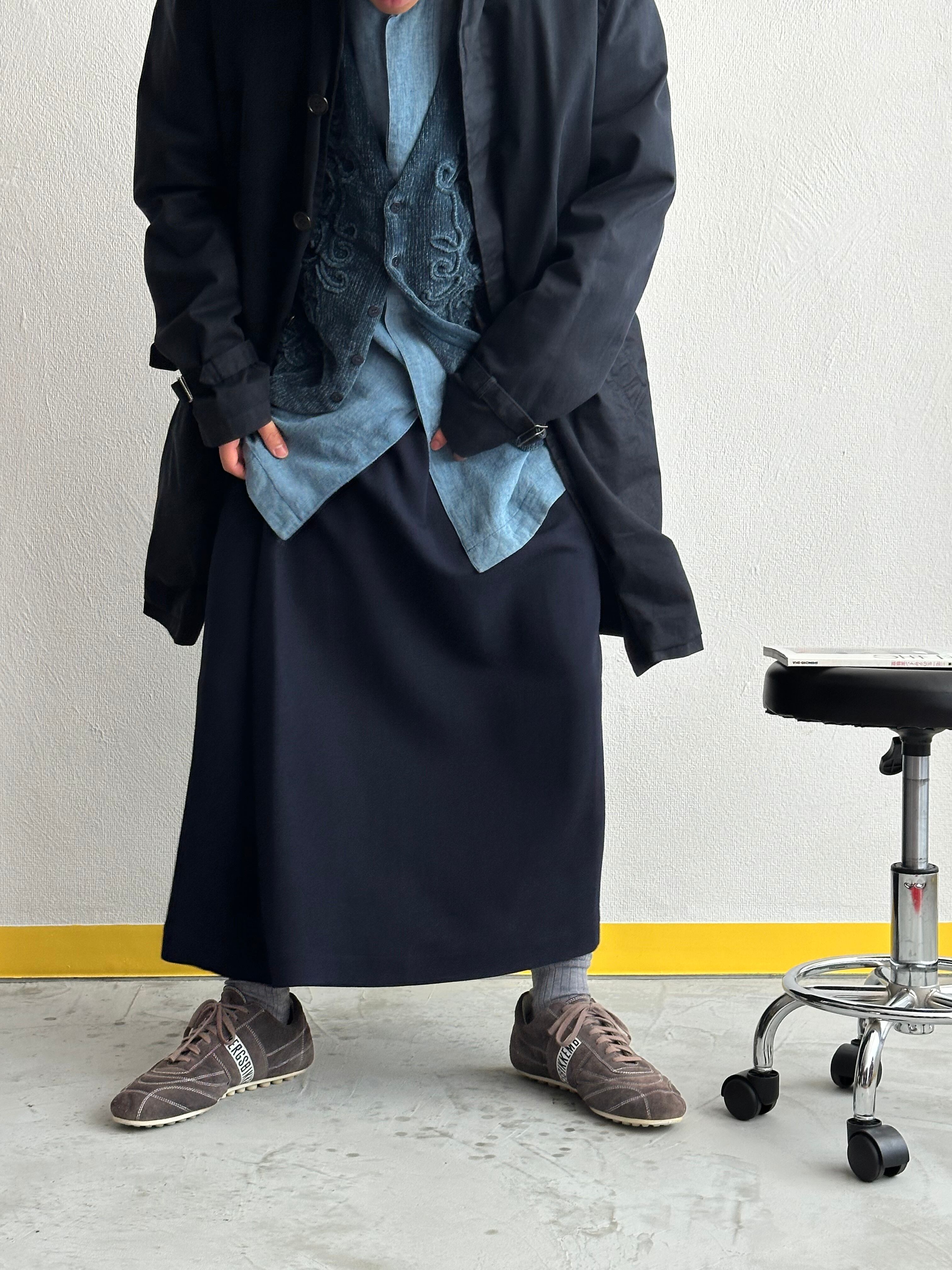 ウエストでかなりの分量が畳まれているので見た目よりも裾幅は広がっていて歩き易いってのもグッドデザイン。
