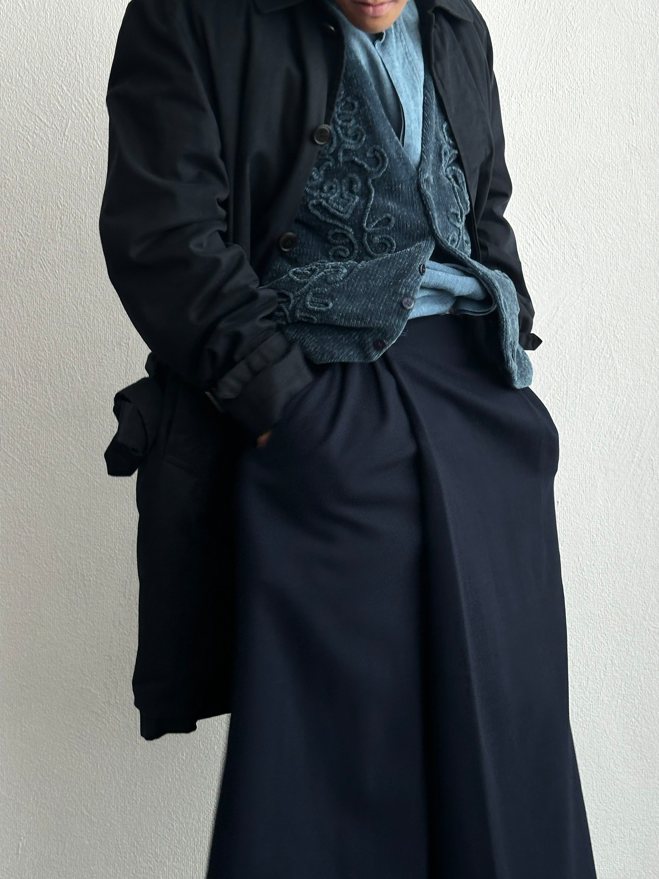 和服そのまんまのロングワンピース(又はコート)でこれをやると大変だけど、洋服システムならではのセパレートによって成立しています。