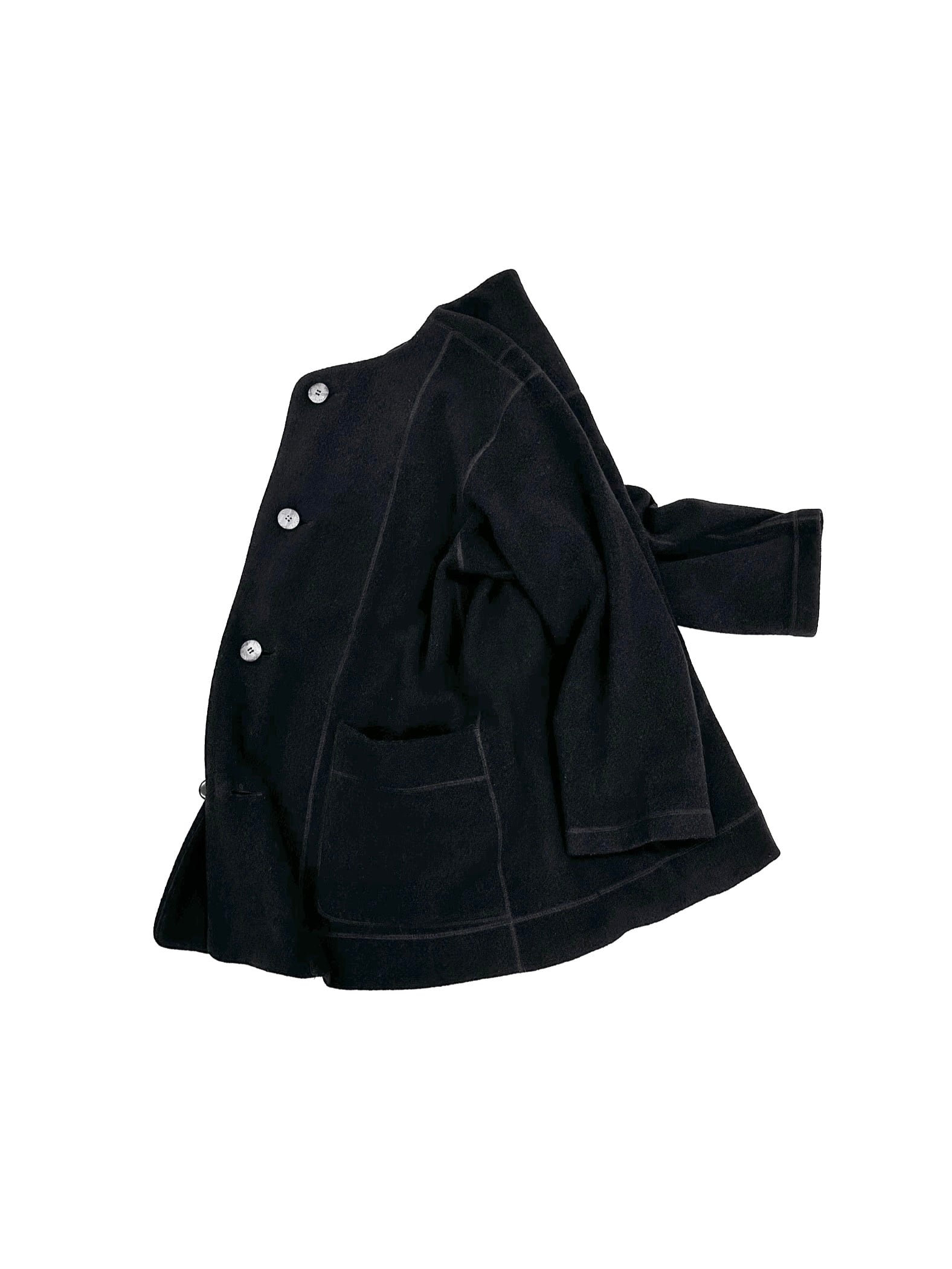 個人的には、印象も実際の質量も重くなるブラックのコートにおいて、こうしたディテールデザインでのソフィスティケートは非常に重要と感じています。