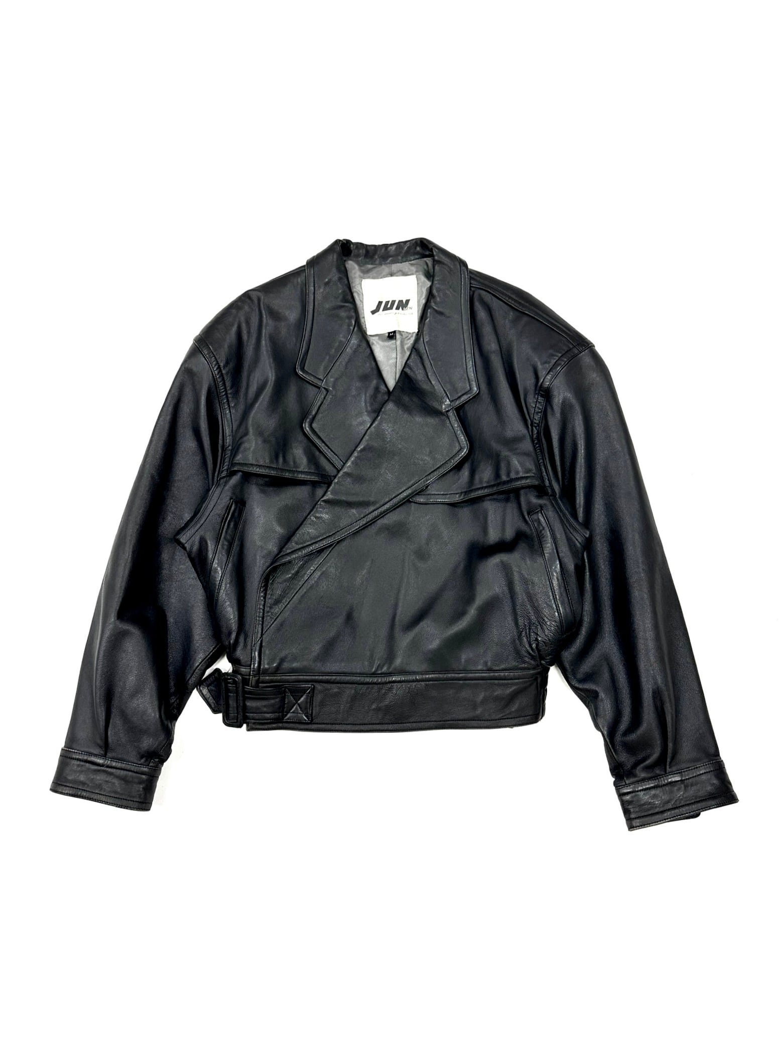 1980's JUNMEN Deep-Cross-Front Leather “Ike-JKT”