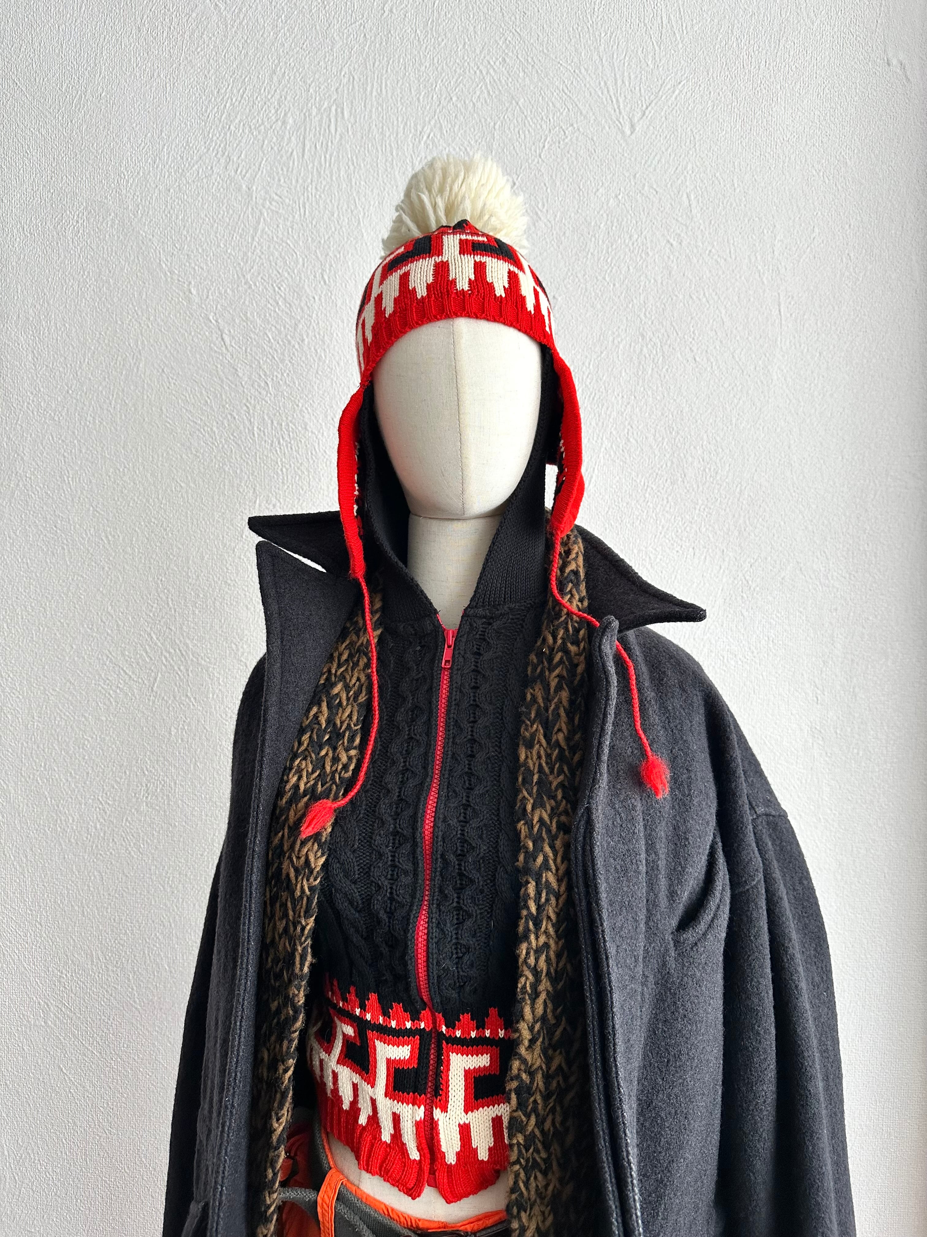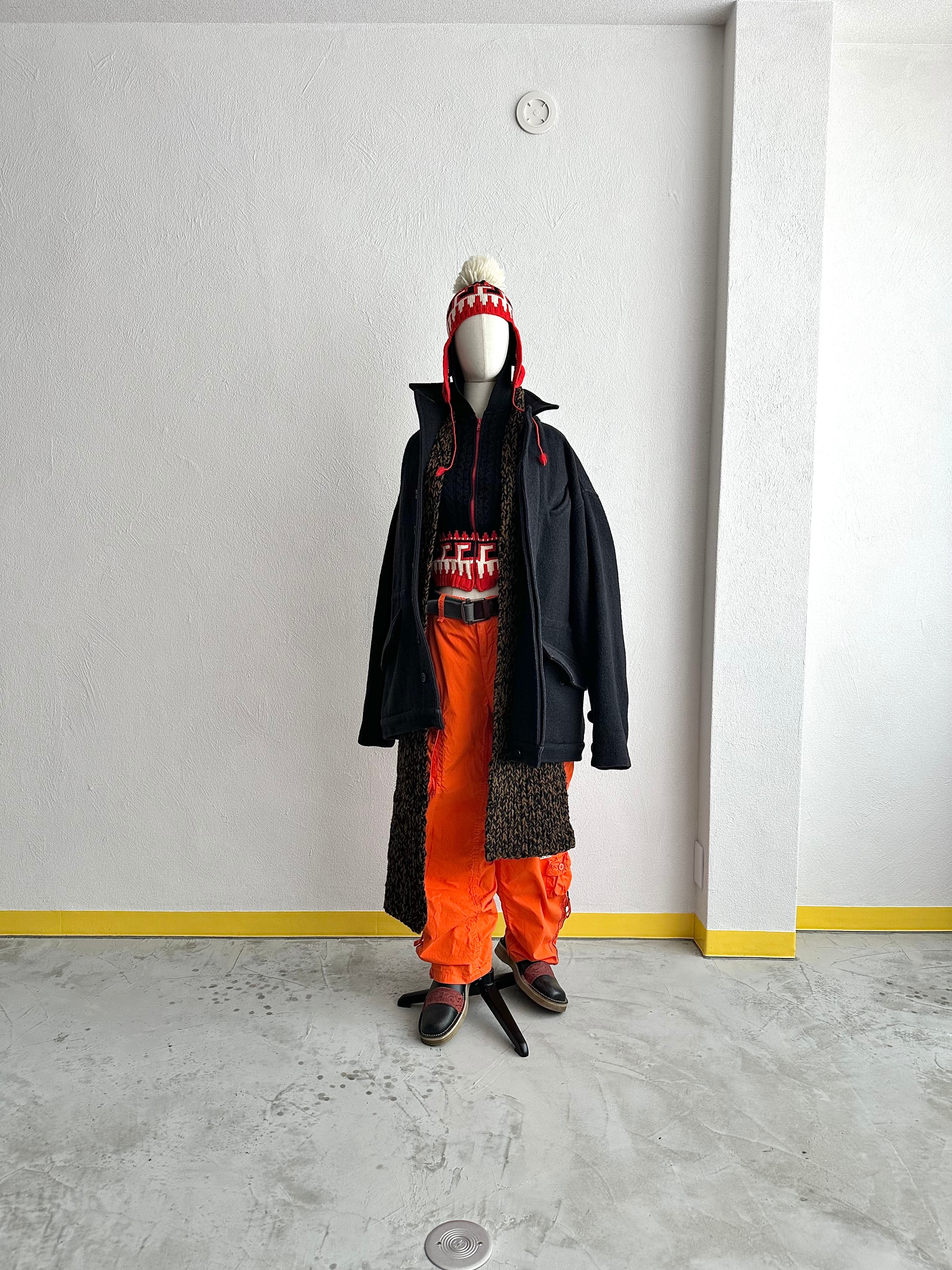 時にアフリカ・モチーフだったり、エスニック・テイストだったり、そしてこのように田舎くさいチャンキーニットだったり。