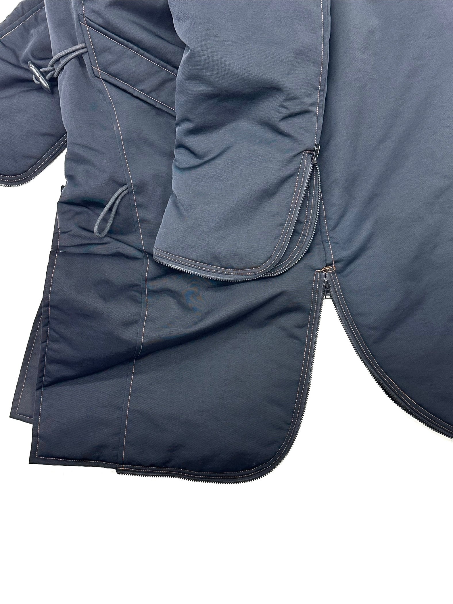 袖口とボディヘムにはその入り口を閉め切ってしまうような奇特なジップデザイン。