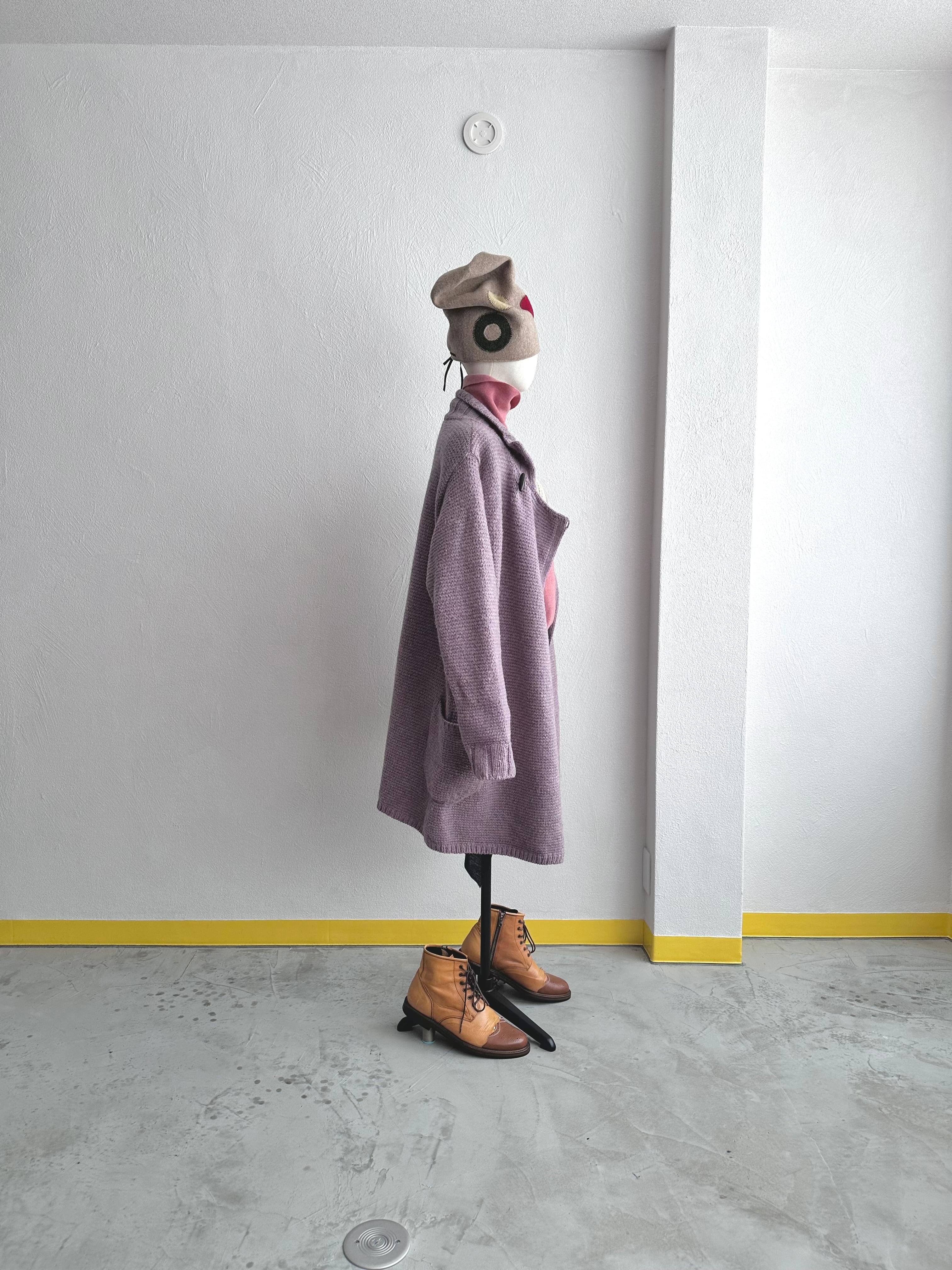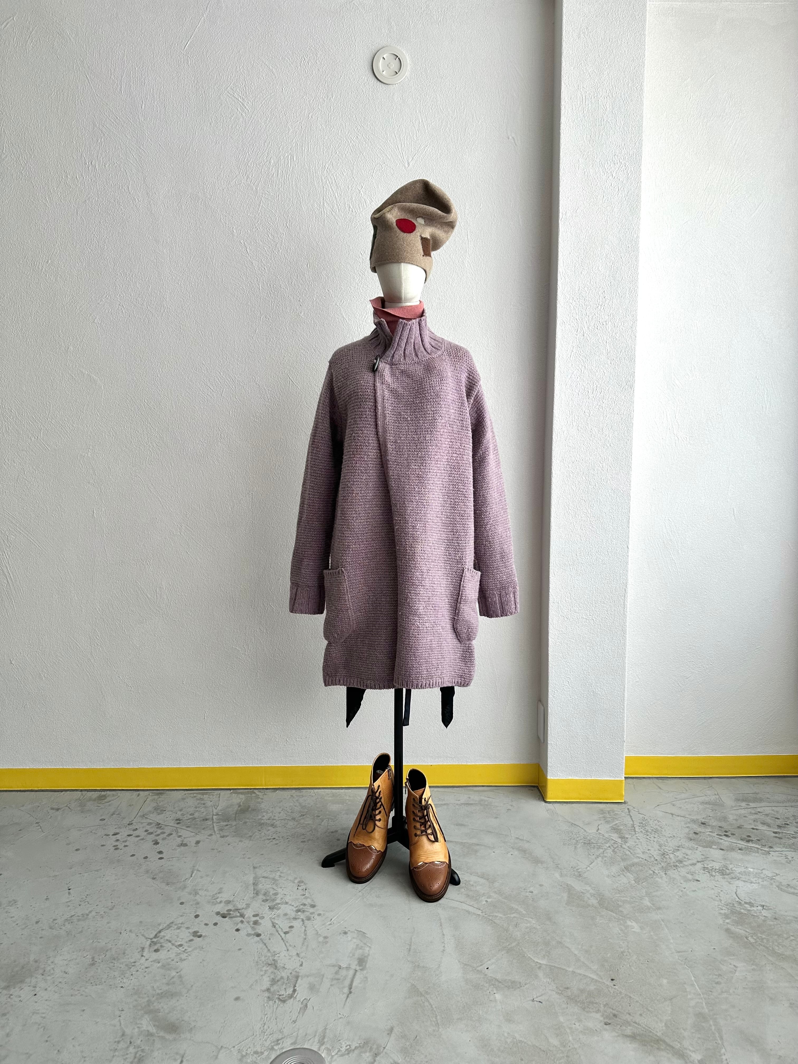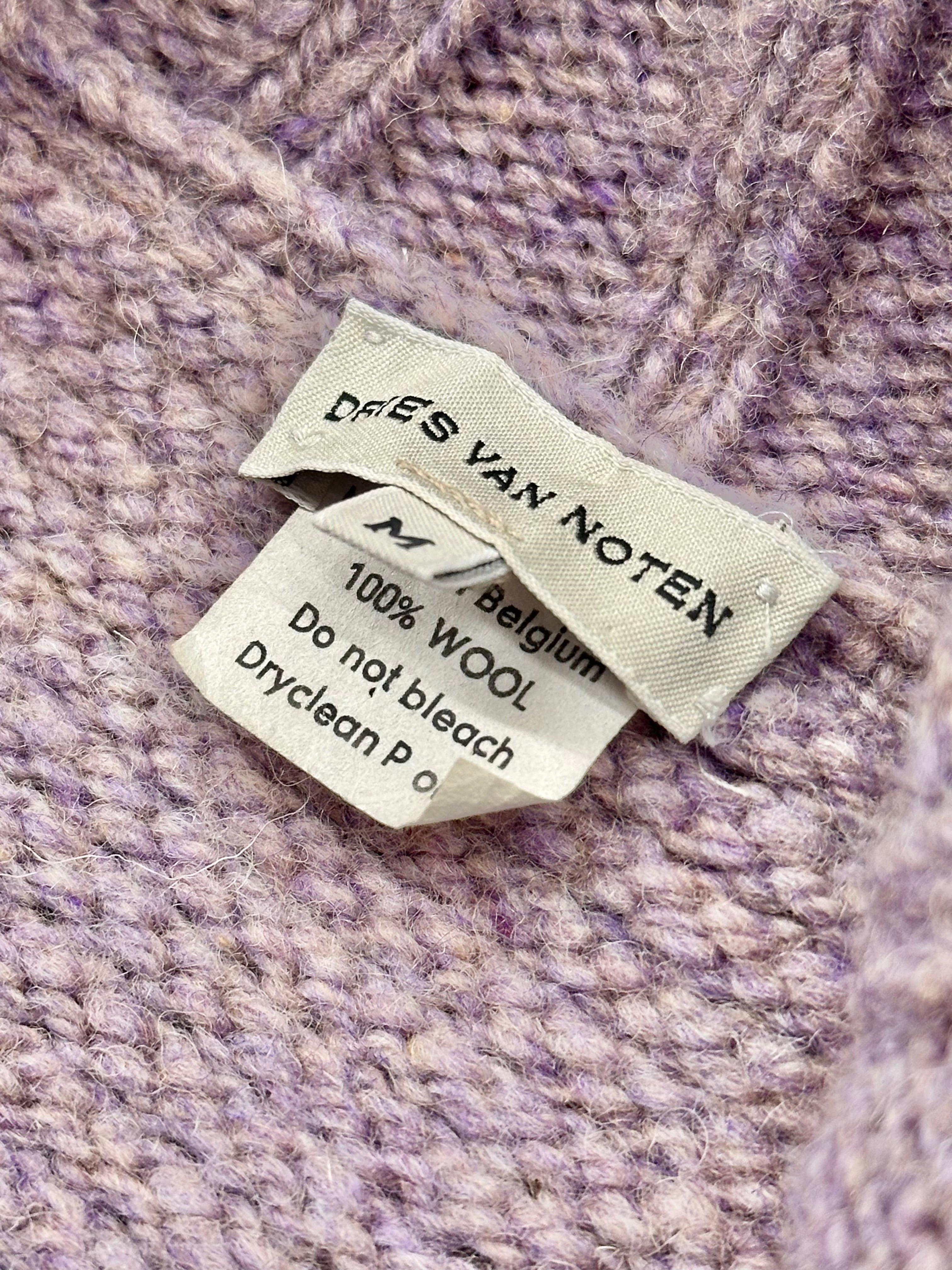 DRIES VAN NOTEN (Y2K) Hazy-Pale-Purple Chunky Knit Coat