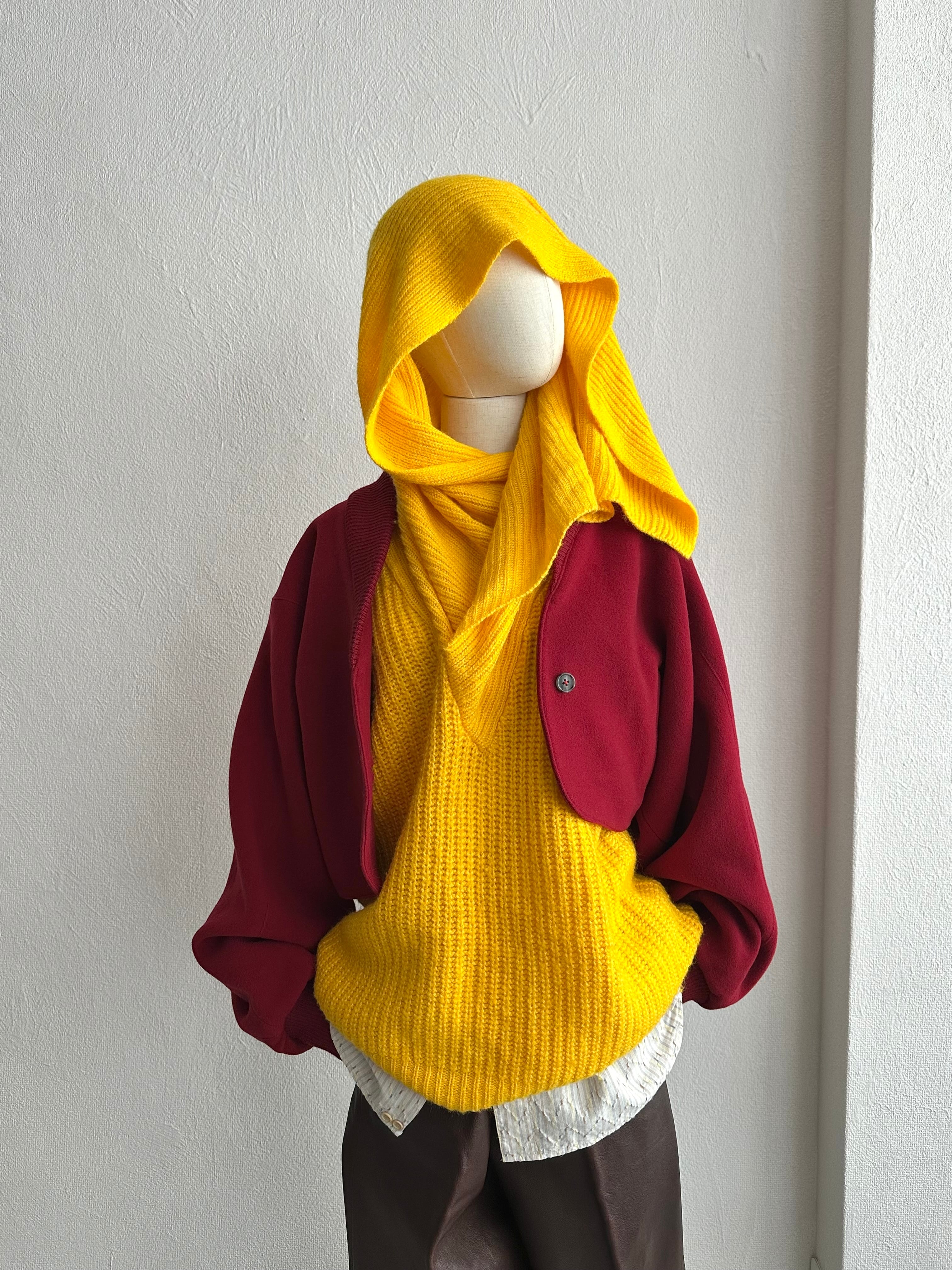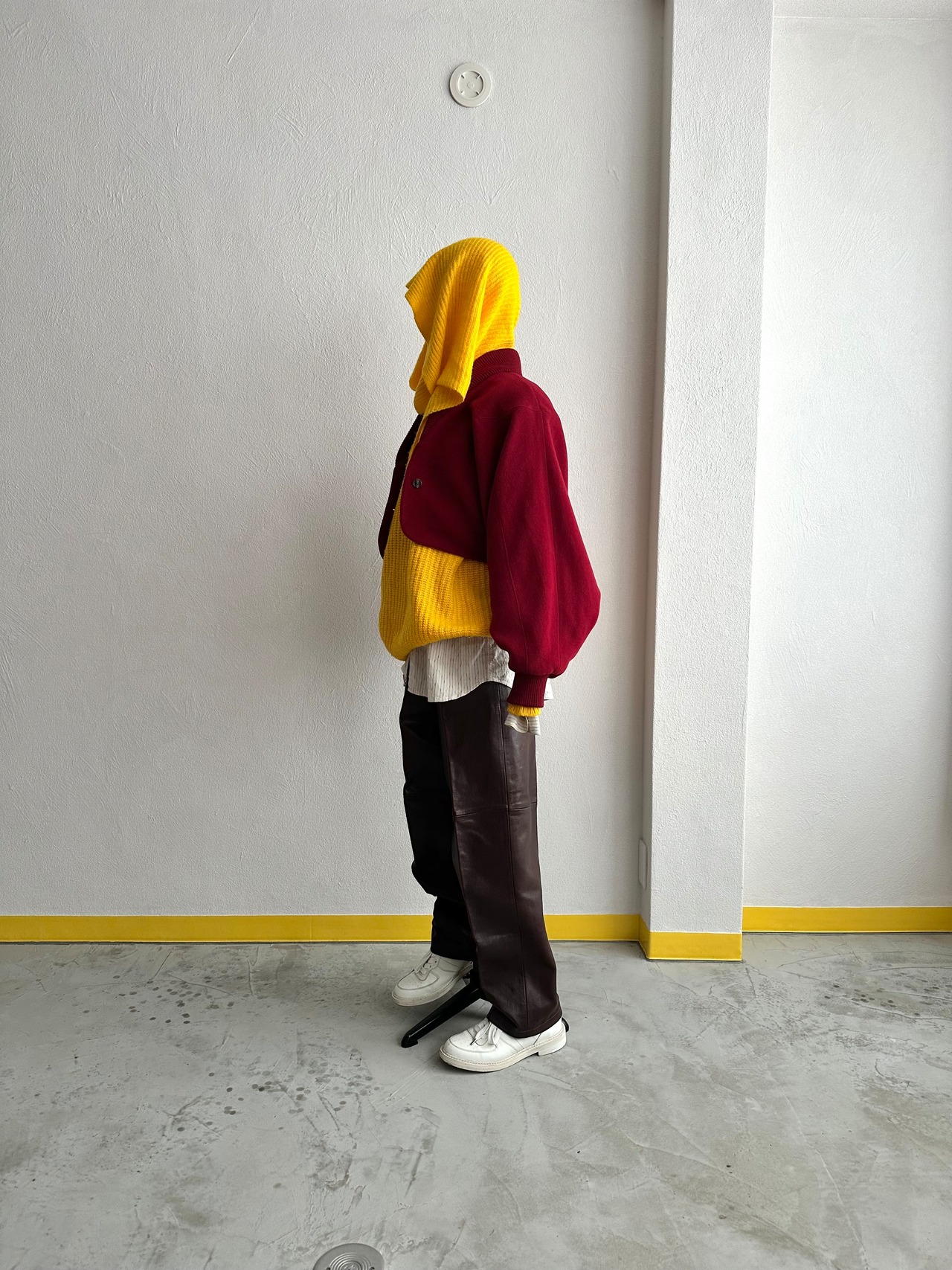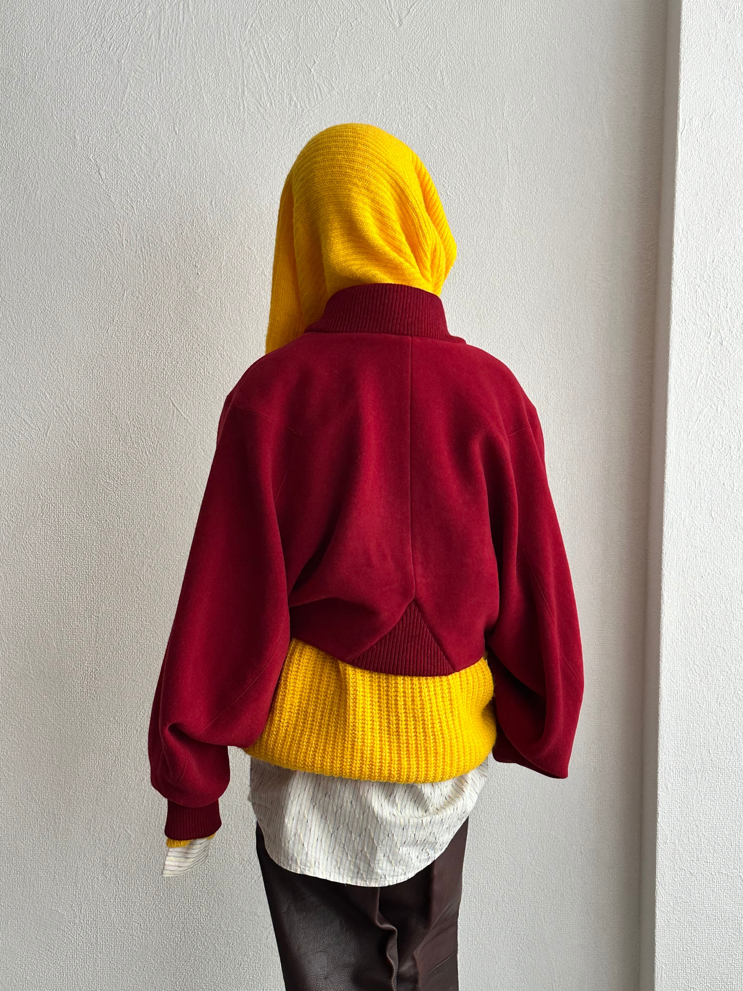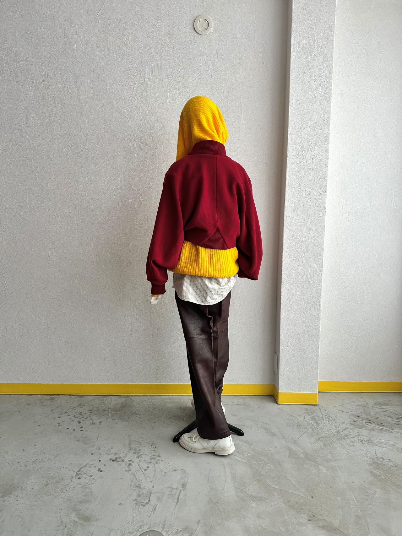 大袈裟なドルマンスリーブで作ったゆとりは袖口の強いリブカフスが全て受け止めてブラウジング。