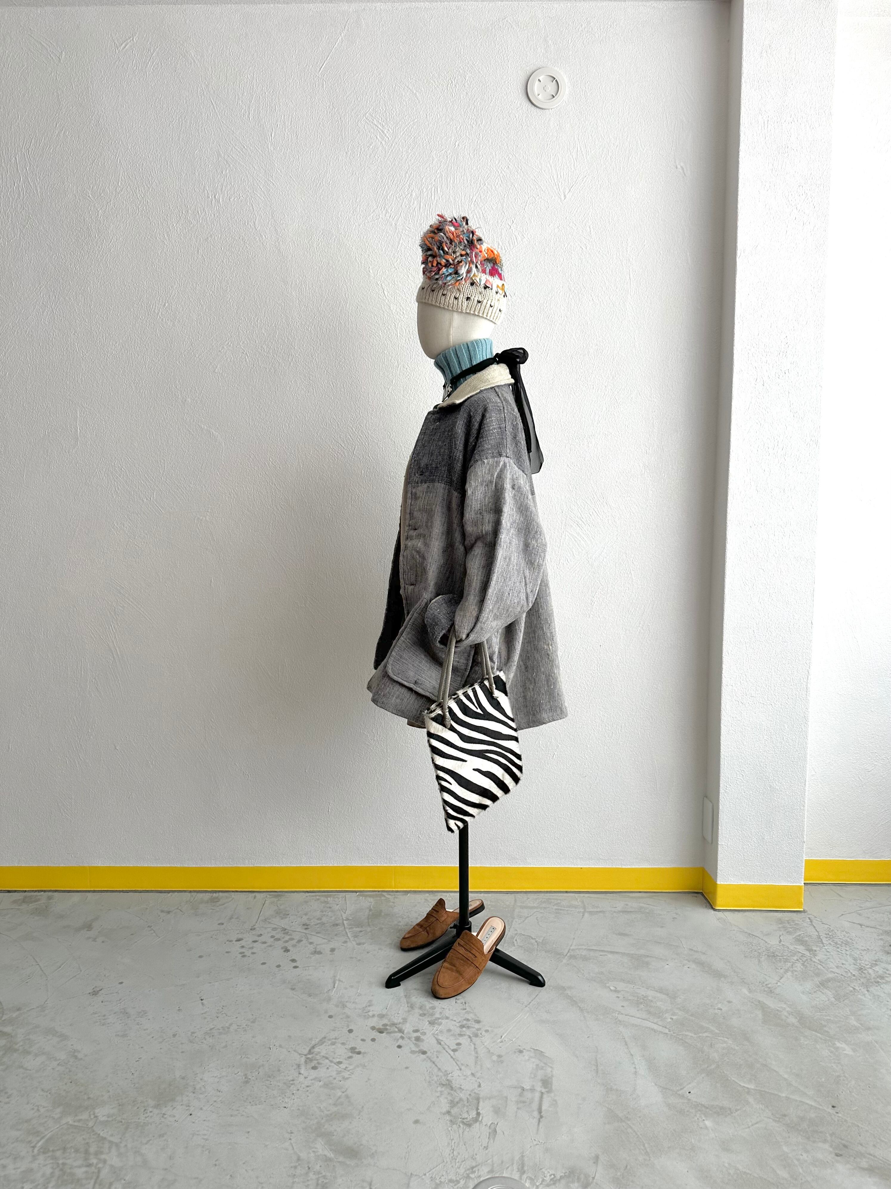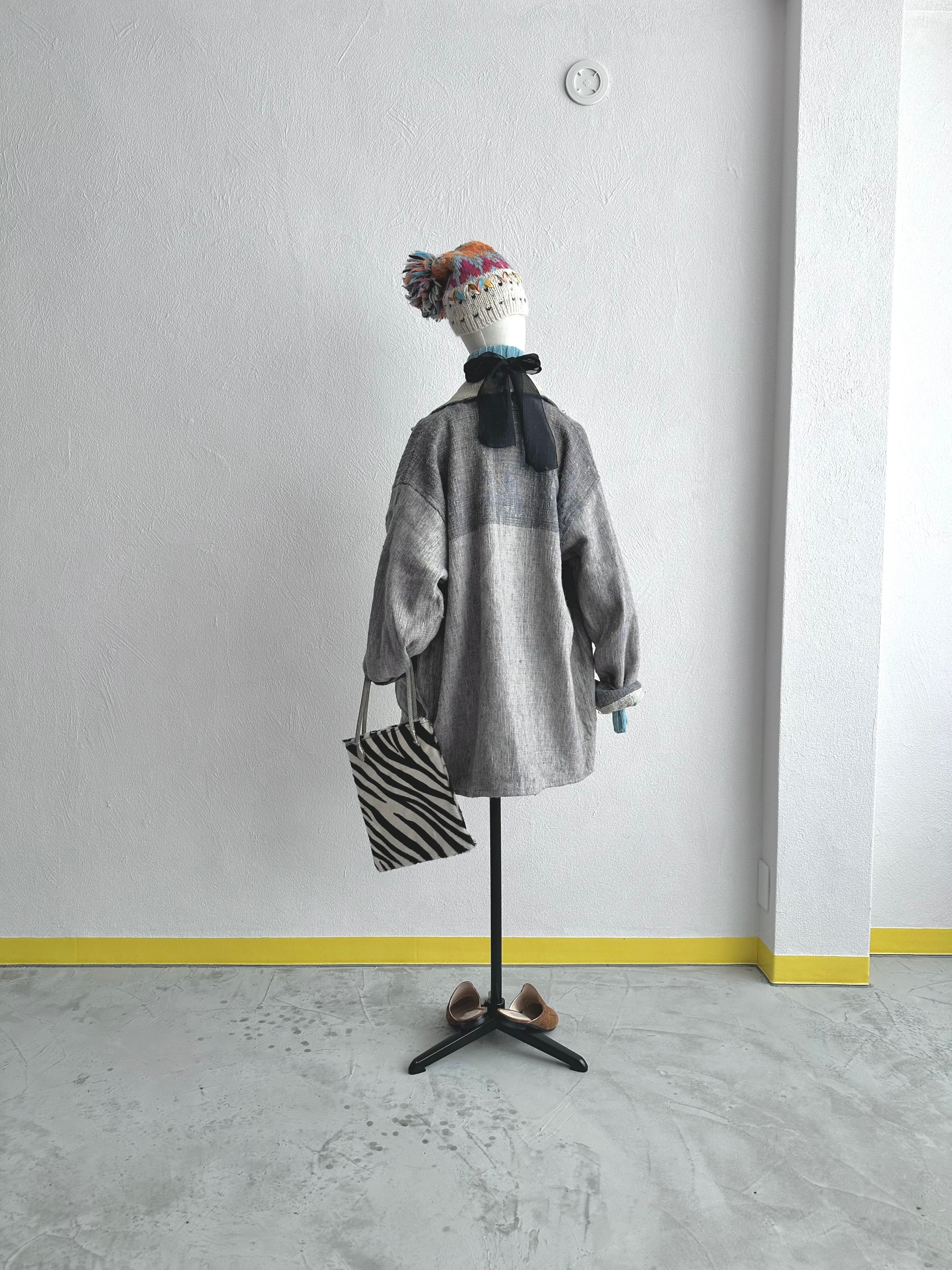もとより色味が不確定で斑らな紡毛をシャンブレー式に織り上げて生まれる色の濁りは、生地の手触りに呼応するように極めてオーガニック。