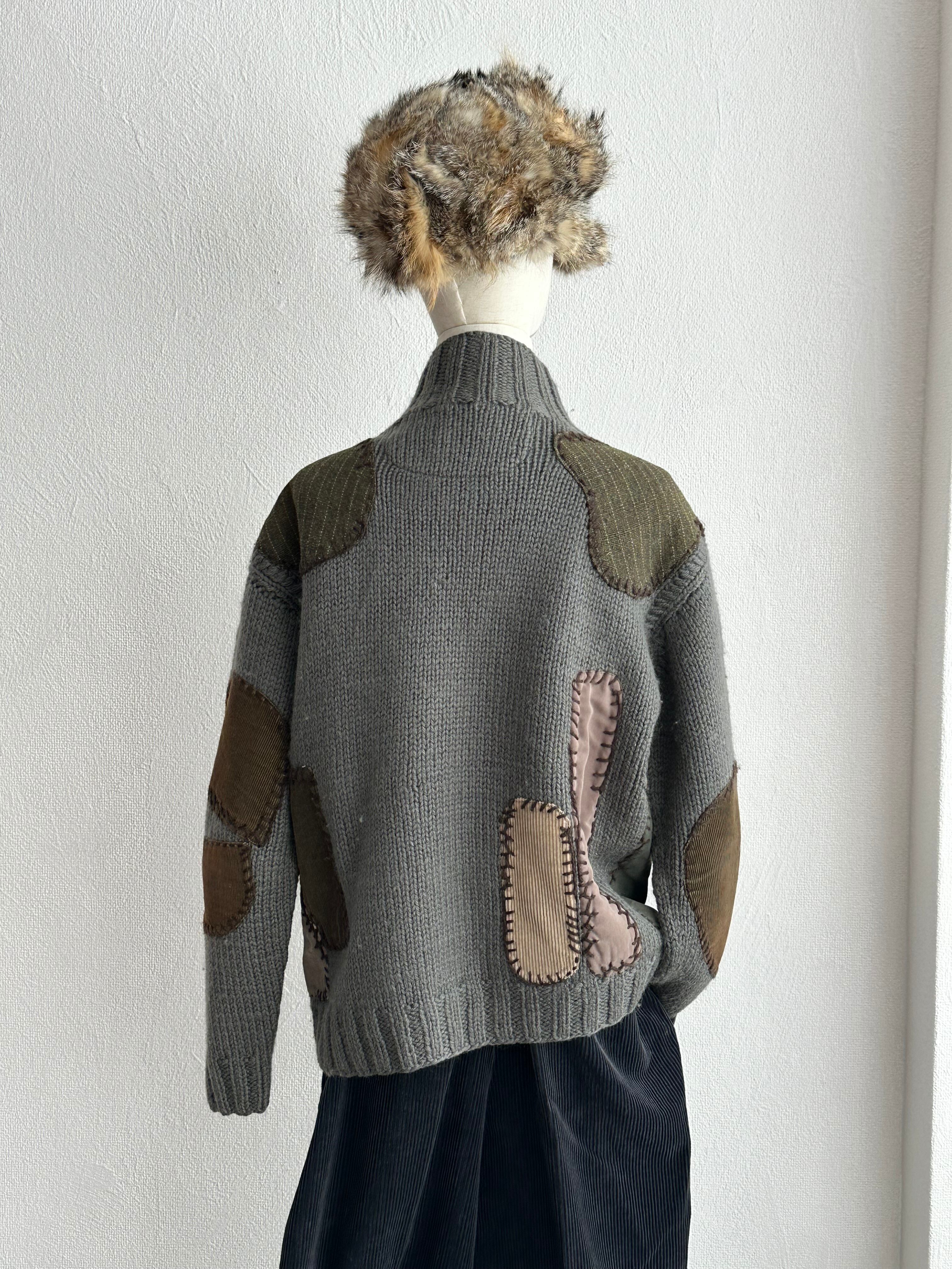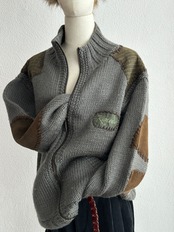 1990's KODODO Random Patch Design Knit JKT (Grey)
