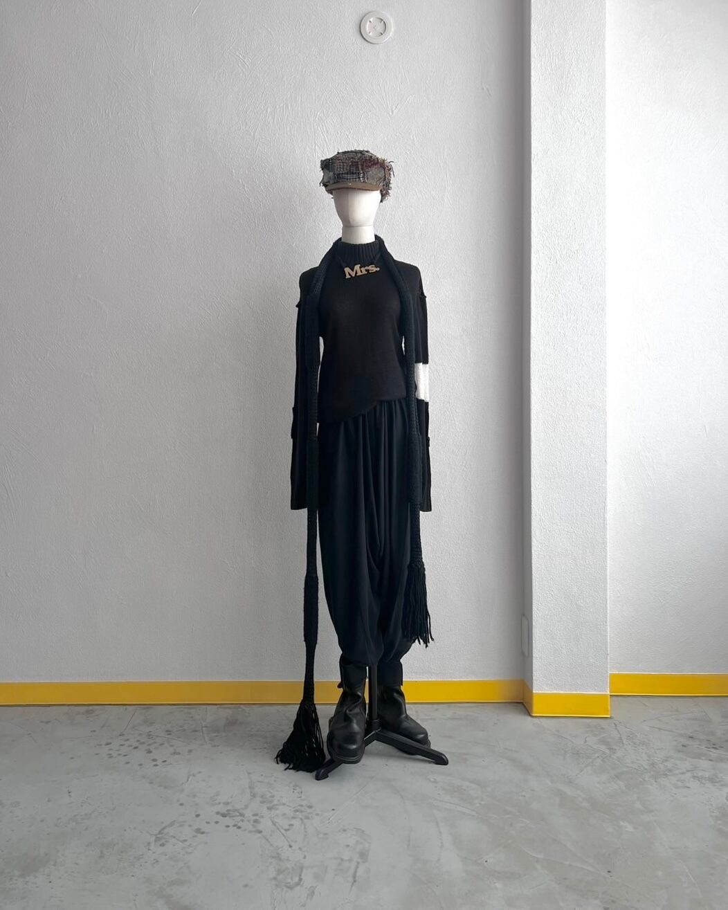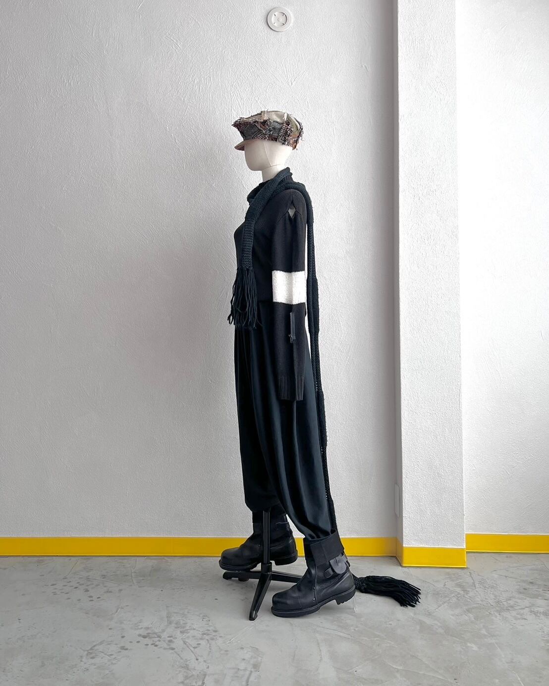 ジェンダーから解き放たれて獲得するフラットなドレープのパワー、これはメンズが男臭いブルゾンに合わせる時のスカート枠としても具合良く作用します。
