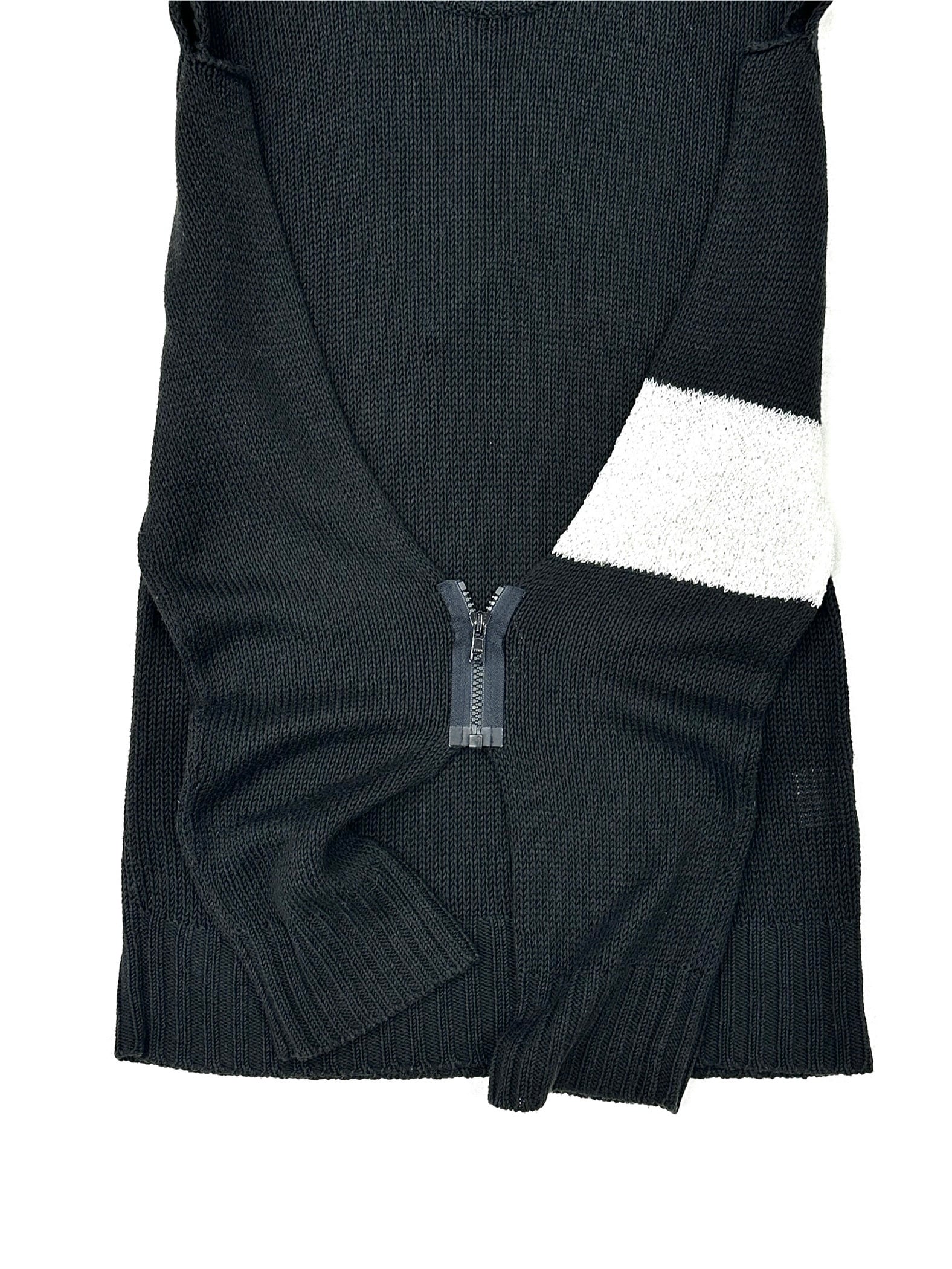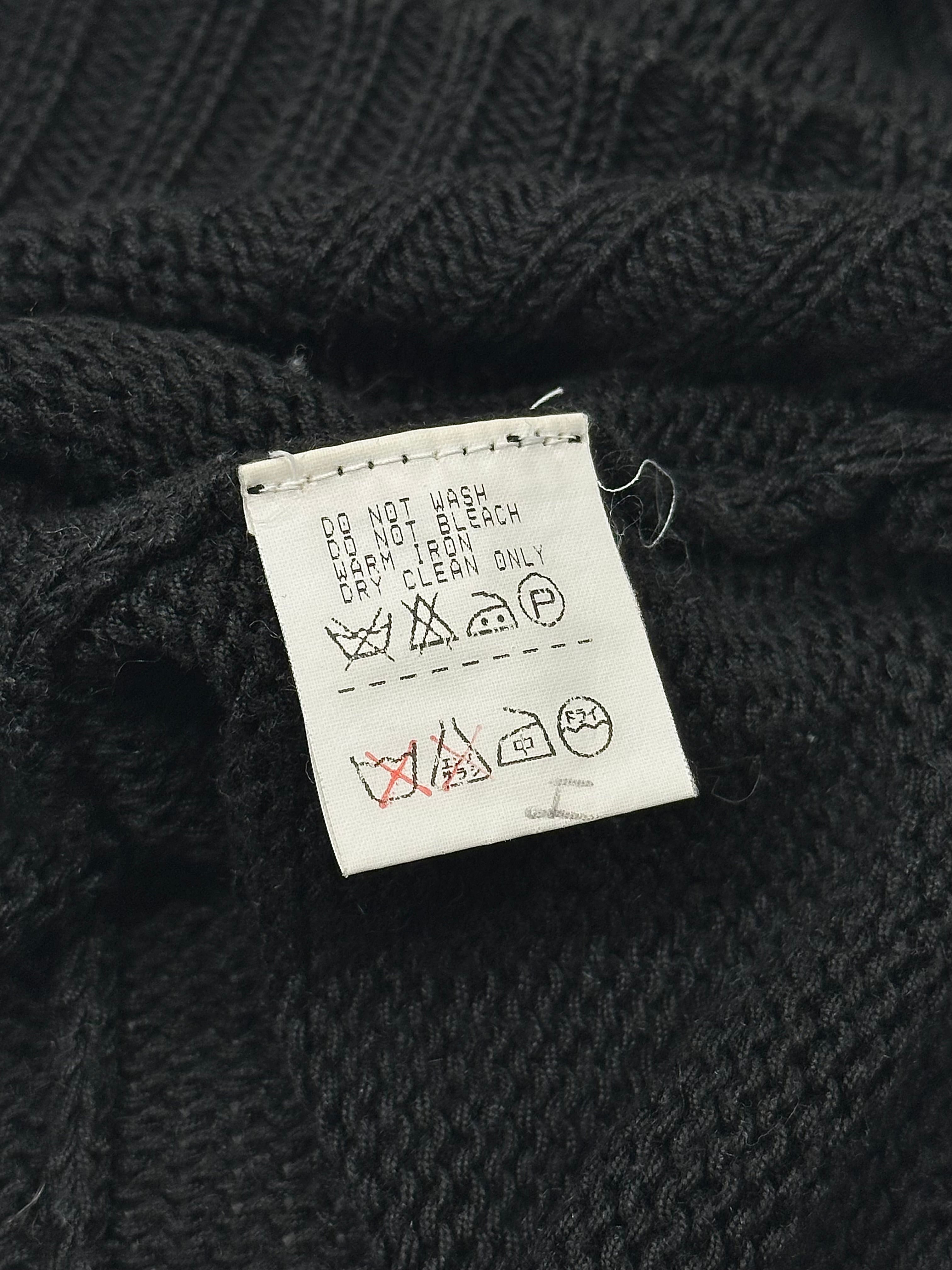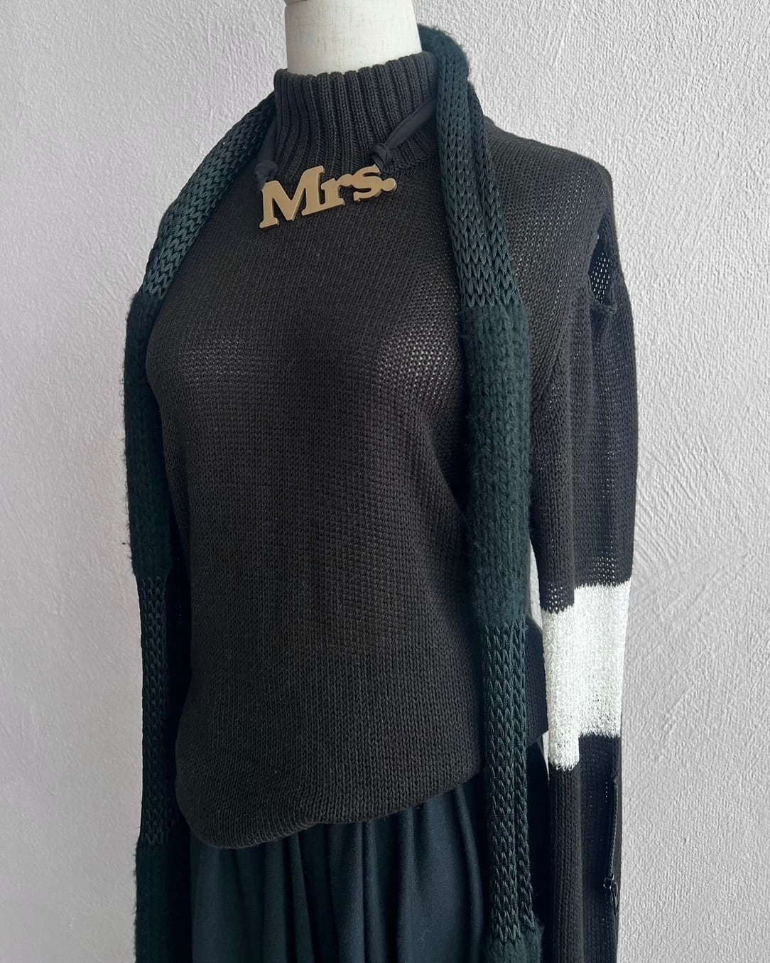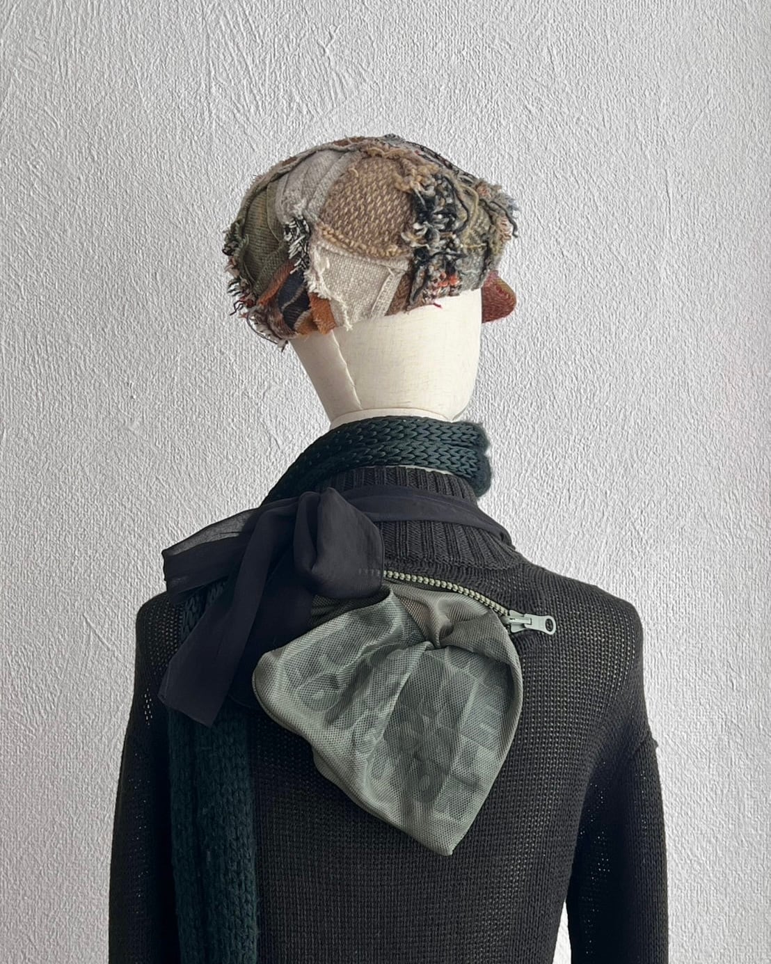 カットアウトって言うと後から切り裂いたみたいな印象が付くかもしれないけれど、正しく編み地設計の段階から部分的スラッシュをデザインされたディテール。