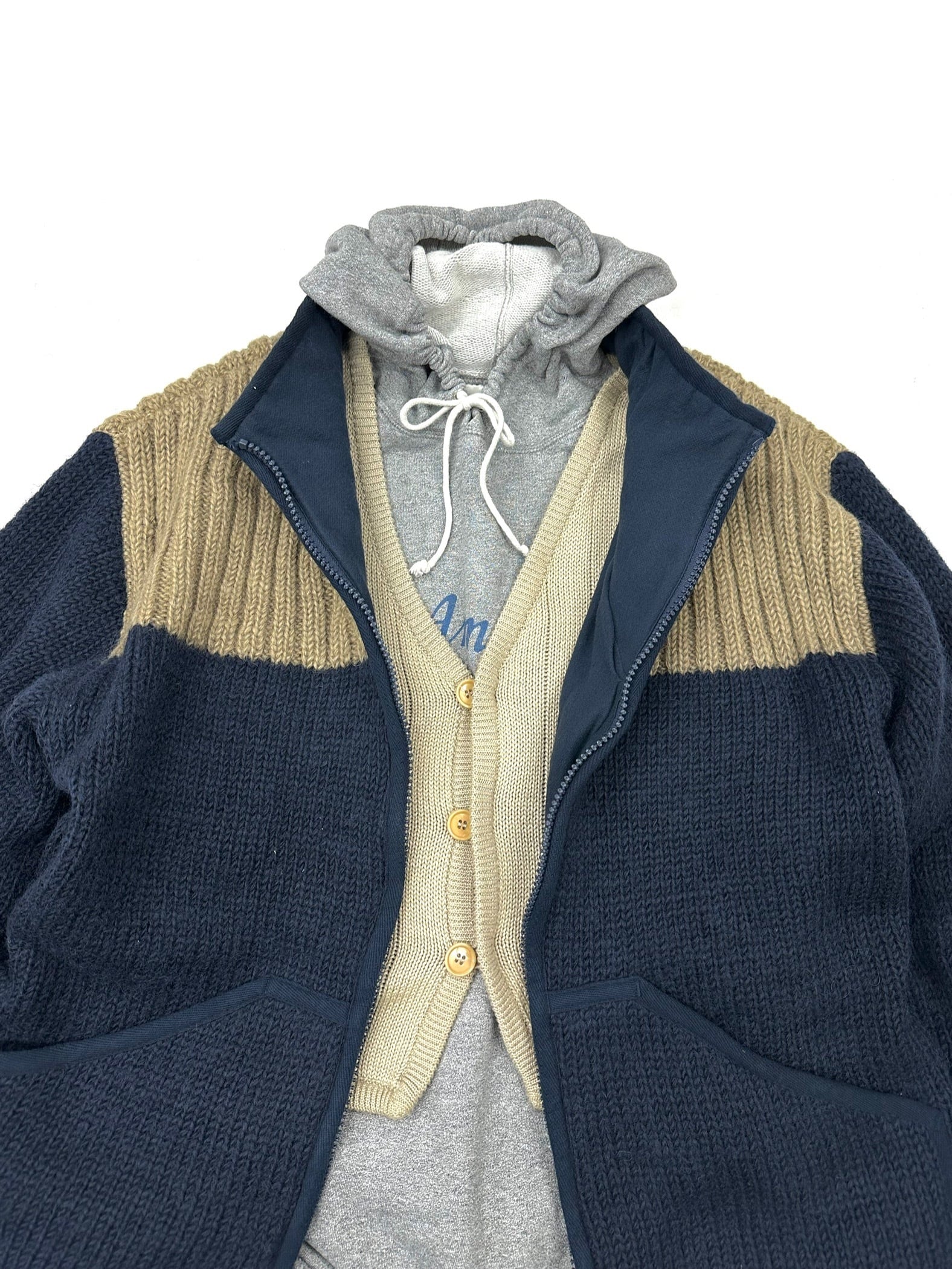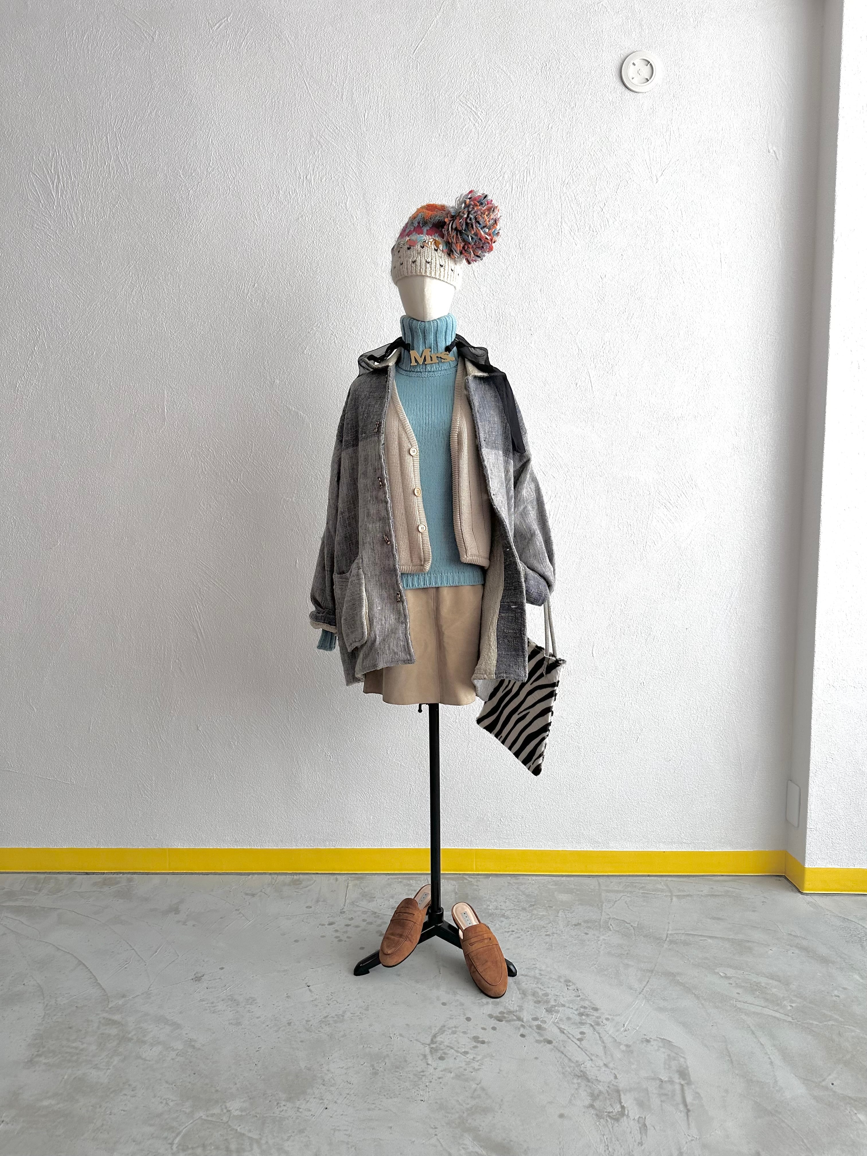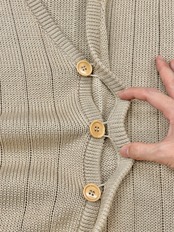 その上、編み地の目減らしでシャドーストライプを作り、フロントボタンシステムでも奇天烈なディテールアイデア。