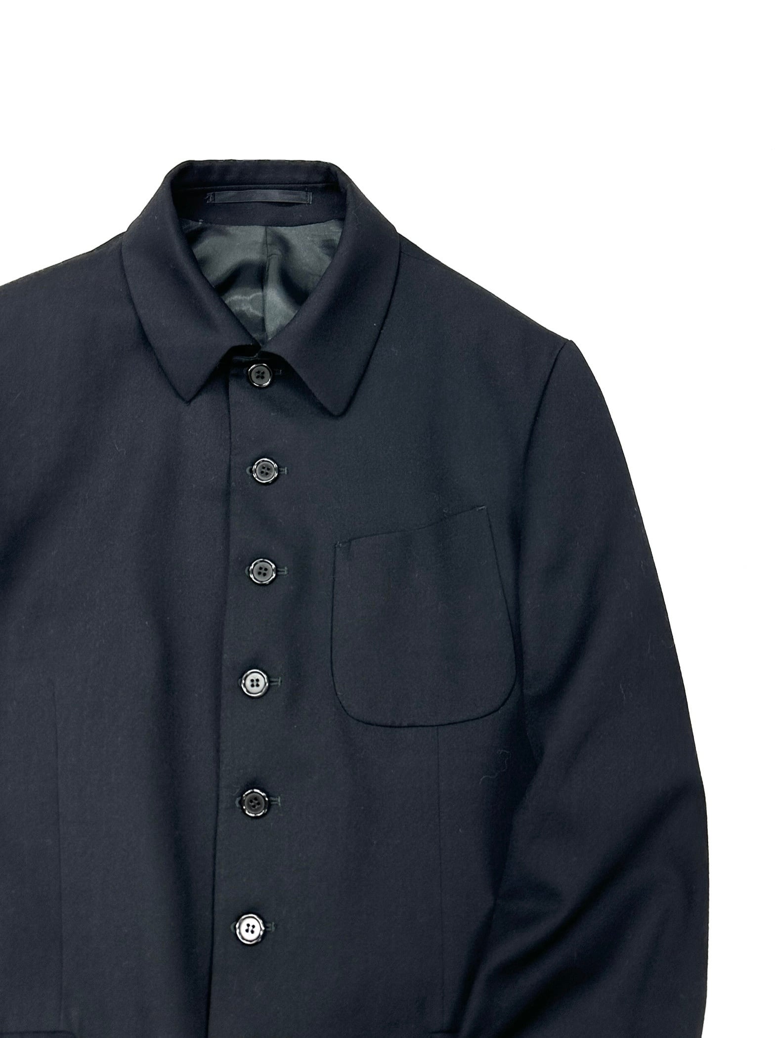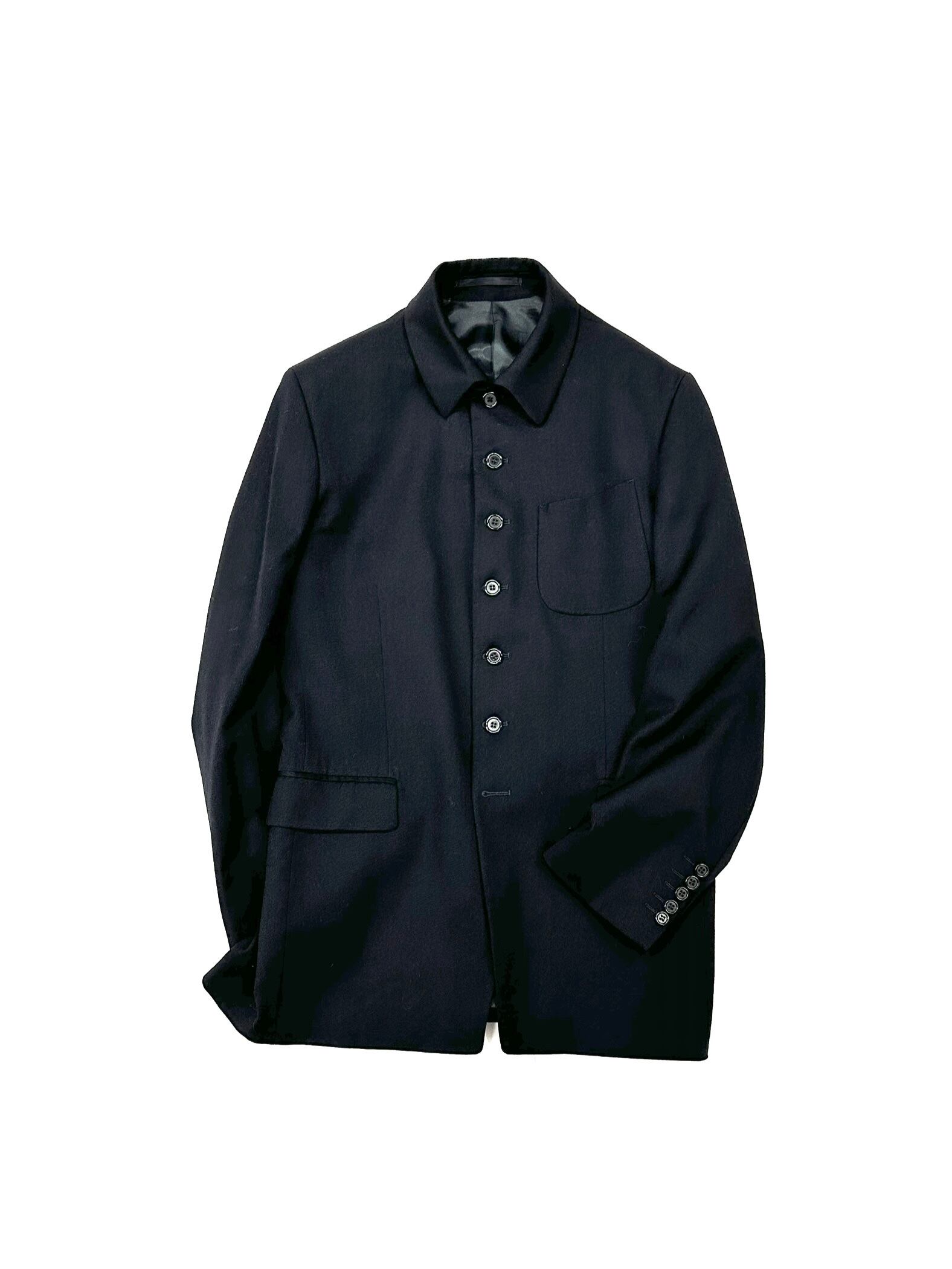 至って真っ当なテーラードジャケットの記号を踏みながら、根本的なラペルシステムを棄却。