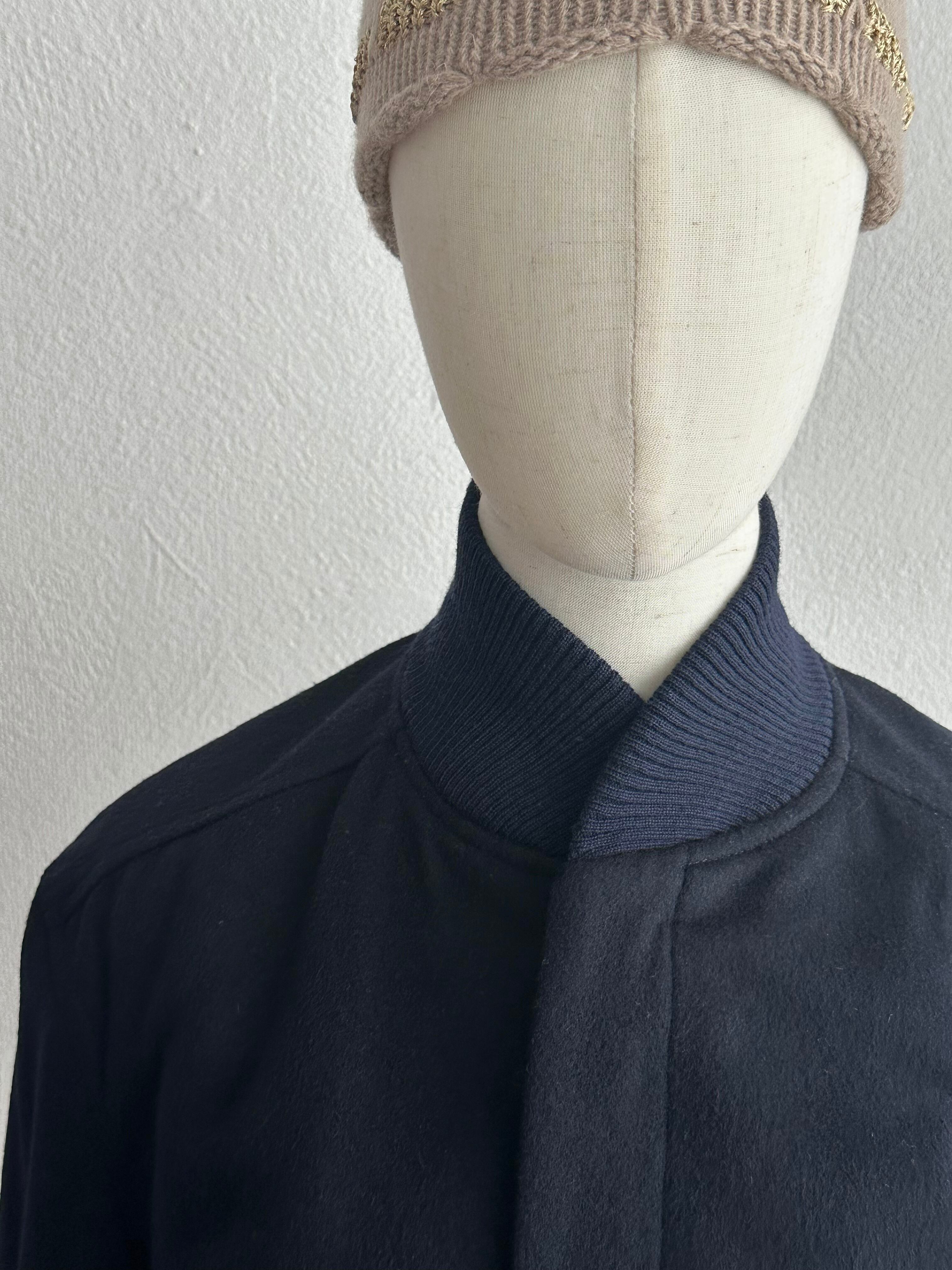 彩度を落とした静かなネイビーが、元ネタであるカジュアルウェアとの明確な態度の違いを示していますね。